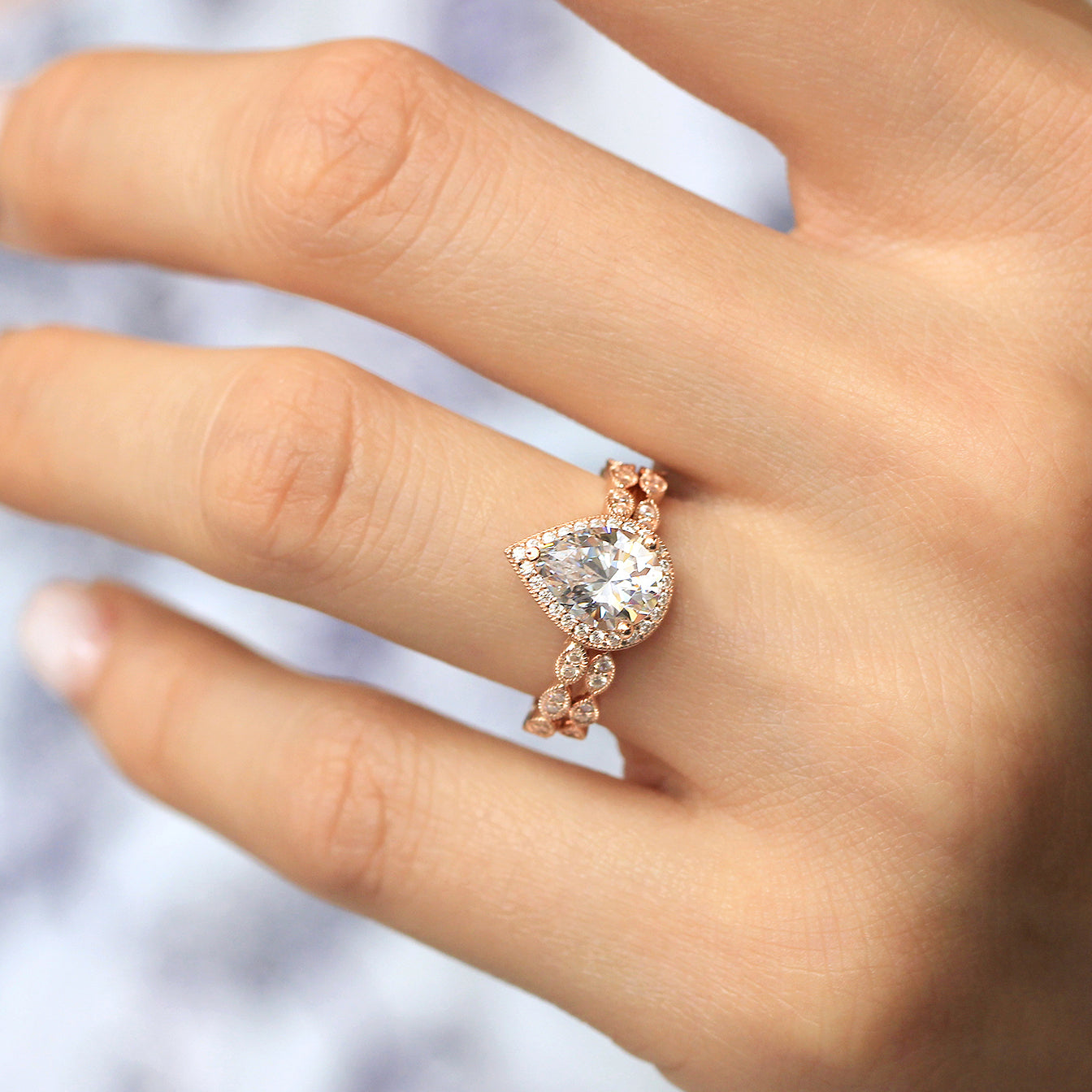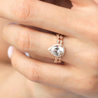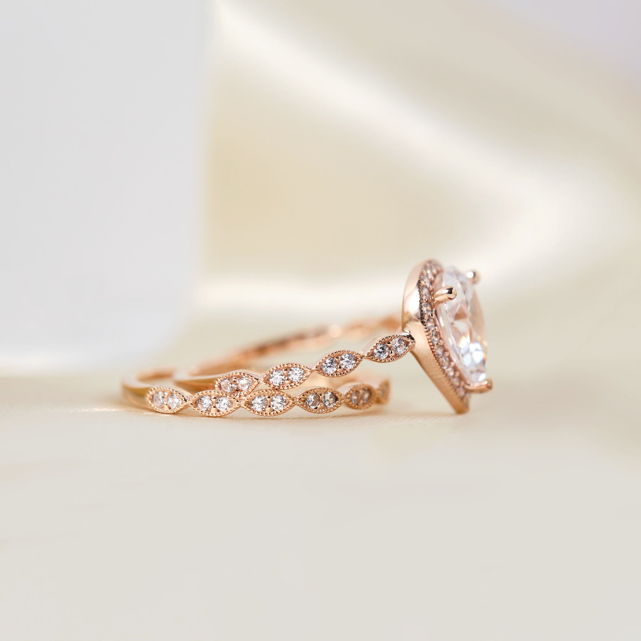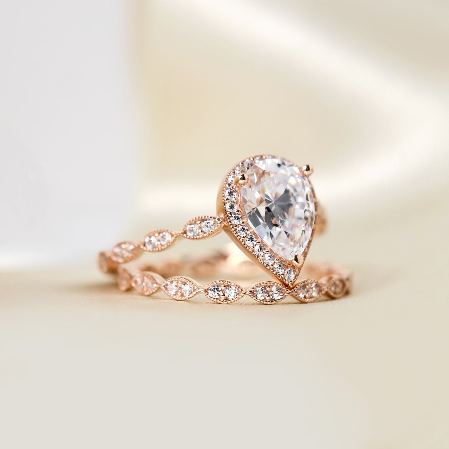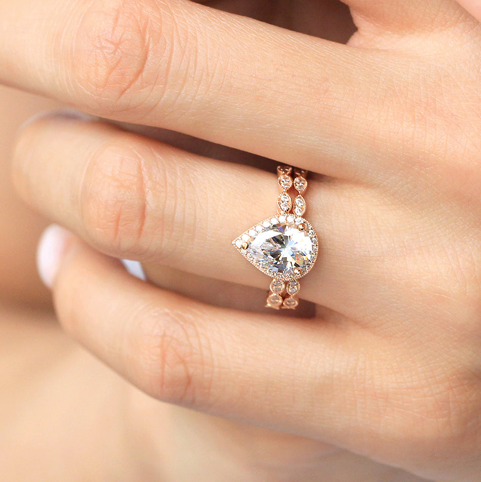 Vintage Art Deco • Pear Halo Ring Set • Rose Gold • BR6253-2