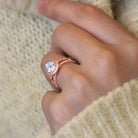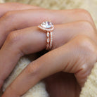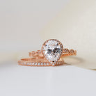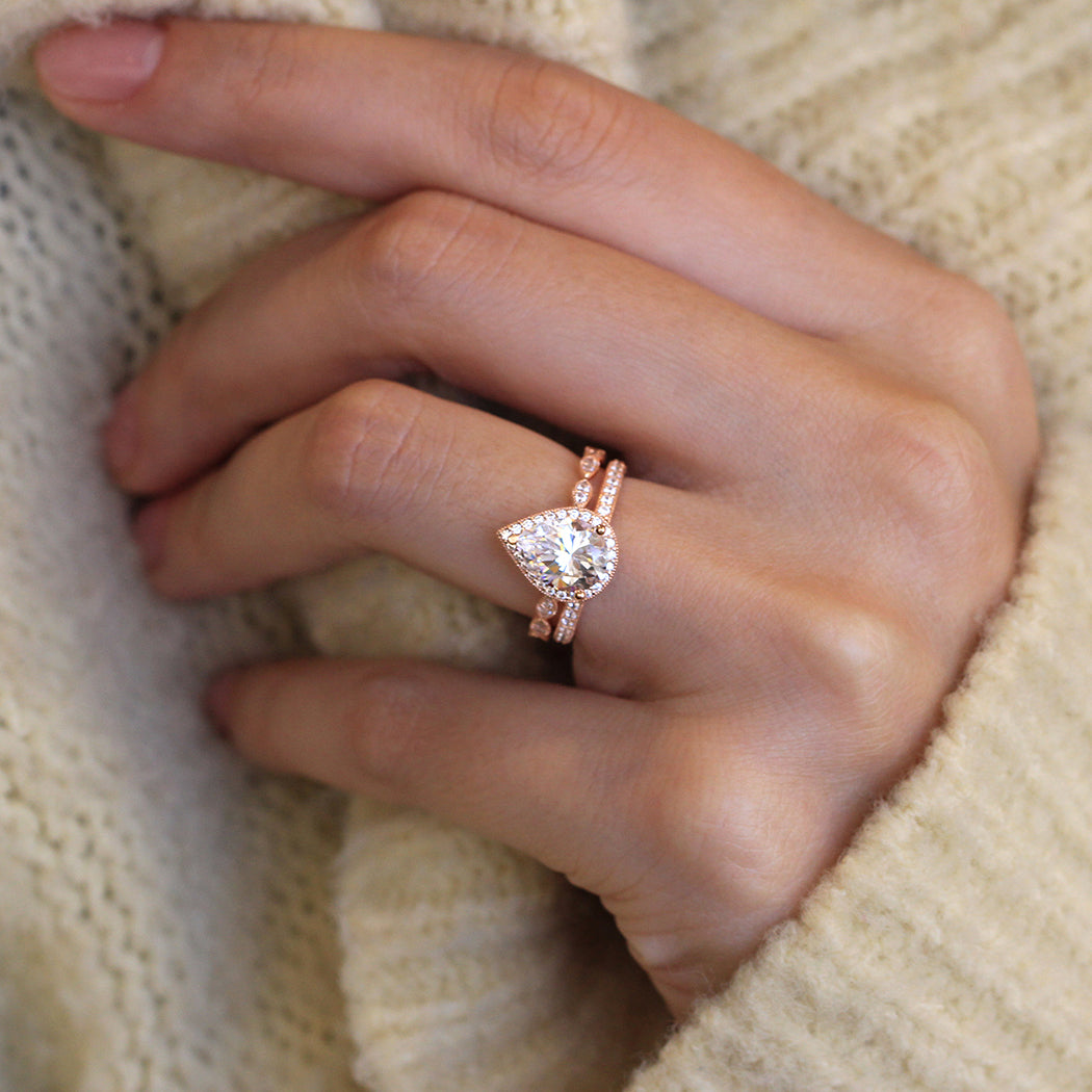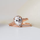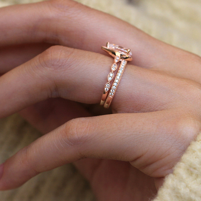 Vintage Art Deco • Pear Halo Milgrain Ring Set • Rose Gold • BR6253-2M