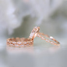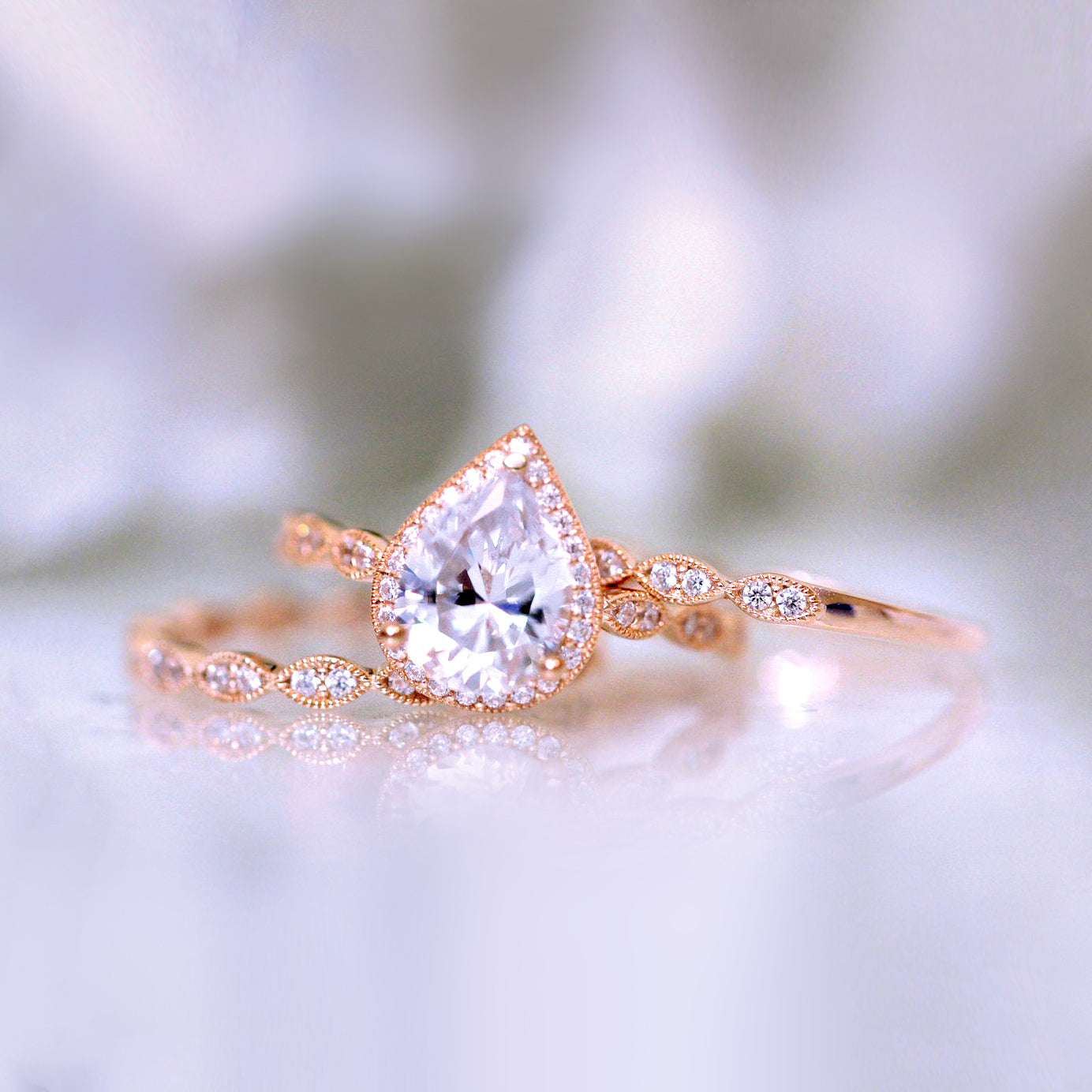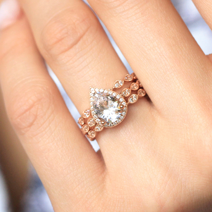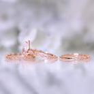 Vintage Art Deco • Pear Halo Triple Ring Set • Rose Gold • BR6253-3