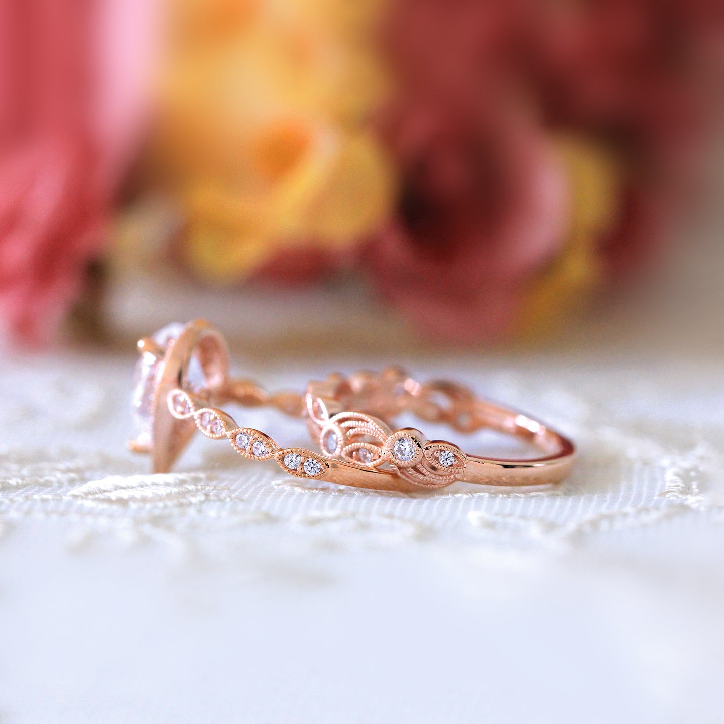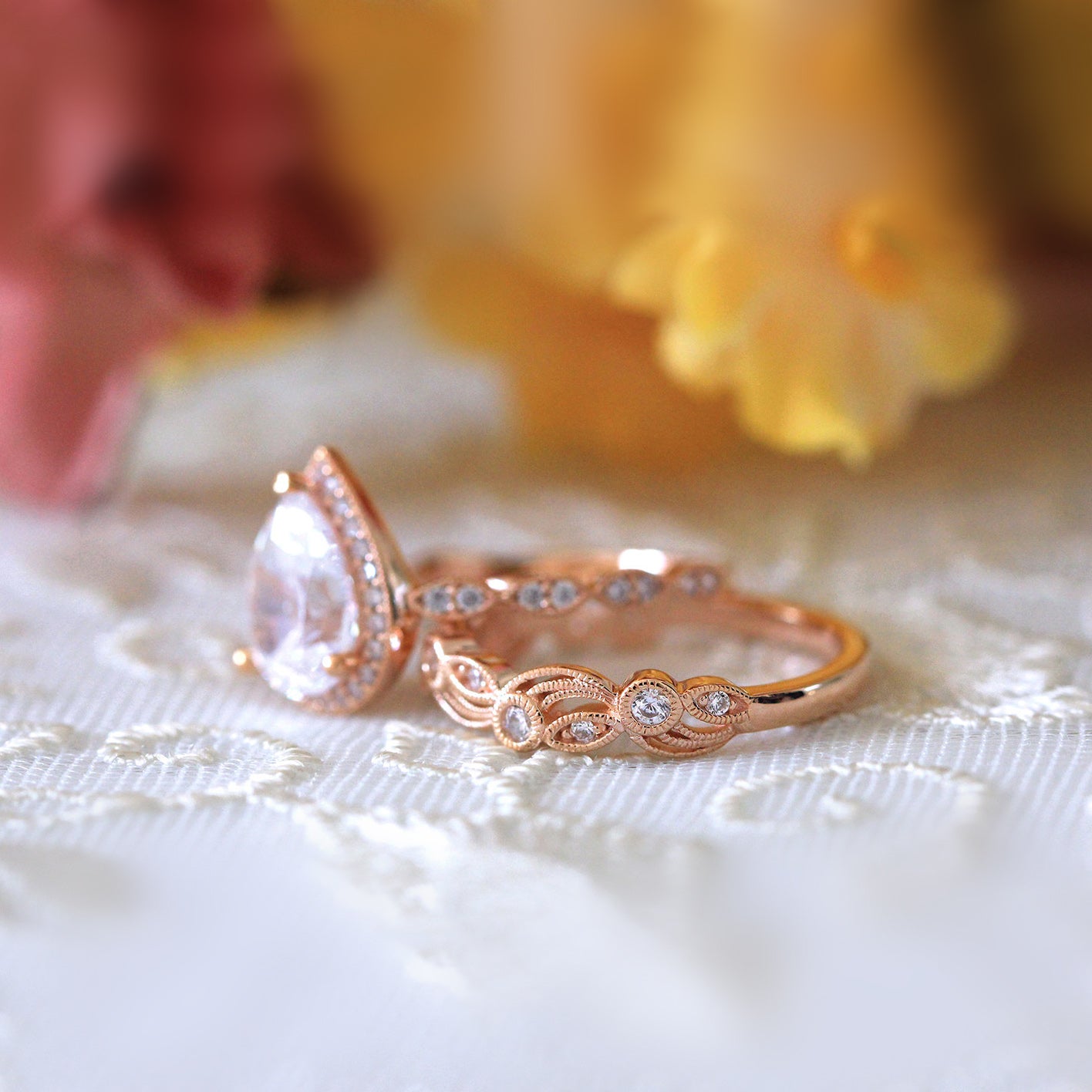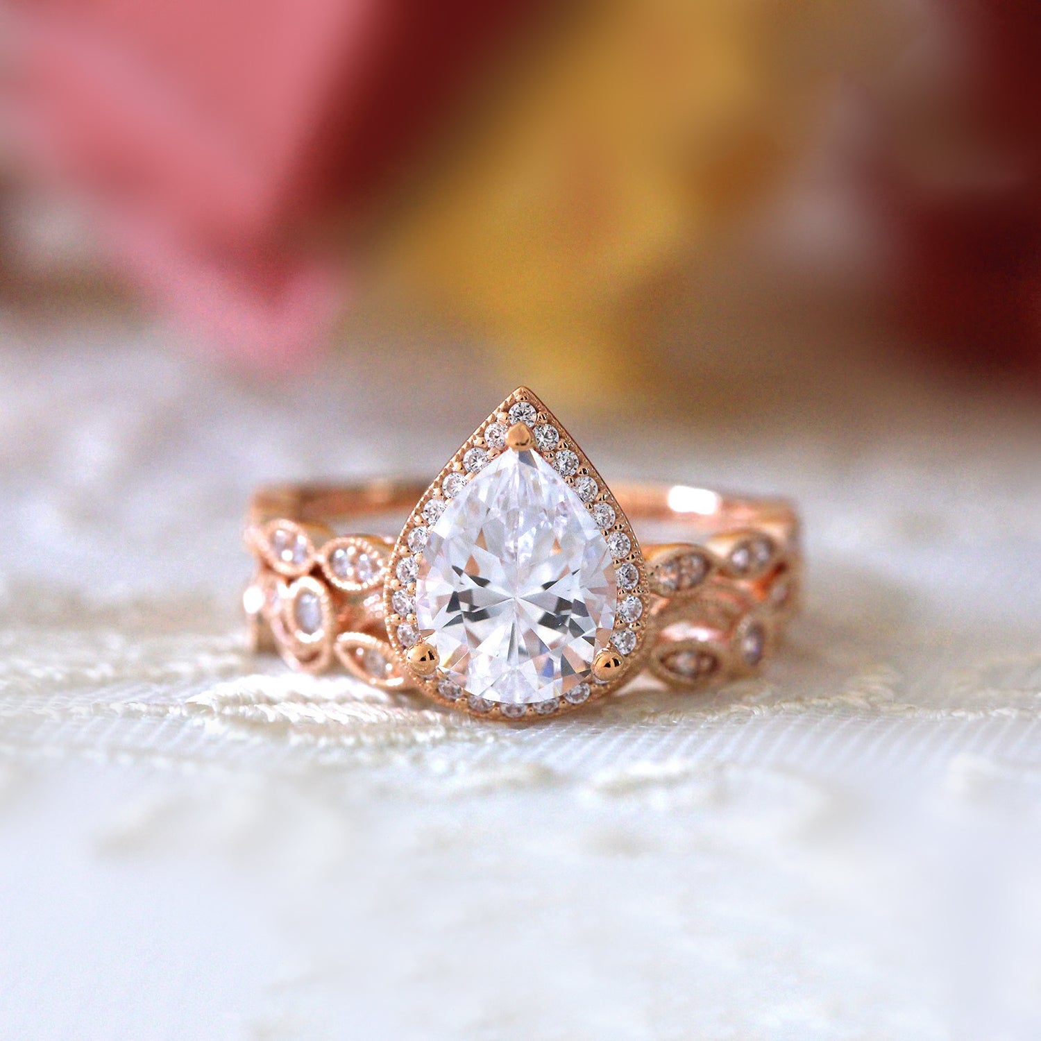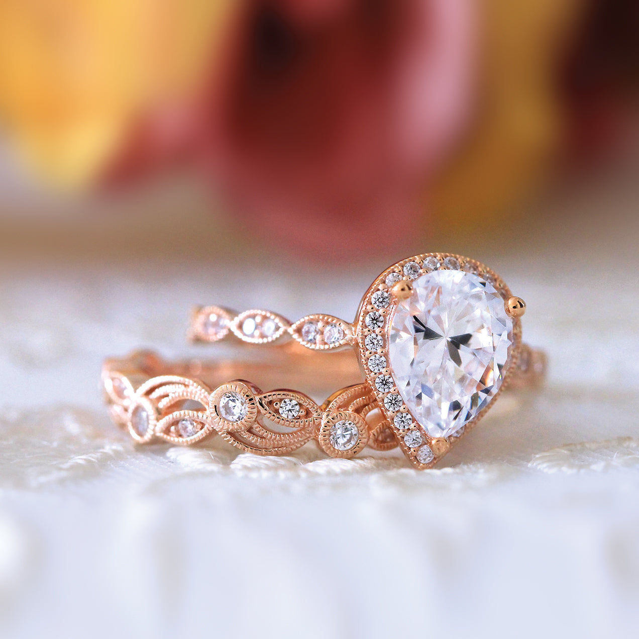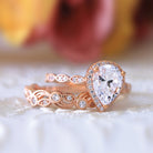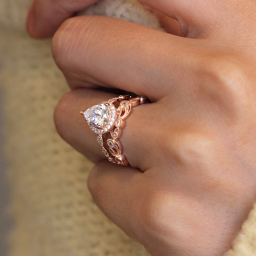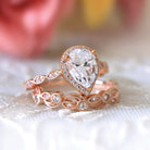 Pear Halo Vine Ring Set