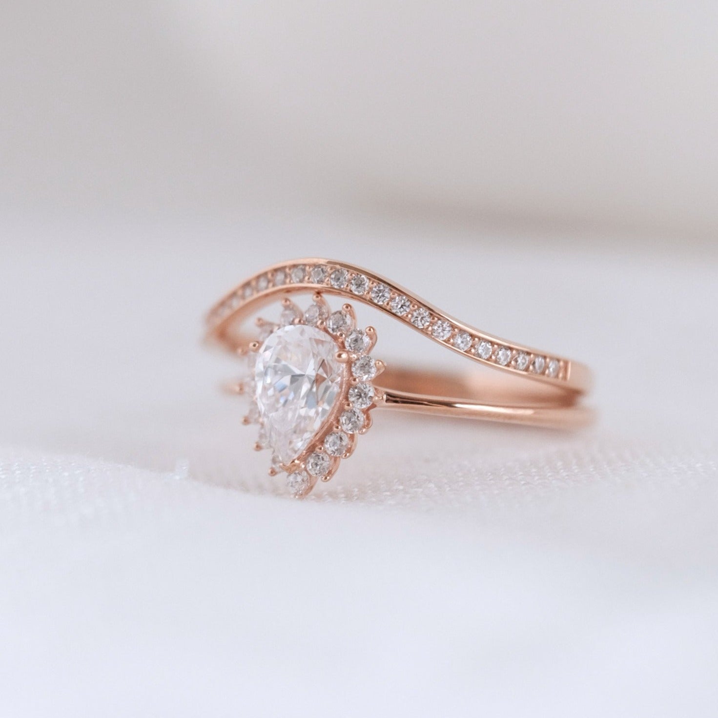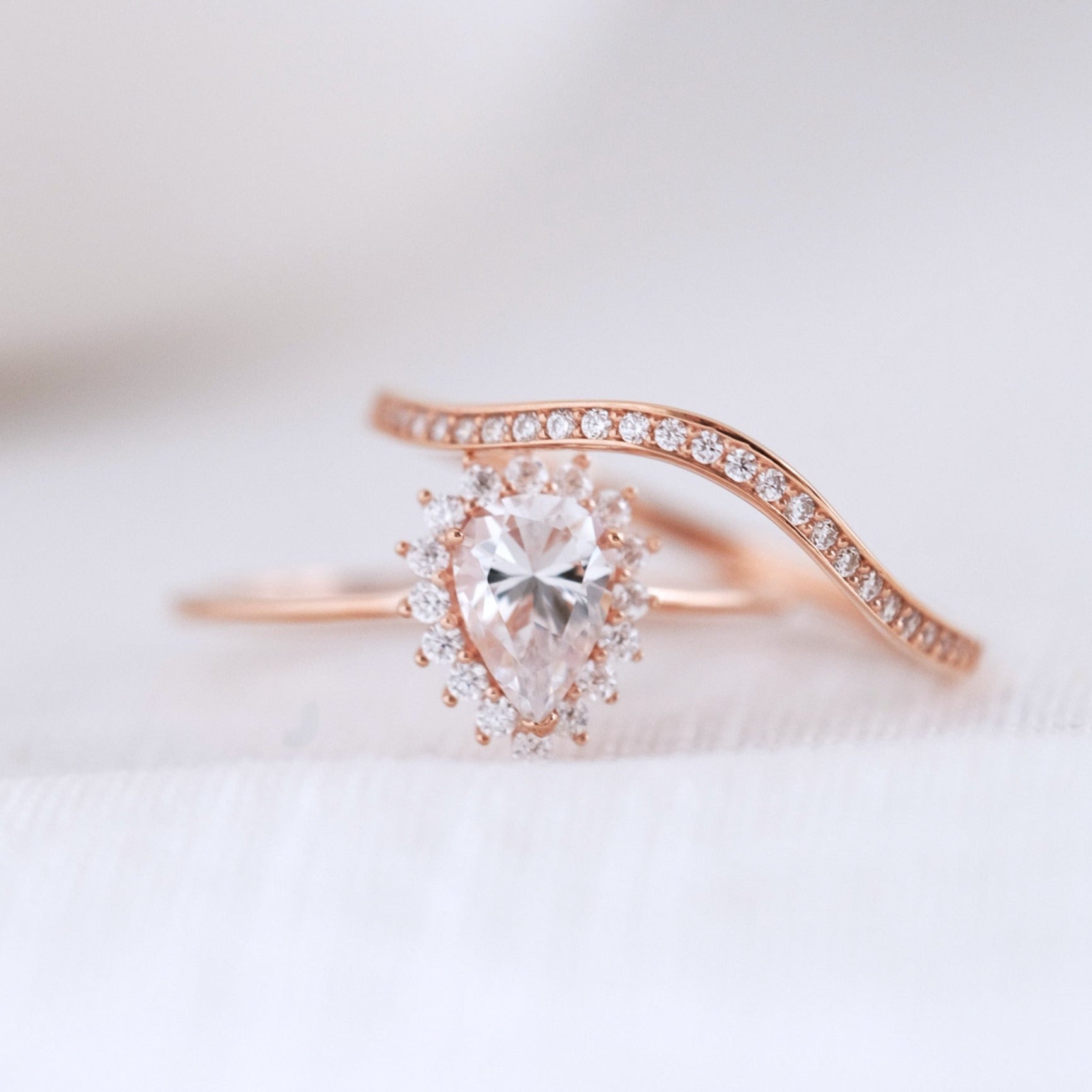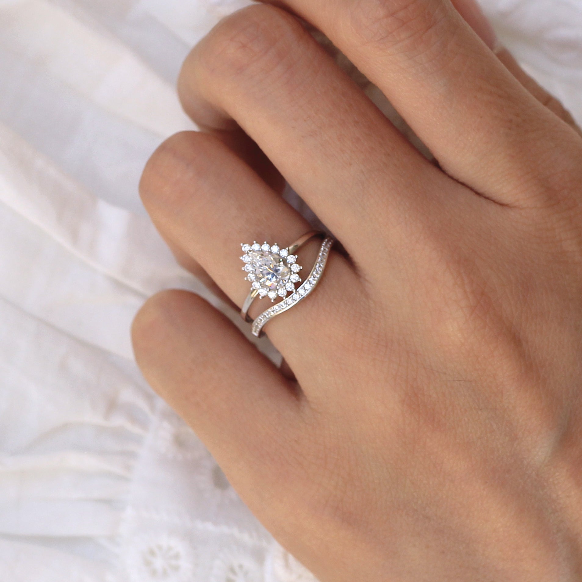 - Stone: Pear Cut, Marquise Cut (5x2.5mm), Round Pave Set (1.5mm to 1mm)