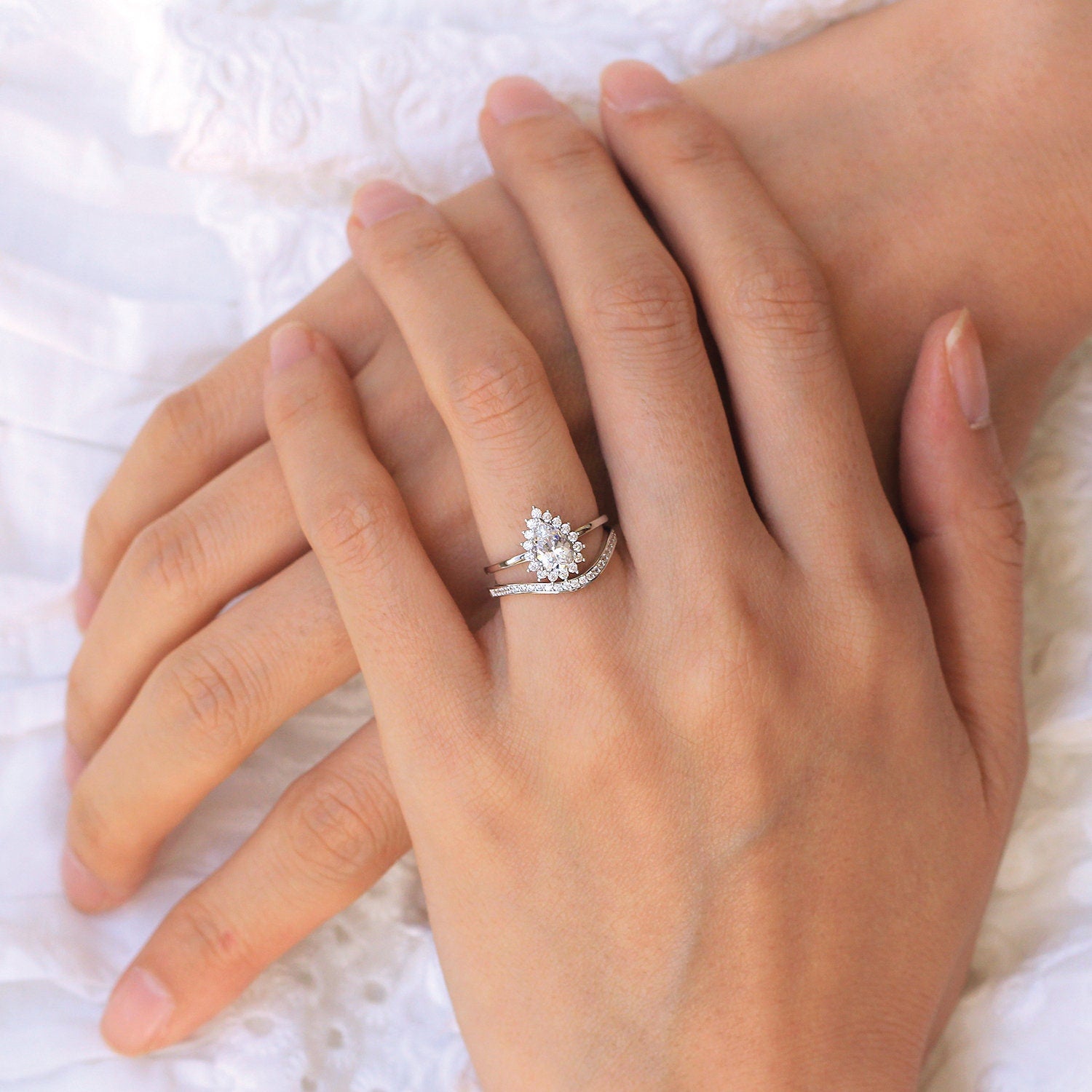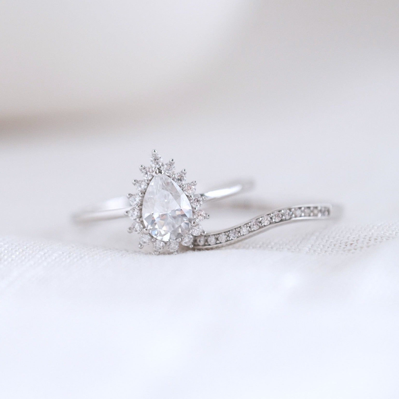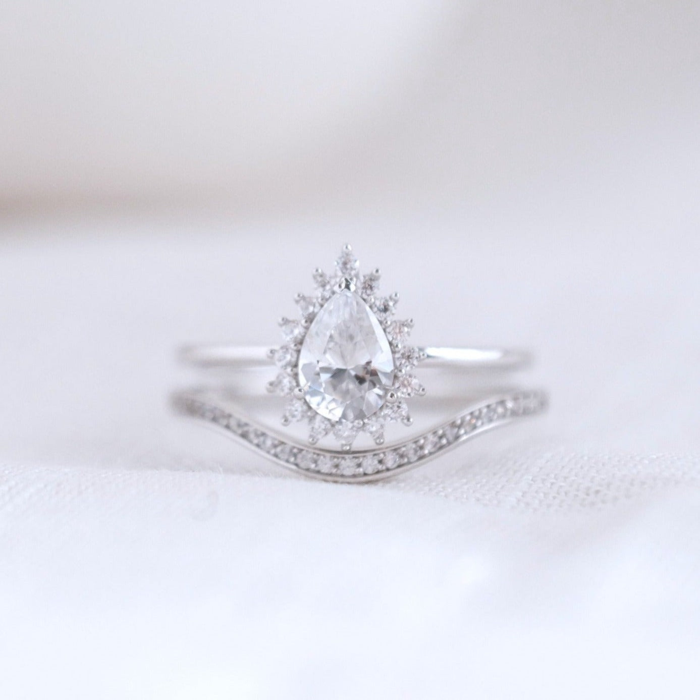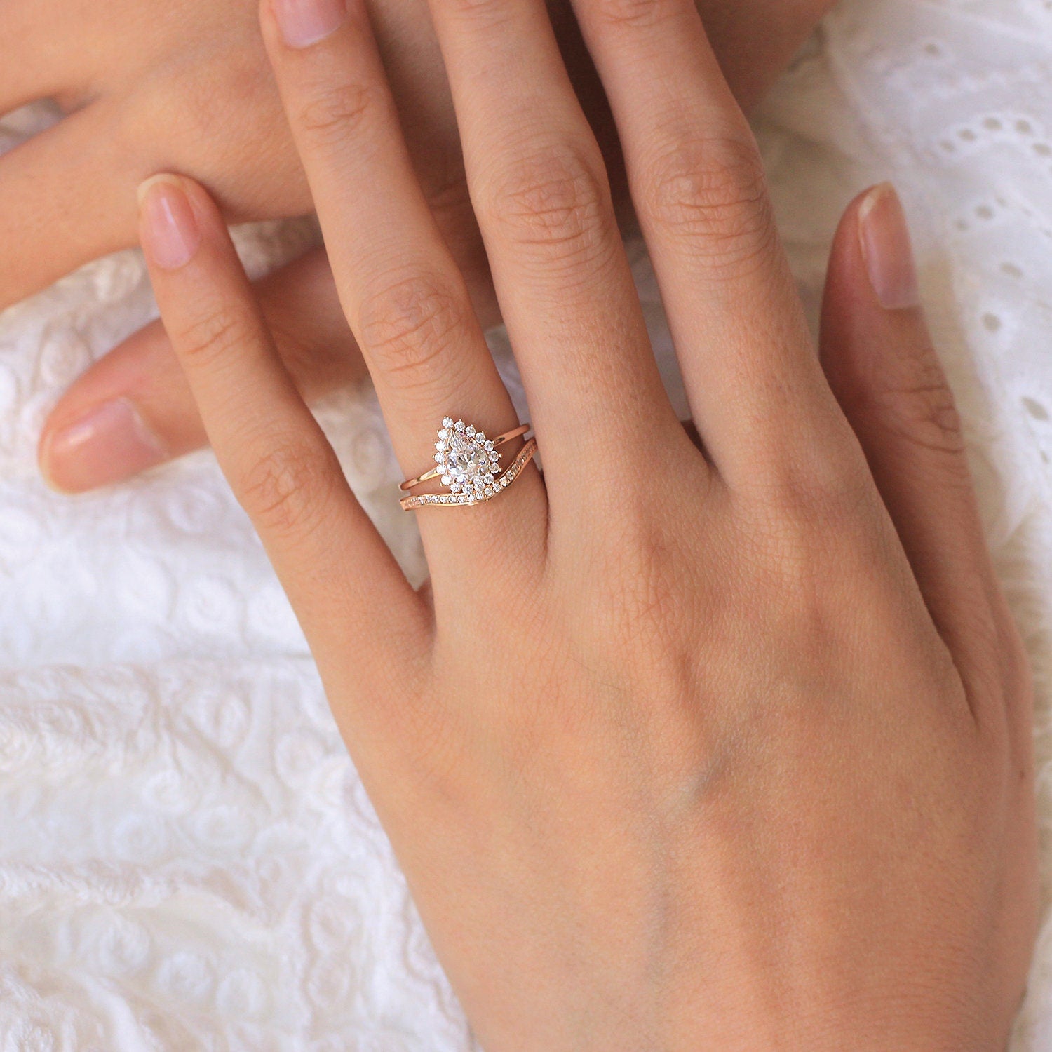 - Stone: Pear Cut, Marquise Cut (5x2.5mm), Round Pave Set (1.5mm to 1mm)