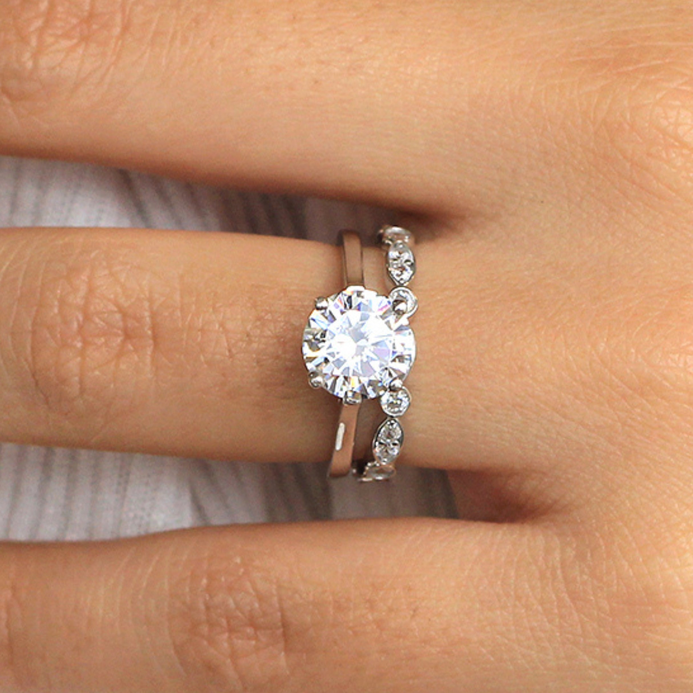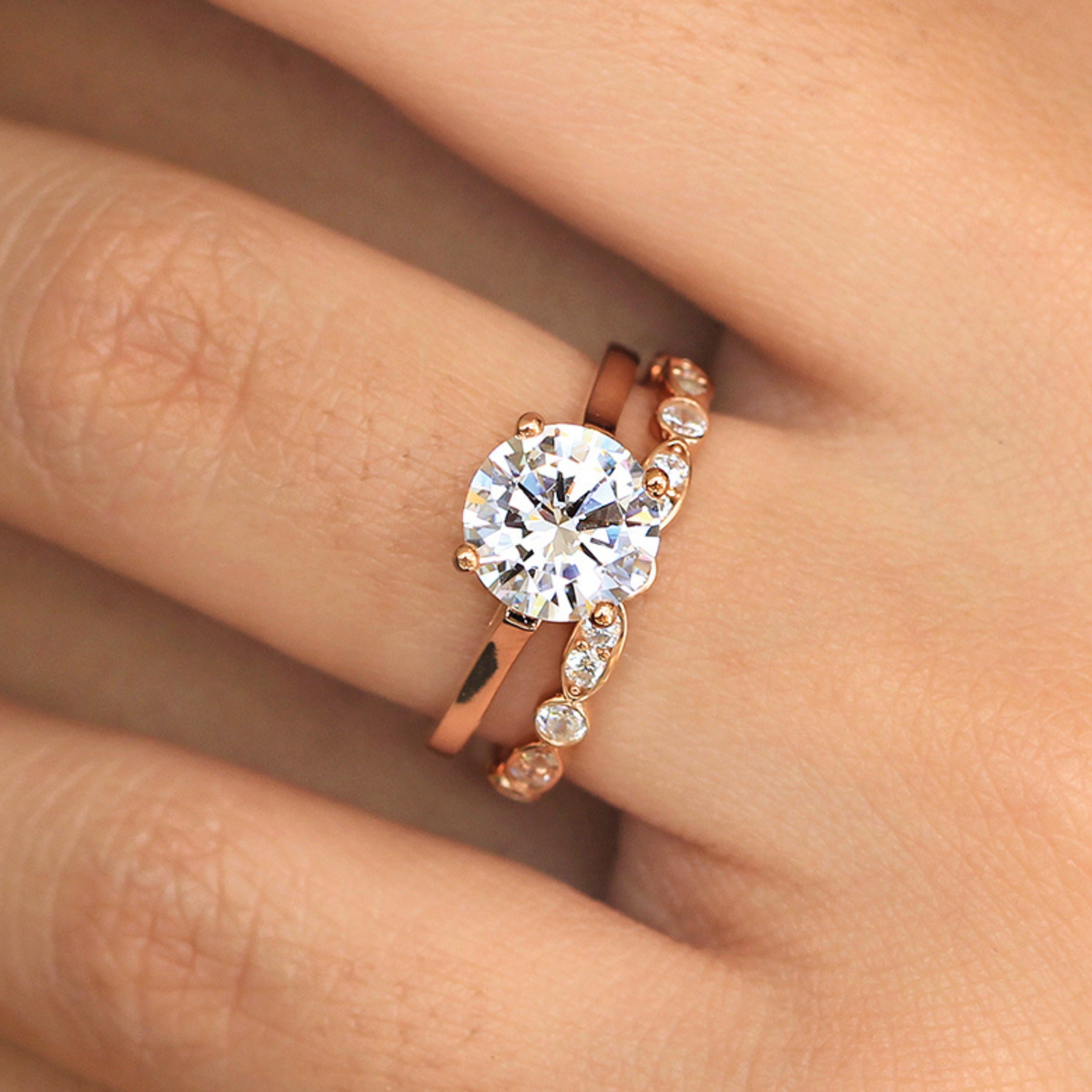 Our Double Ring Sets collection features a unique combination of a stunning engagement ring paired with a single, beautifully crafted band. This curated set is designed to provide a timeless and elegant look, making it one of the most popular choices among our customers.