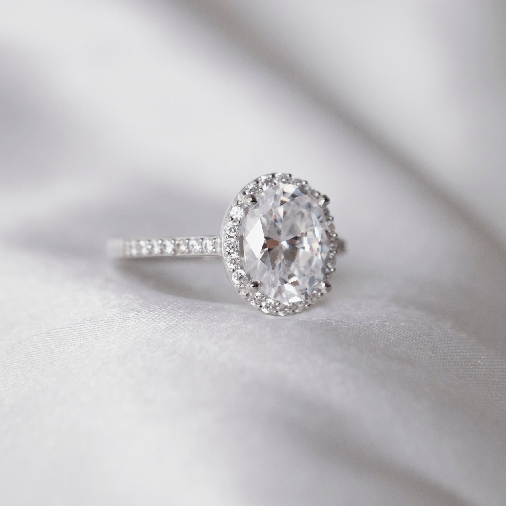 - Center Stone Weight & Dimension: 2.5 ct, 10x8mm