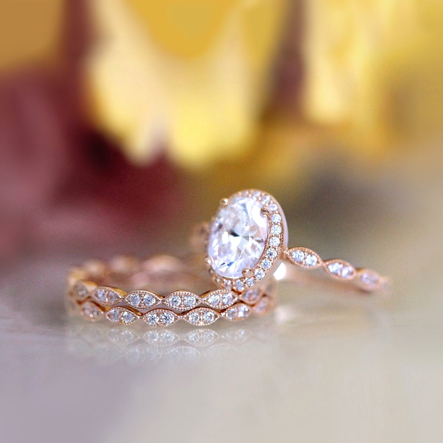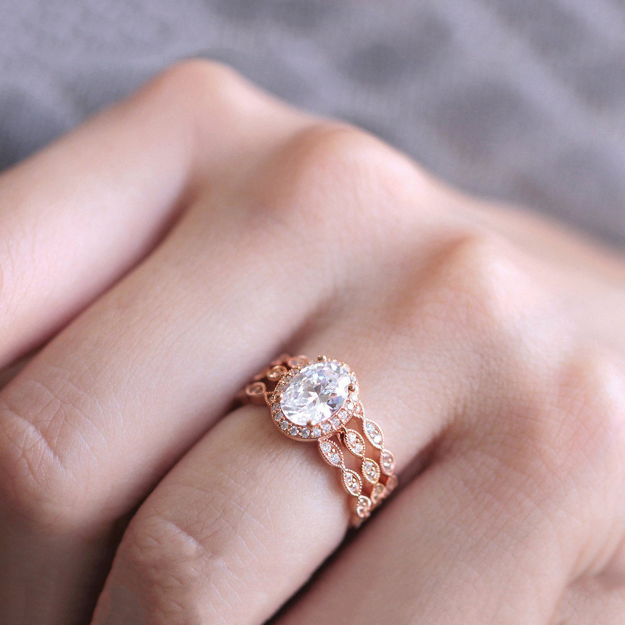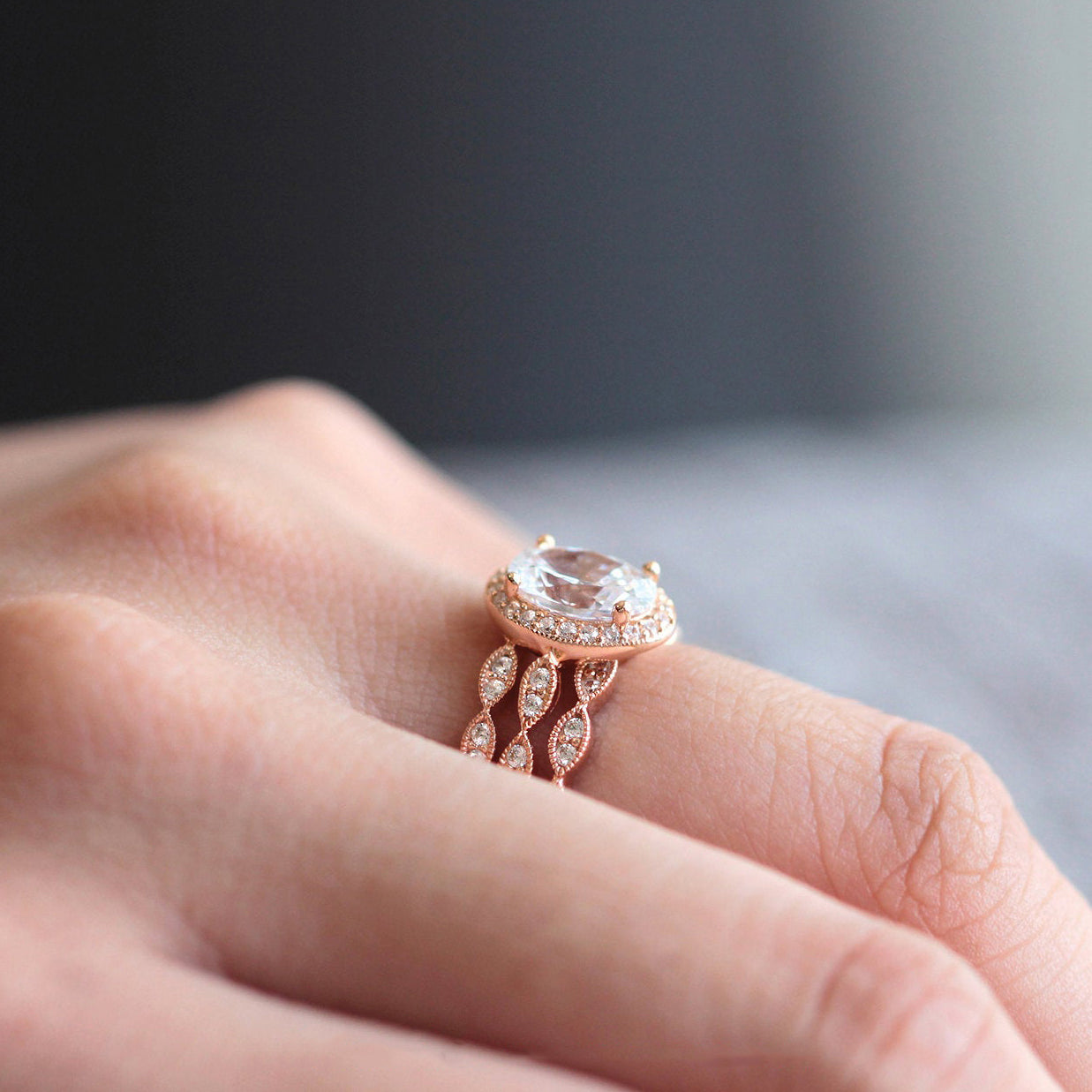 Vintage Art Deco • Oval Halo Triple Ring Set • Rose Gold • BR5953-3