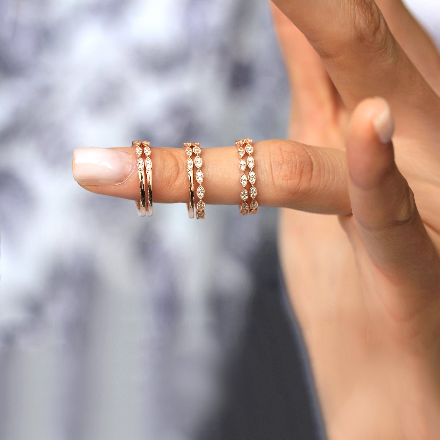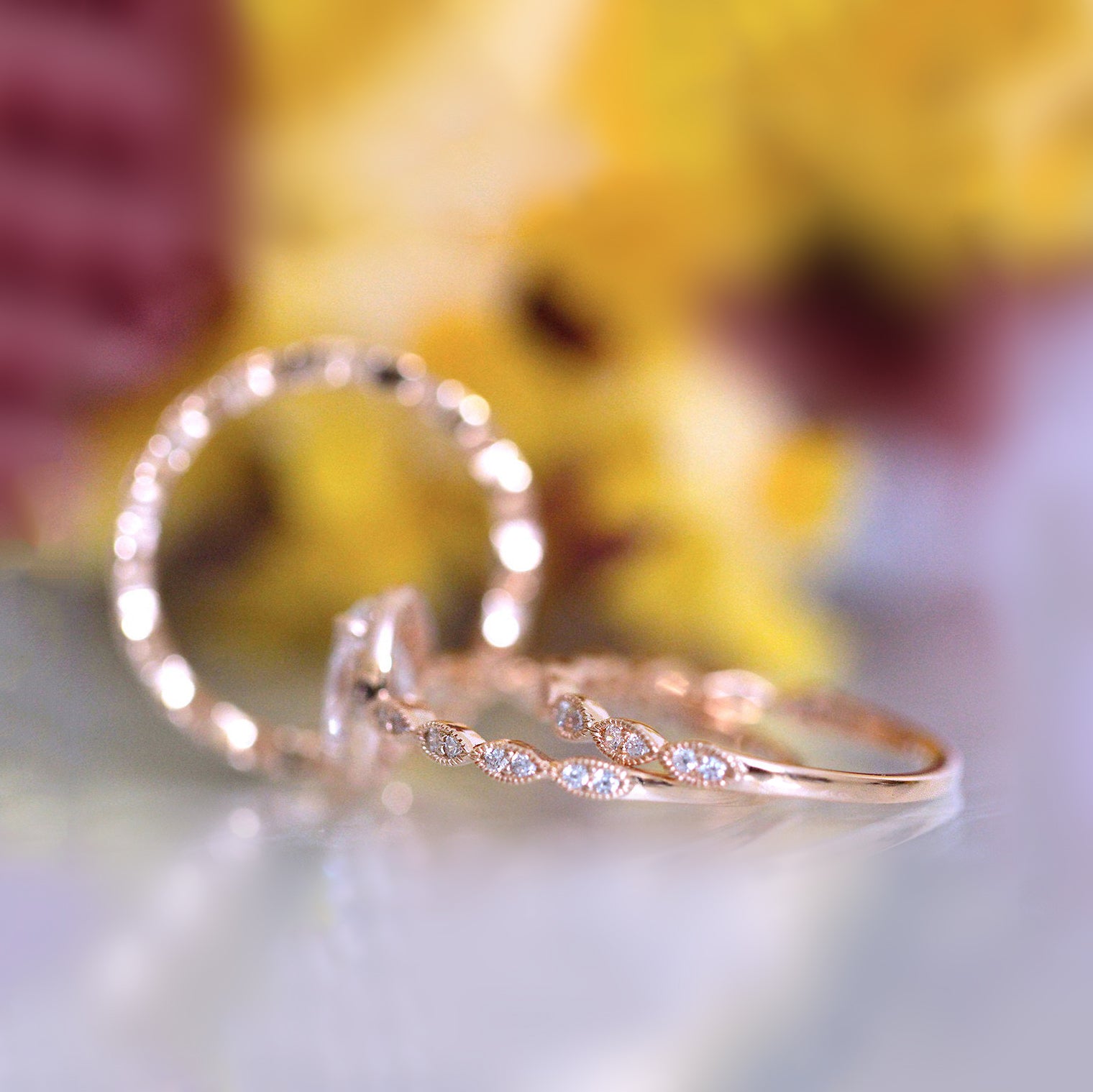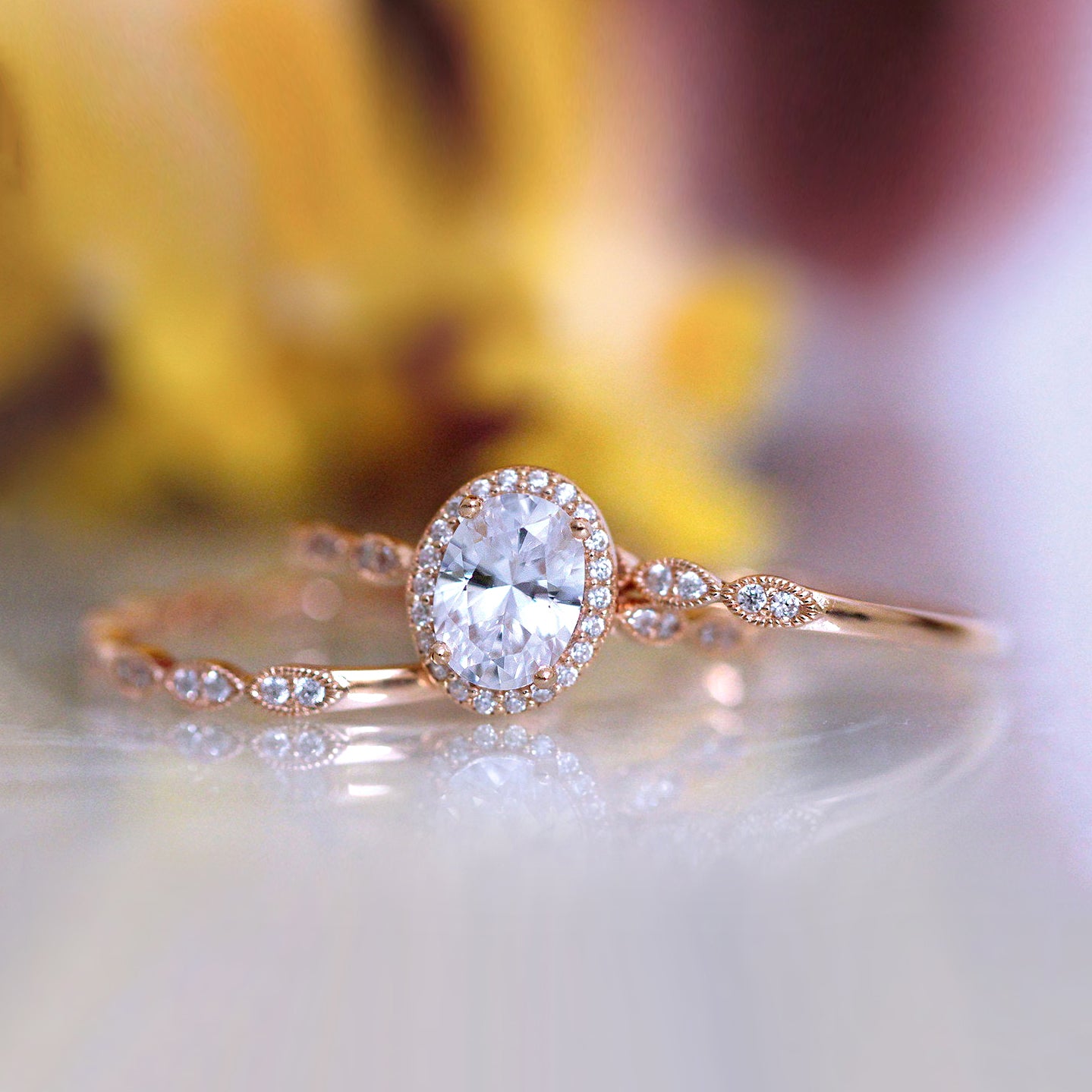 Vintage Art Deco • Oval Halo Triple Ring Set • Rose Gold • BR5953-3