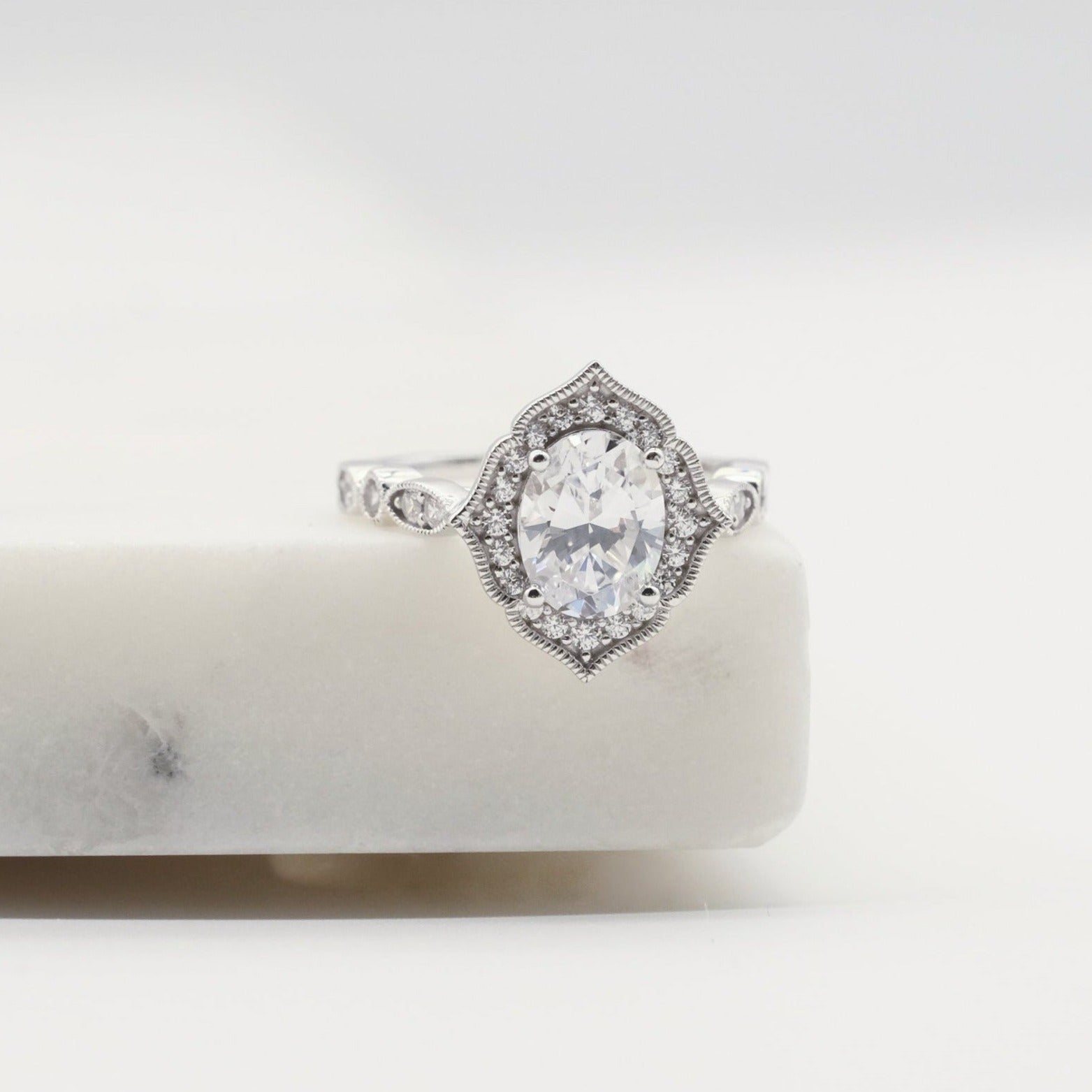 - Center Stone Weight & Dimension: 2 ct, 9x7mm