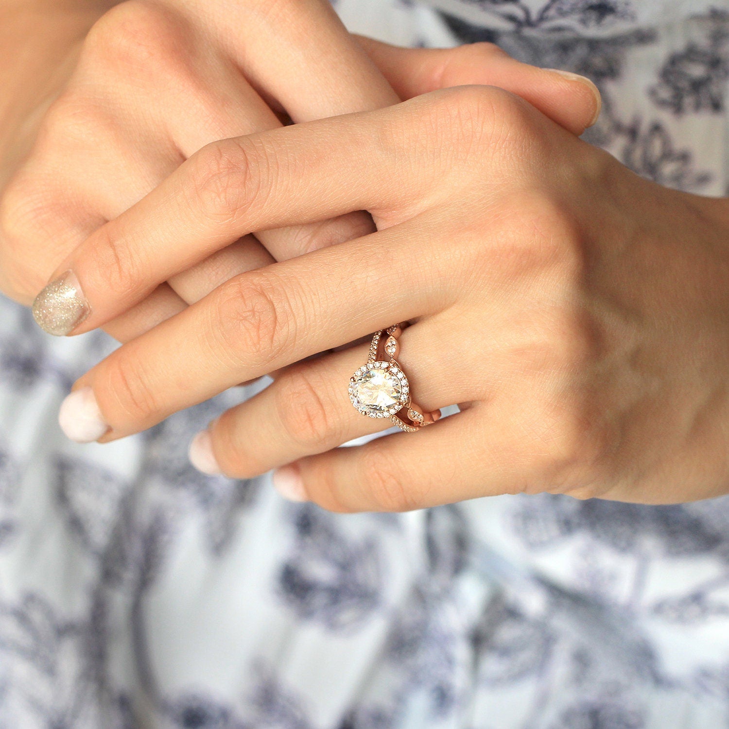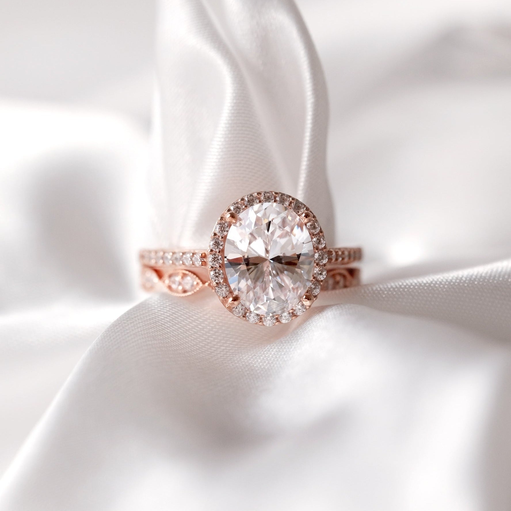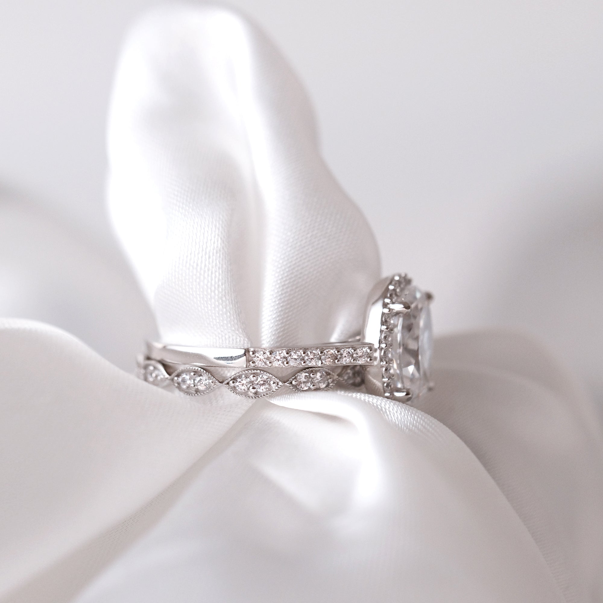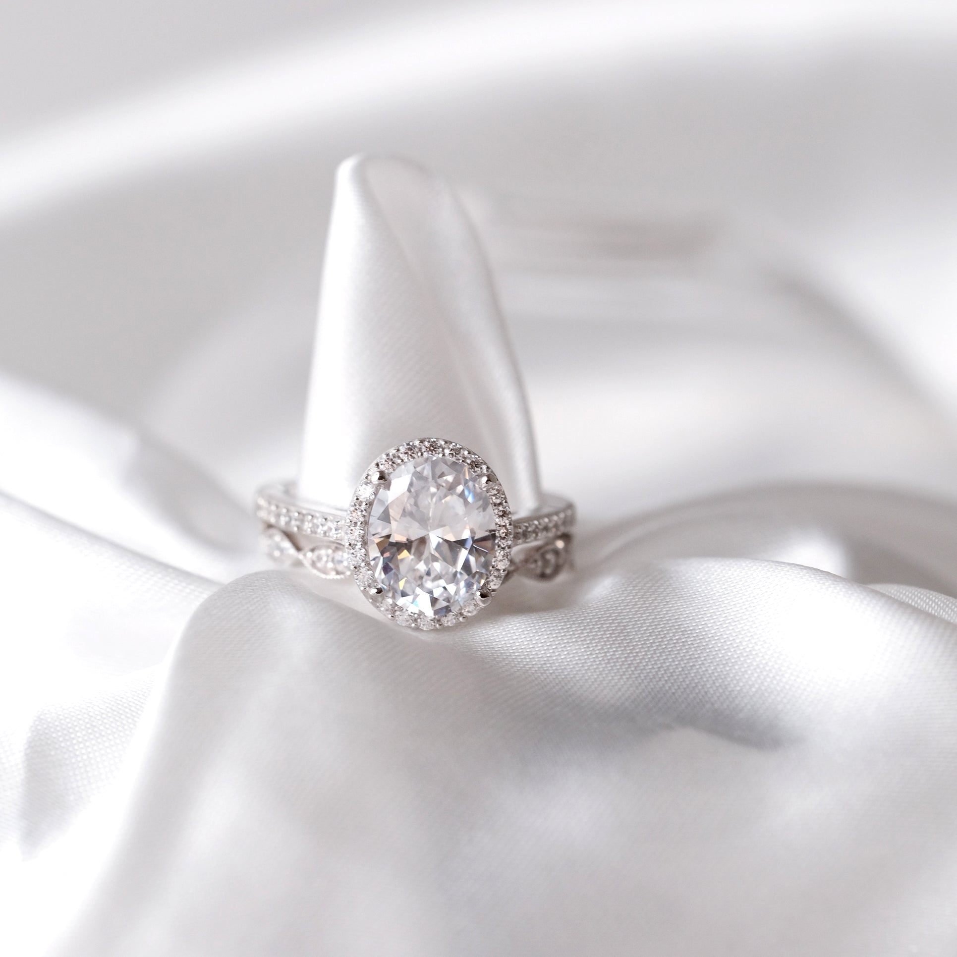 - Stone: Oval Cut, Round Pave Set (1.4mm and 1.25mm)
