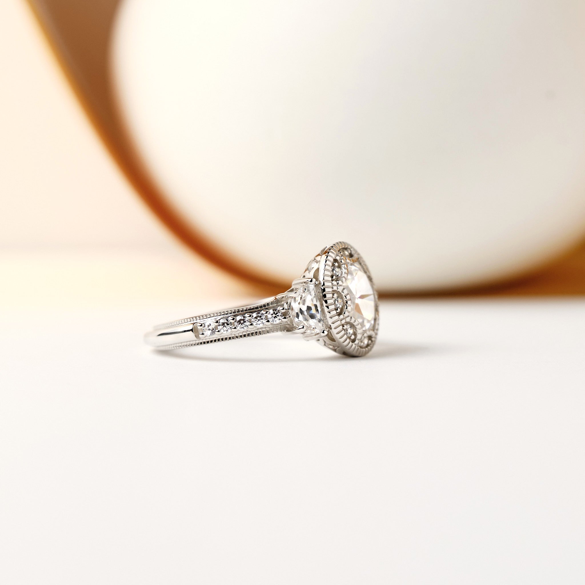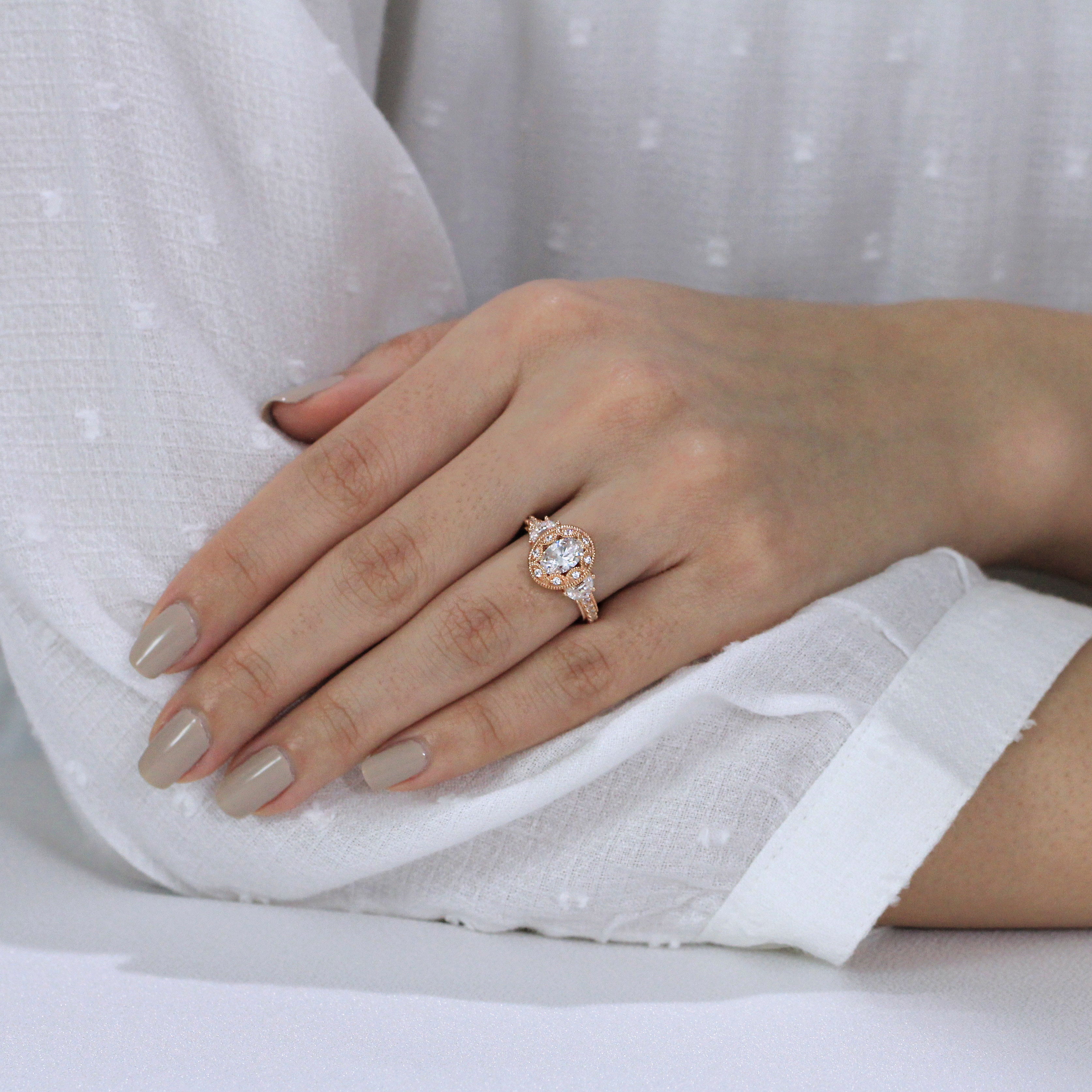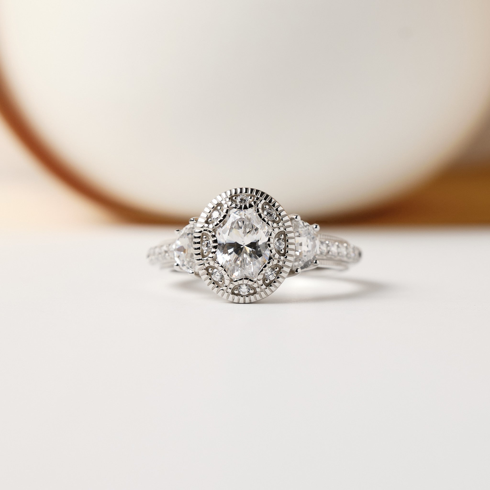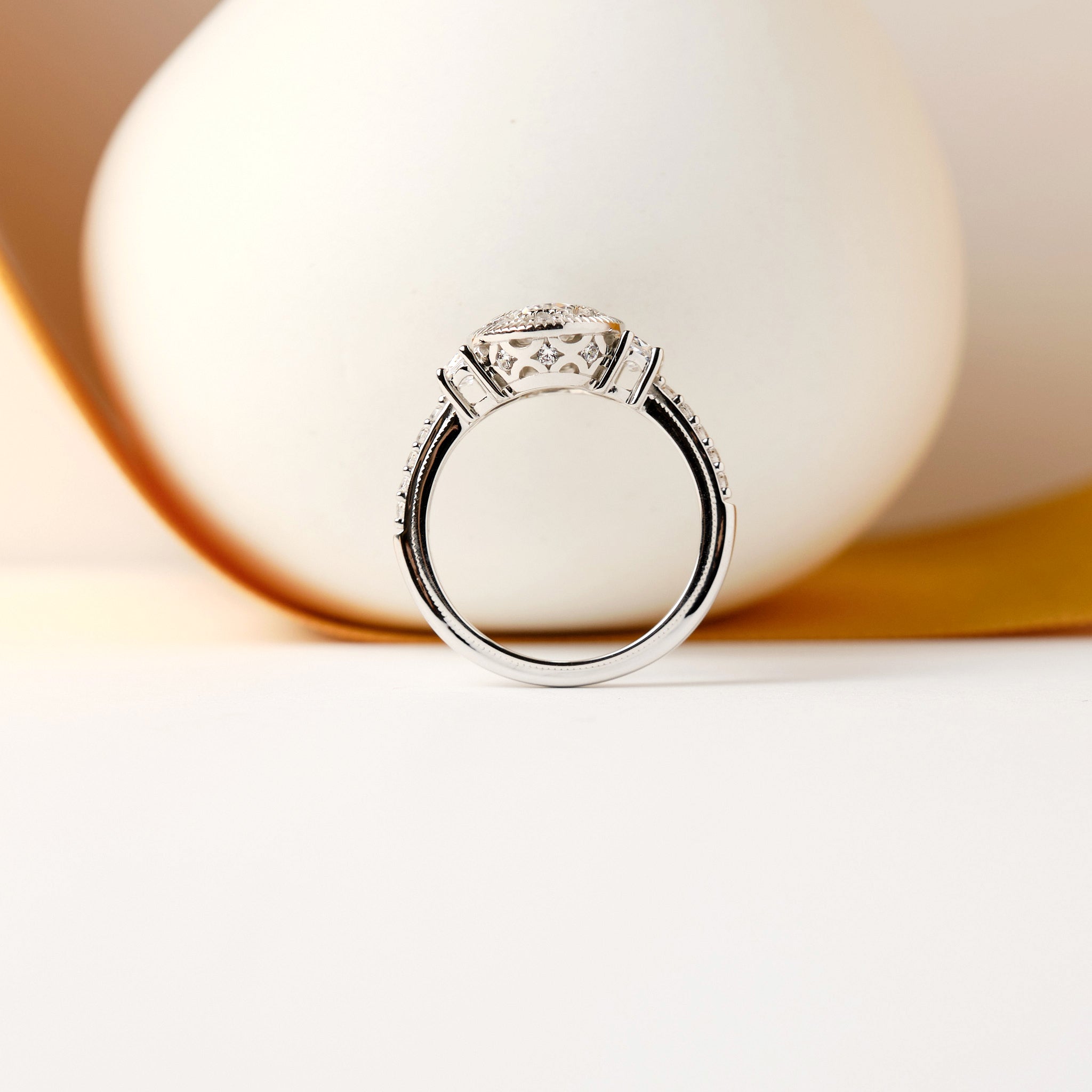 - Center Stone Weight & Dimension: 0.88 ct (7.5x5mm)
