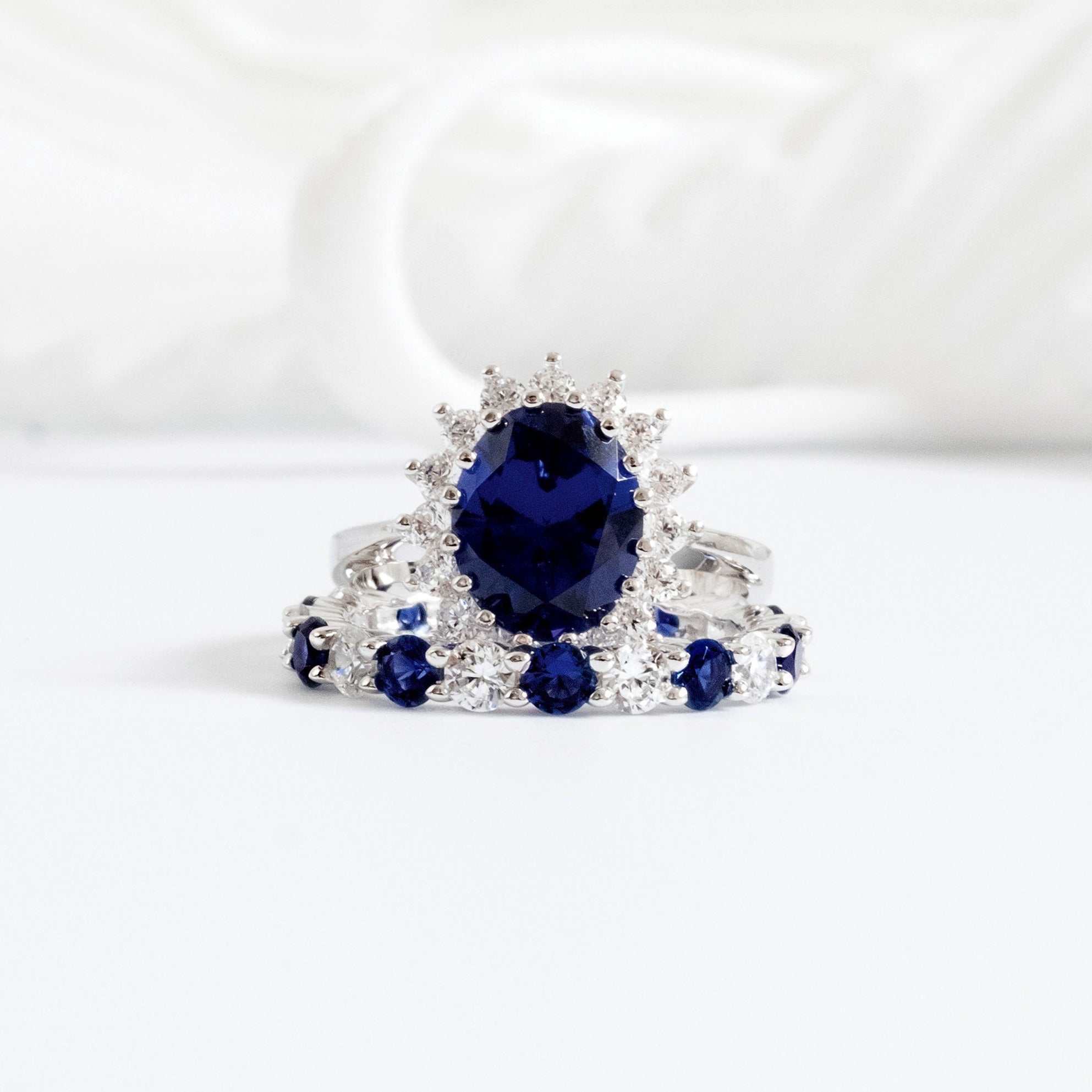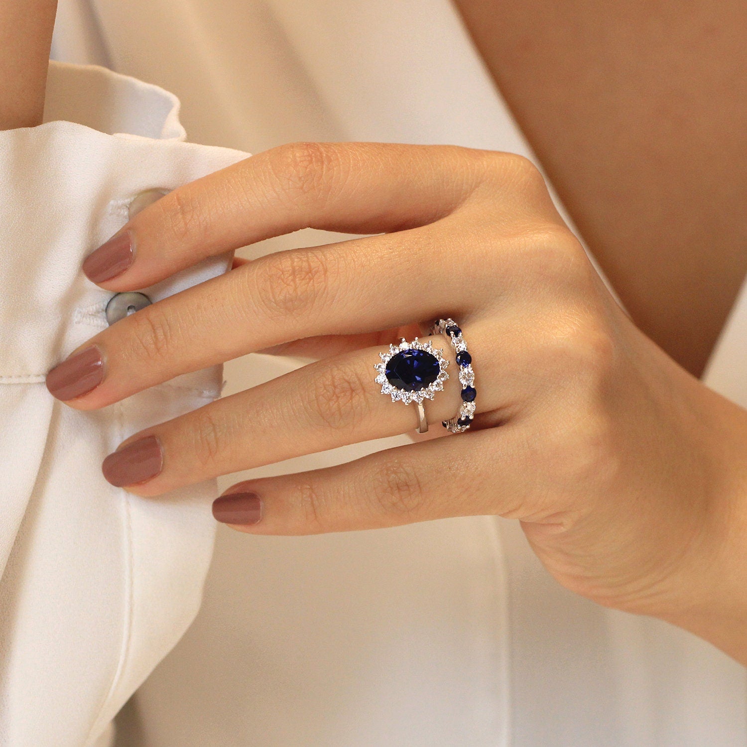 - Stone: Sapphire Oval Cut, Sapphire Round Cut (3mm), Round Cut (2mm)