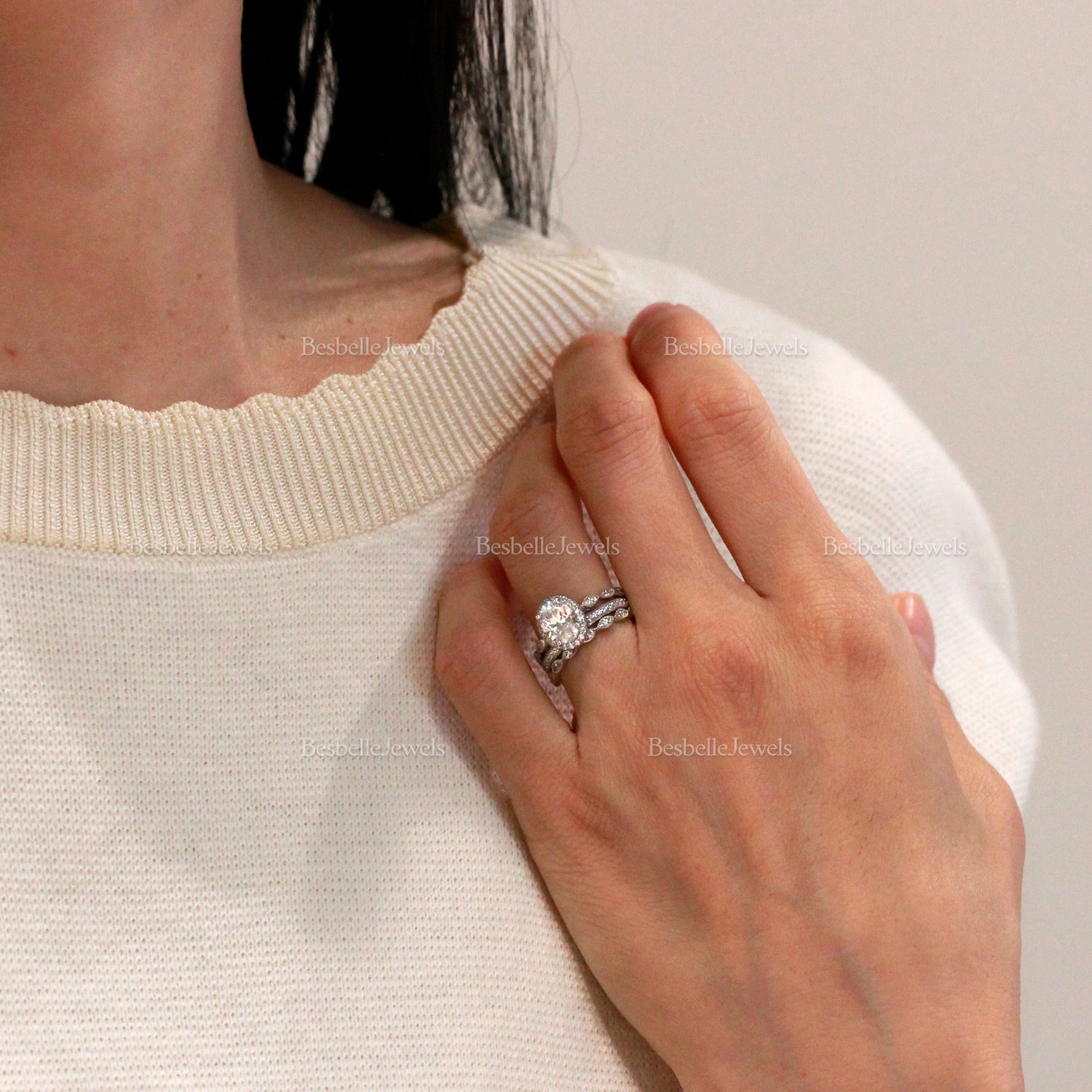 - Main Ring + B Set (Band 1+4) Total Carat Weight: 1.94 ctw