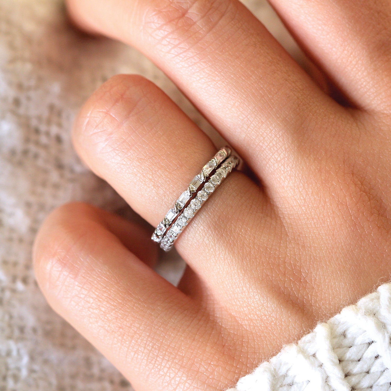 - Stone: Baguette Cut (2.1x1.5mm), Round Set (1.6mm)