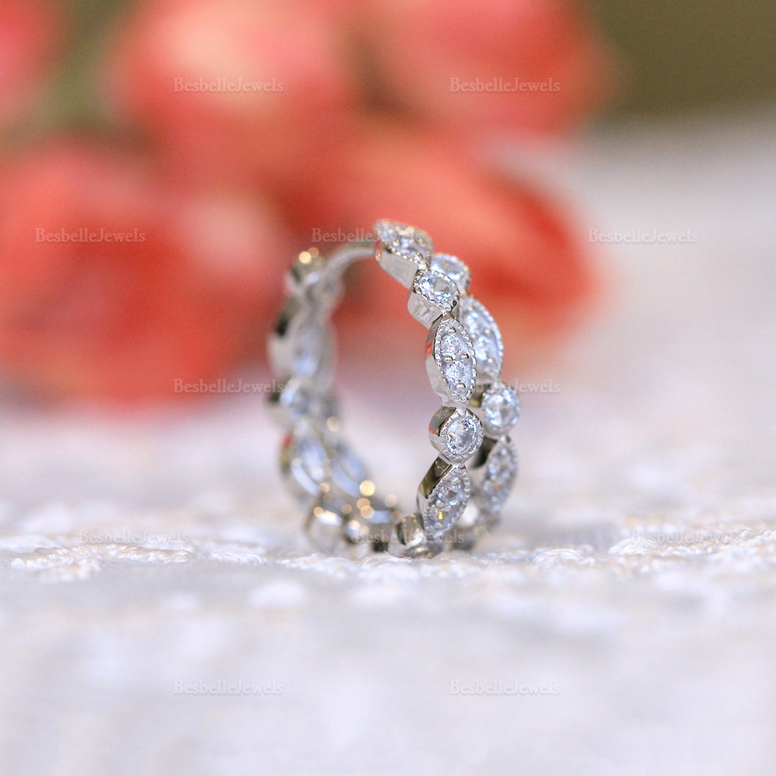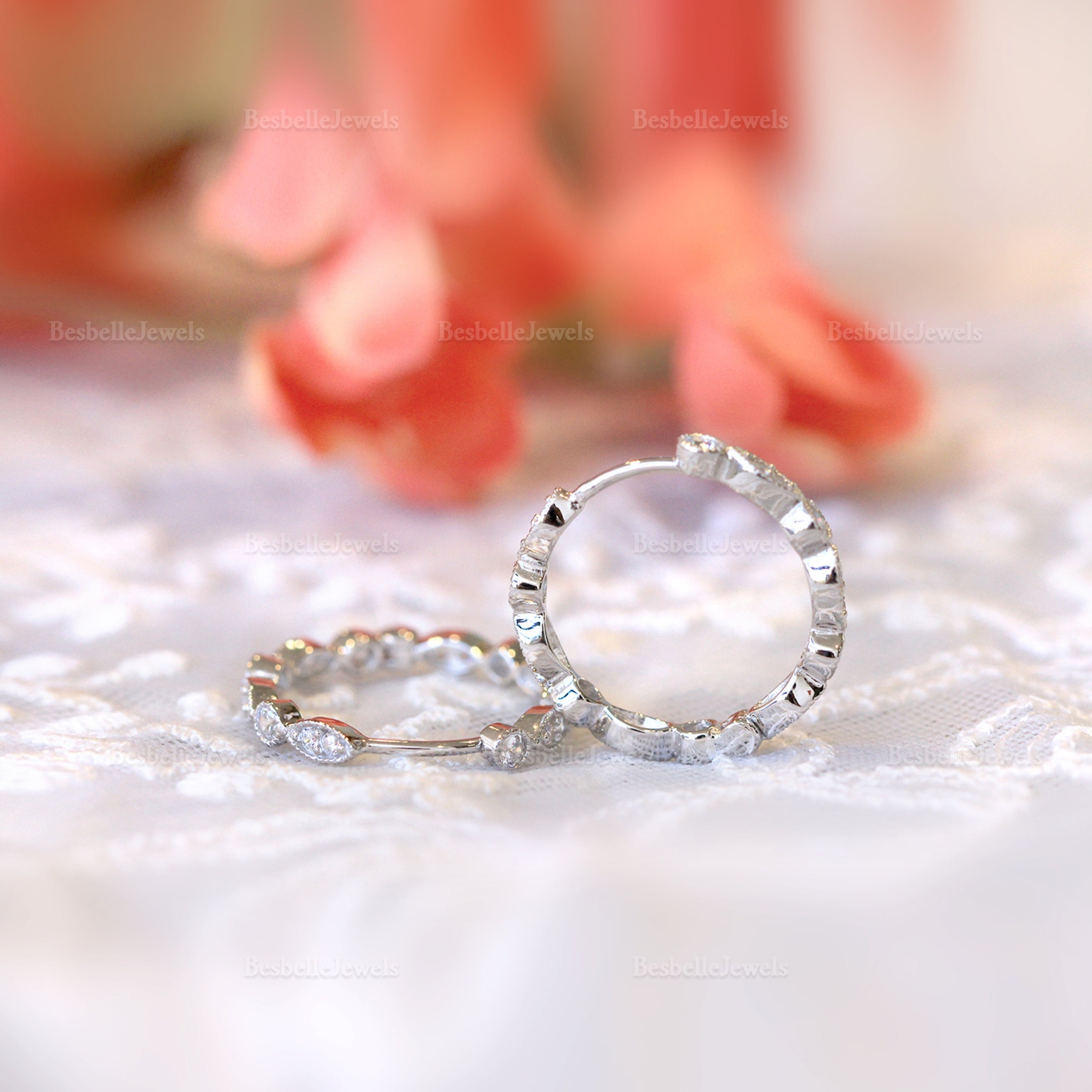 Besbelle's Signature Design but made to accessorize your eyes. You'll find these vintage style hoops complementing your everyday look.