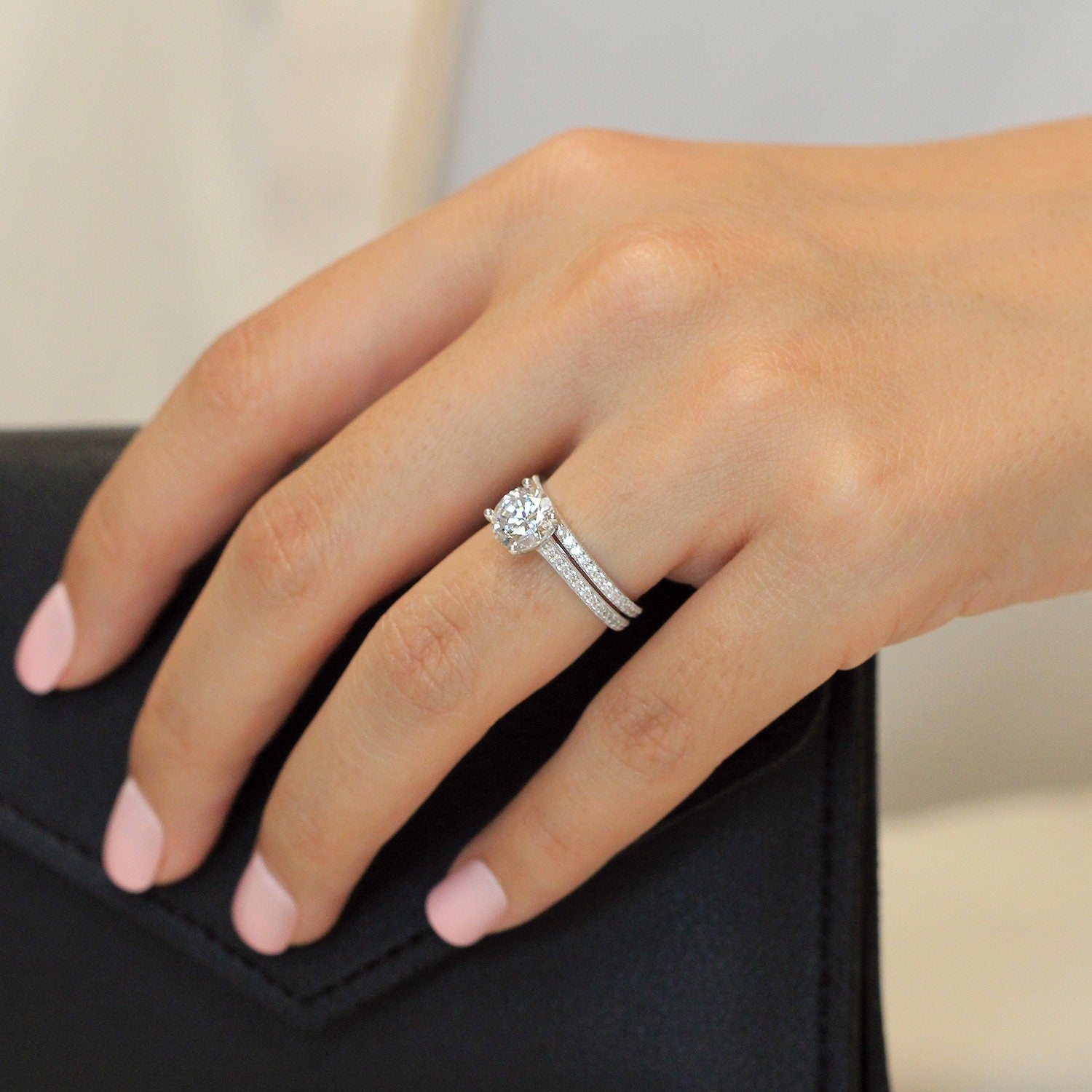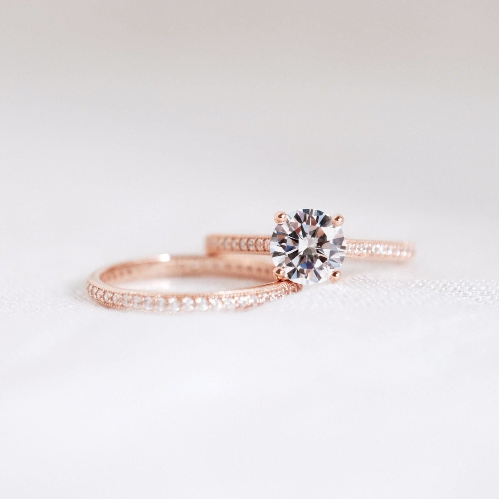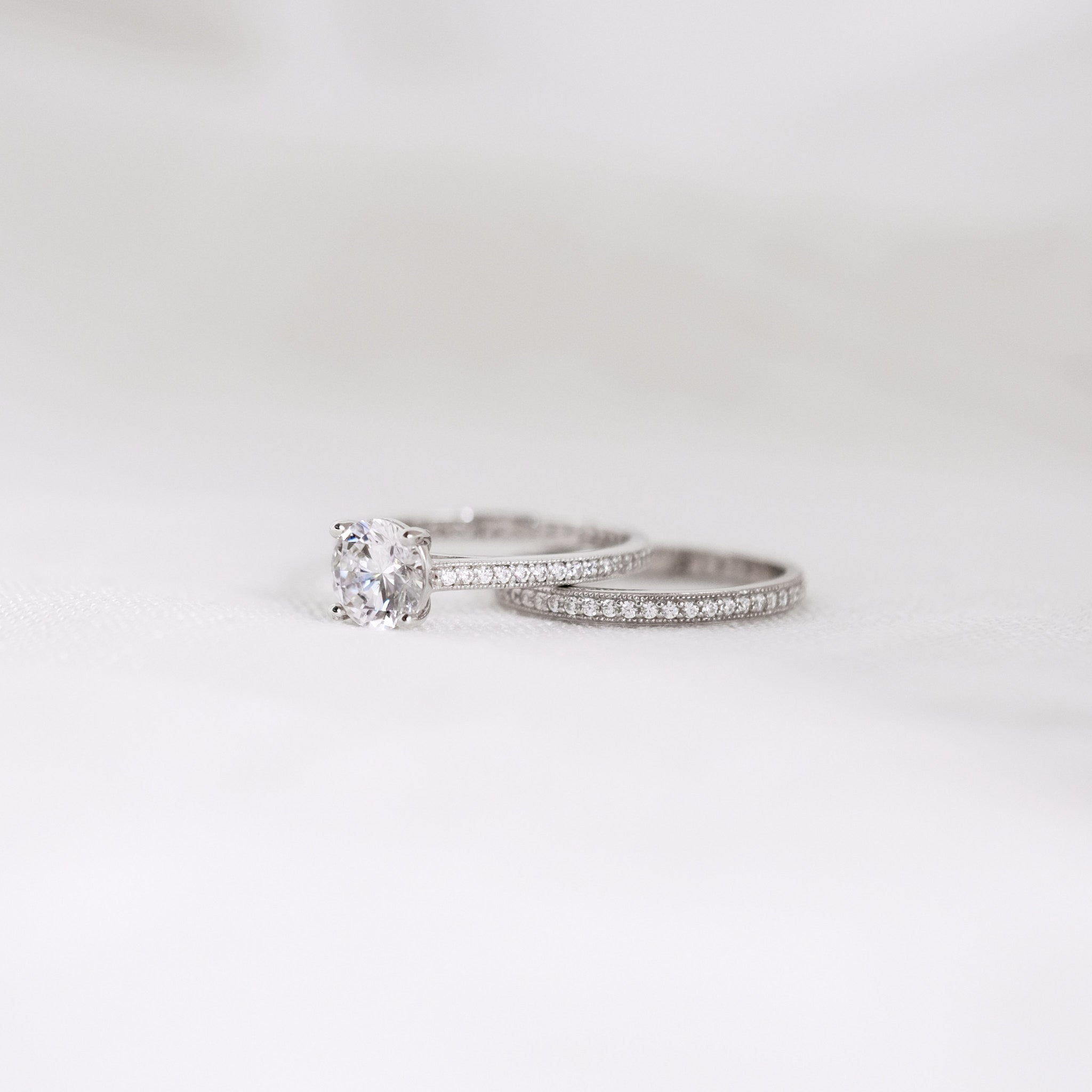 This Bold Solitaire Ring with the Milgrain Eternity Band is a match made in heaven. Classic and elegant.
