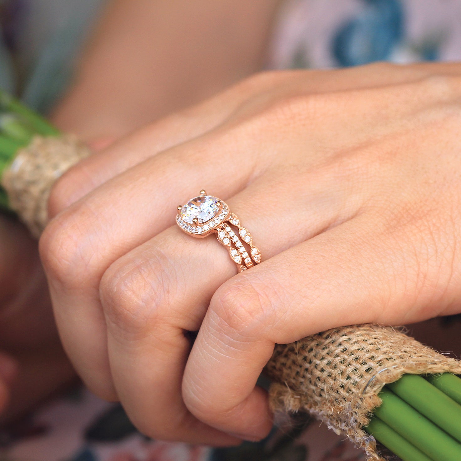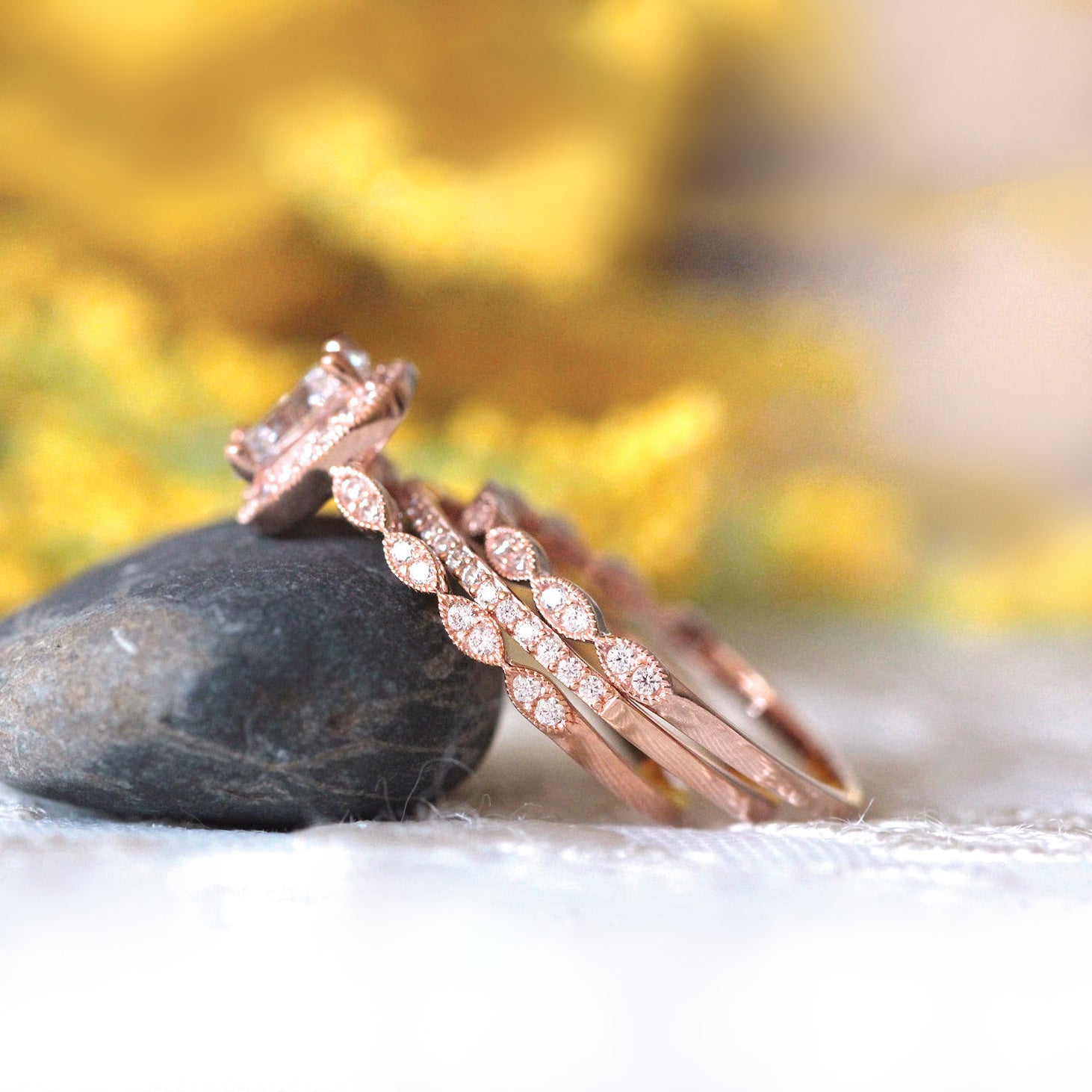 Vintage Art Deco • Grand Round Halo Pavé Mix Triple Ring Set • Rose Gold • BR6053-3PX