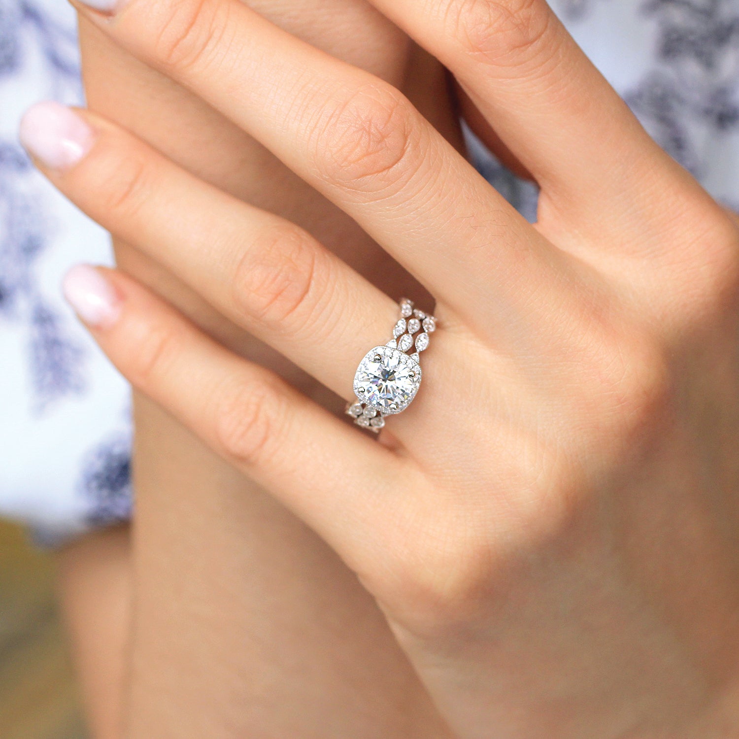 - Main Ring + 2 Half Bands Total Carat Weight: 2.49 ctw