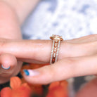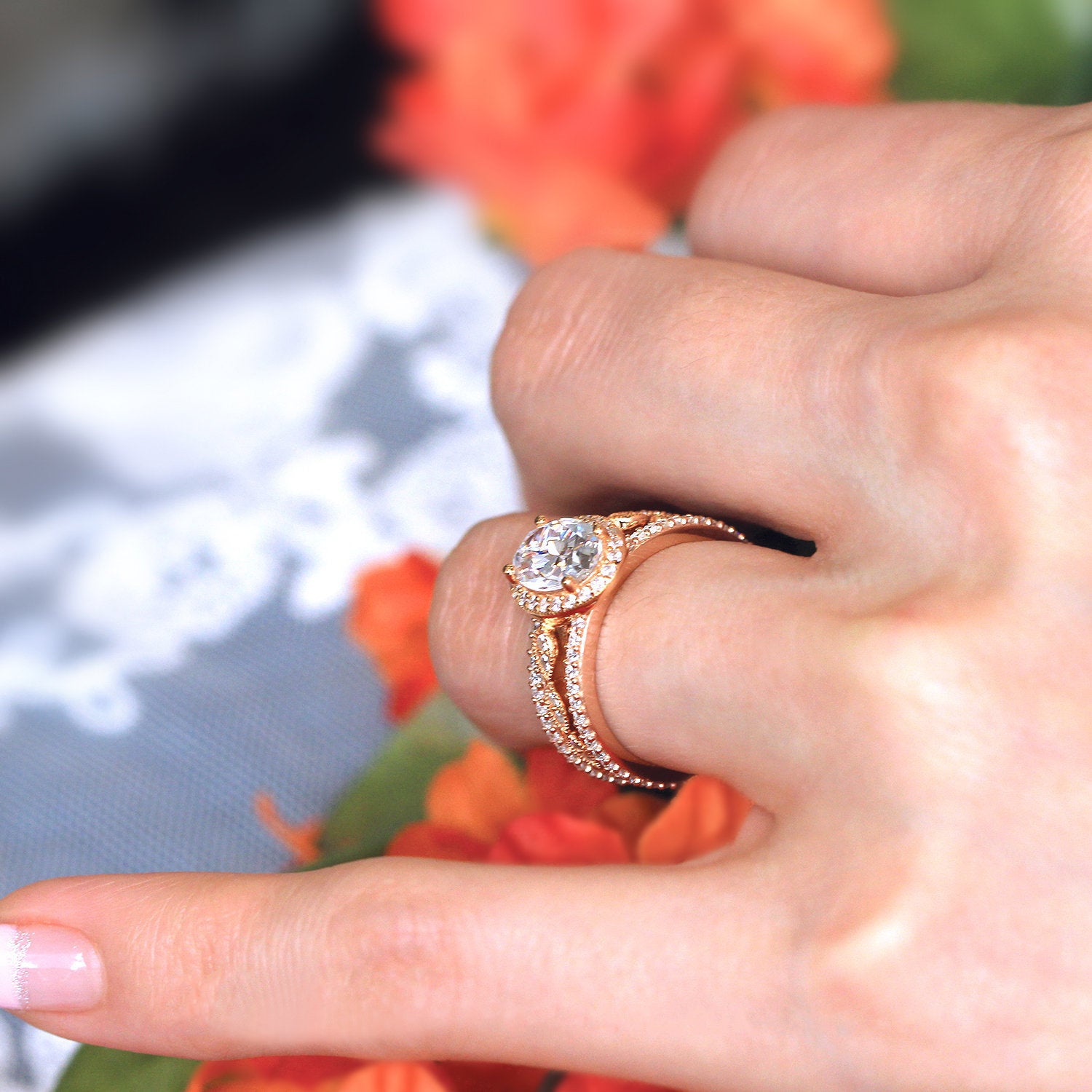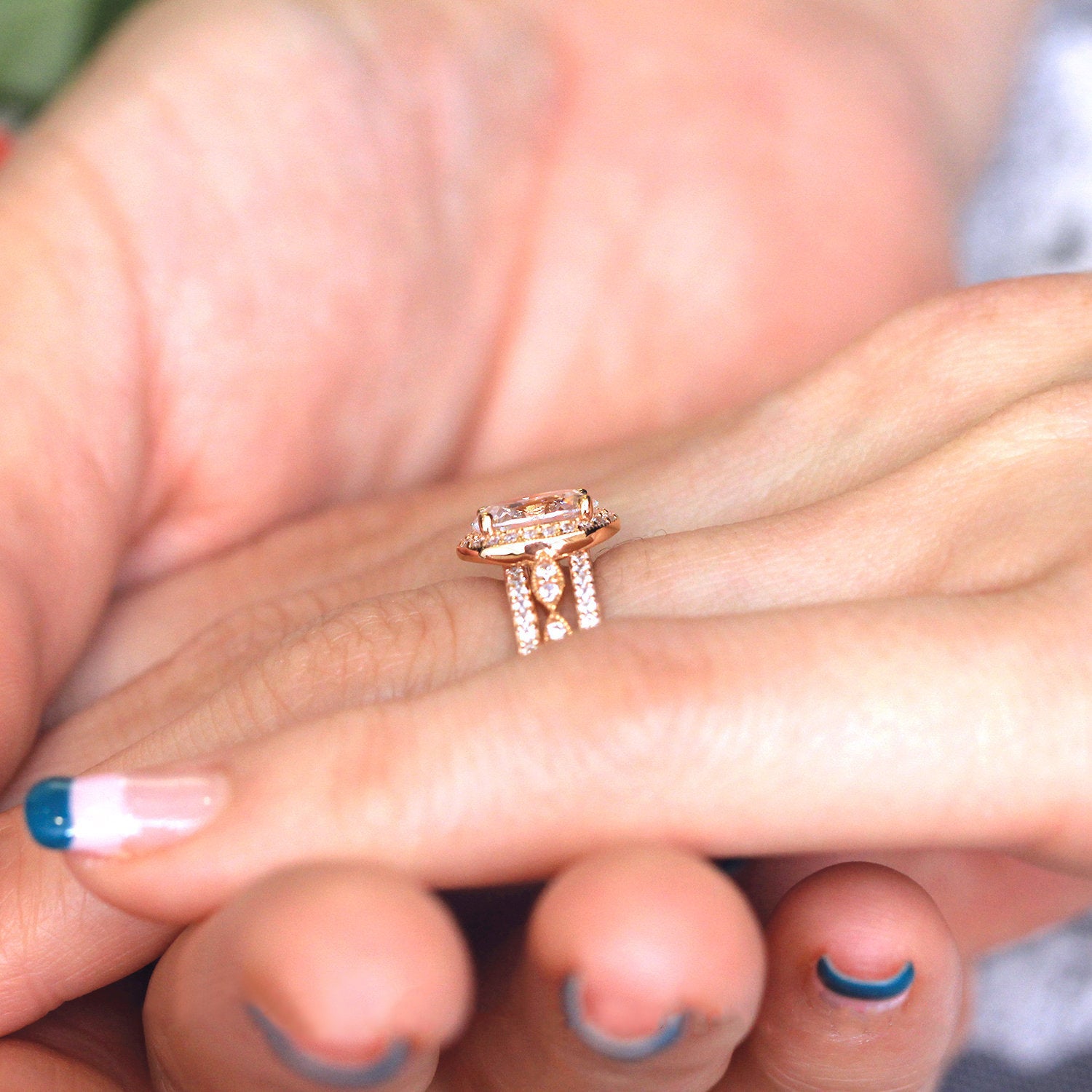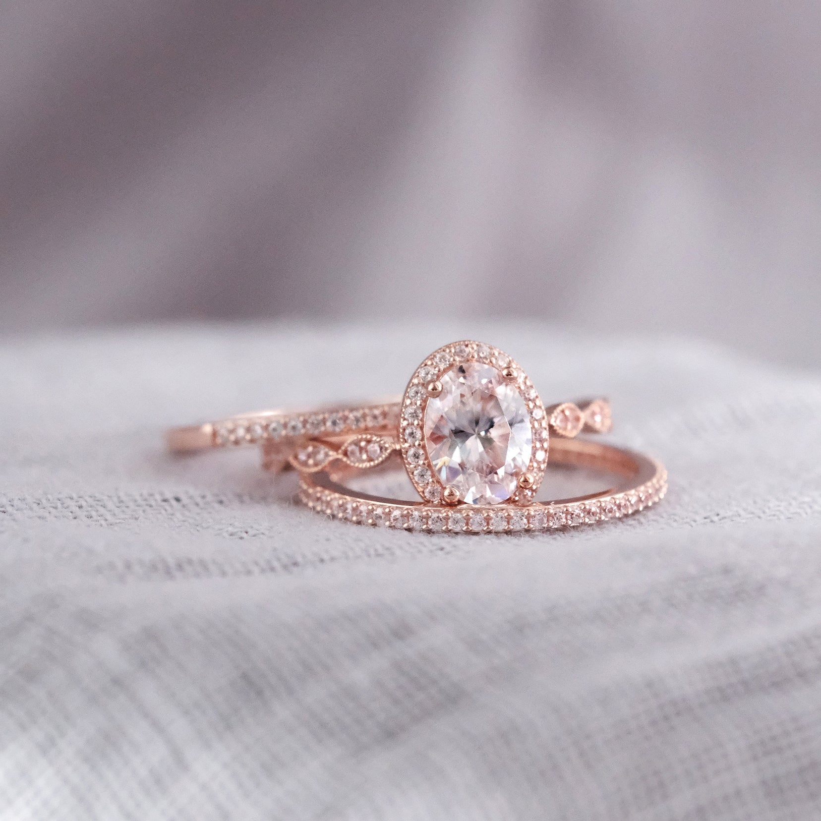 Vintage Art Deco • Oval Halo Pavé Triple Ring Set • Rose Gold • BR5953-3P