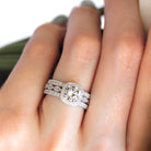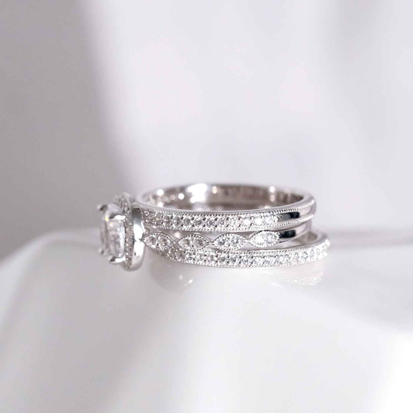 Vintage Art Deco • Round Halo Milgrain Triple Ring Set • Sterling Silver • BR5553-3M