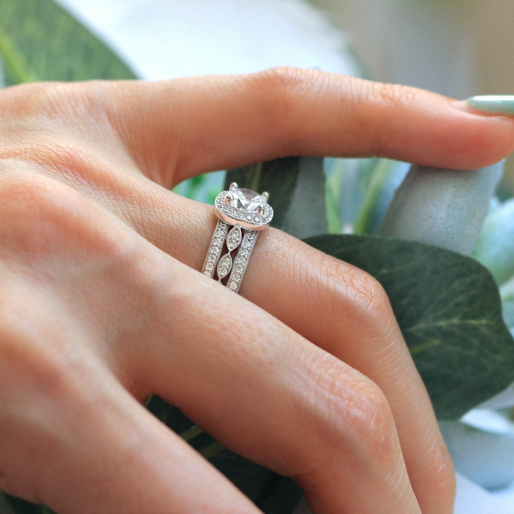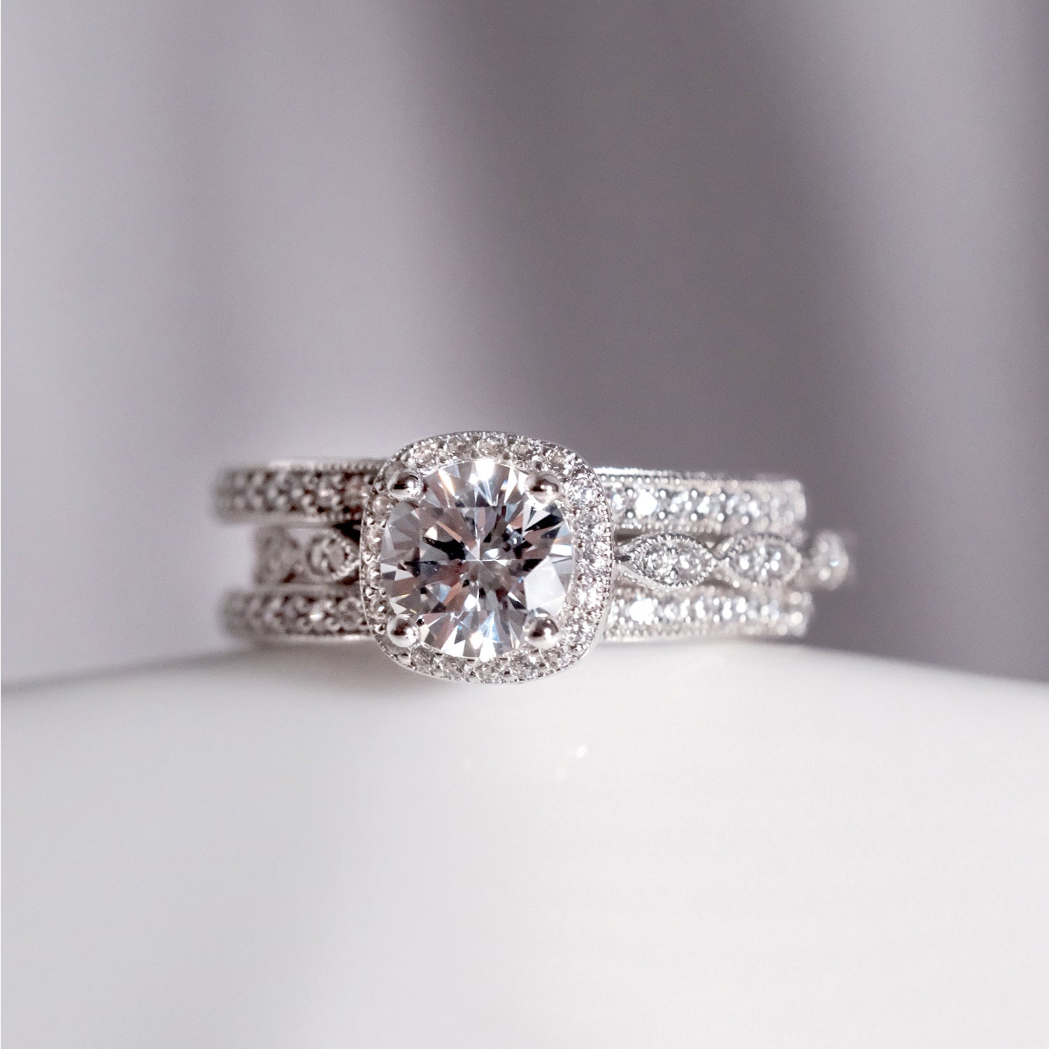 - Main Ring + 2 Half Bands Total Carat Weight: 1.75 ctw
