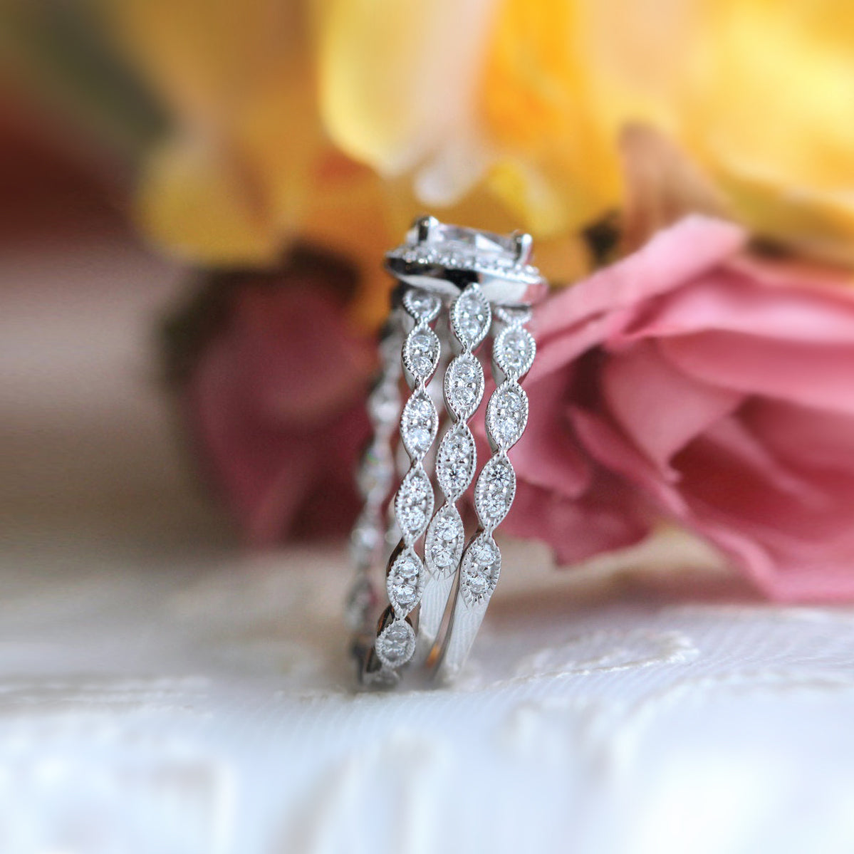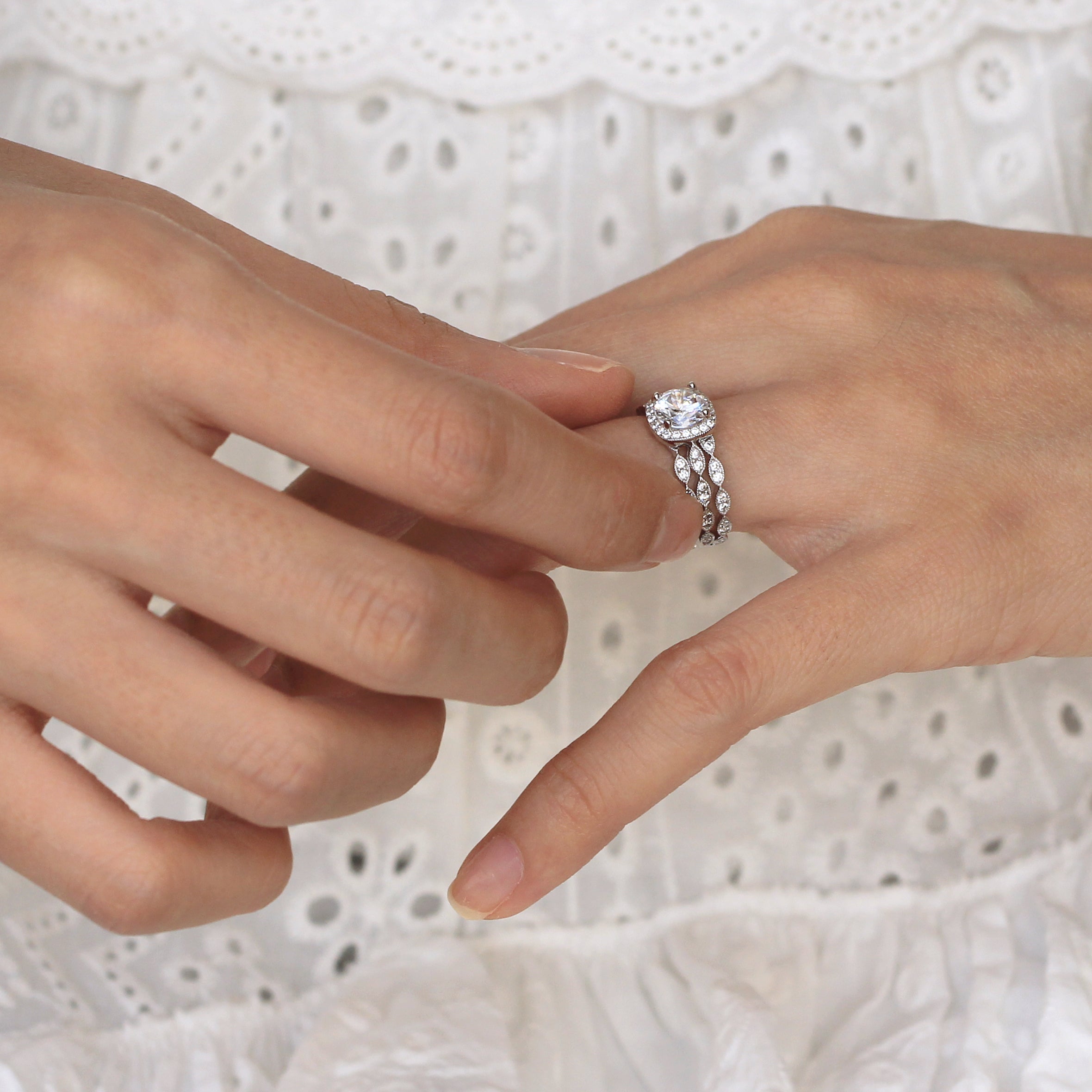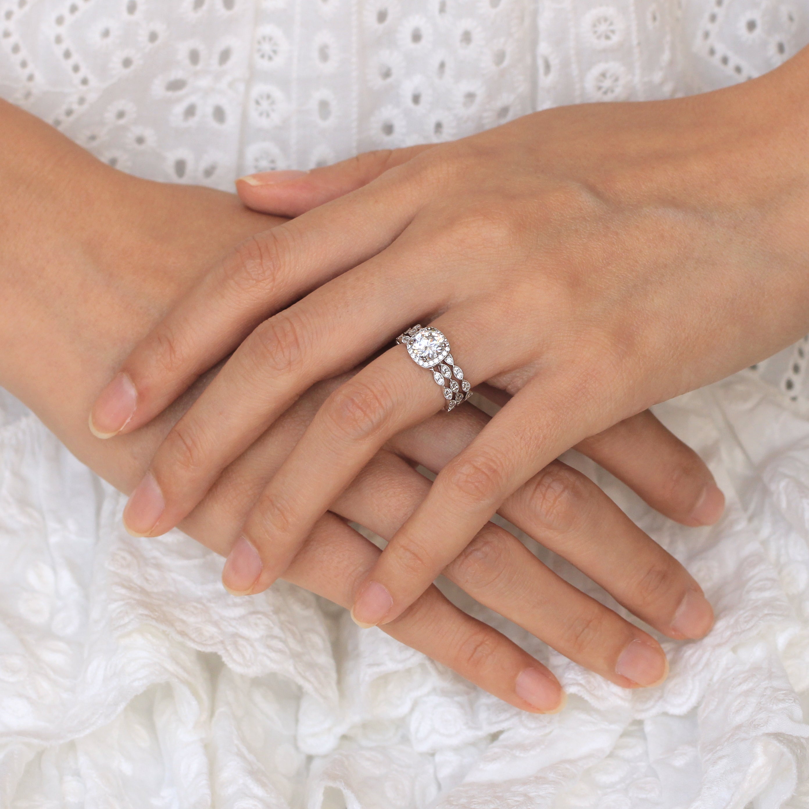 - Main Ring + 2 Half Bands Total Carat Weight: 1.79 ctw