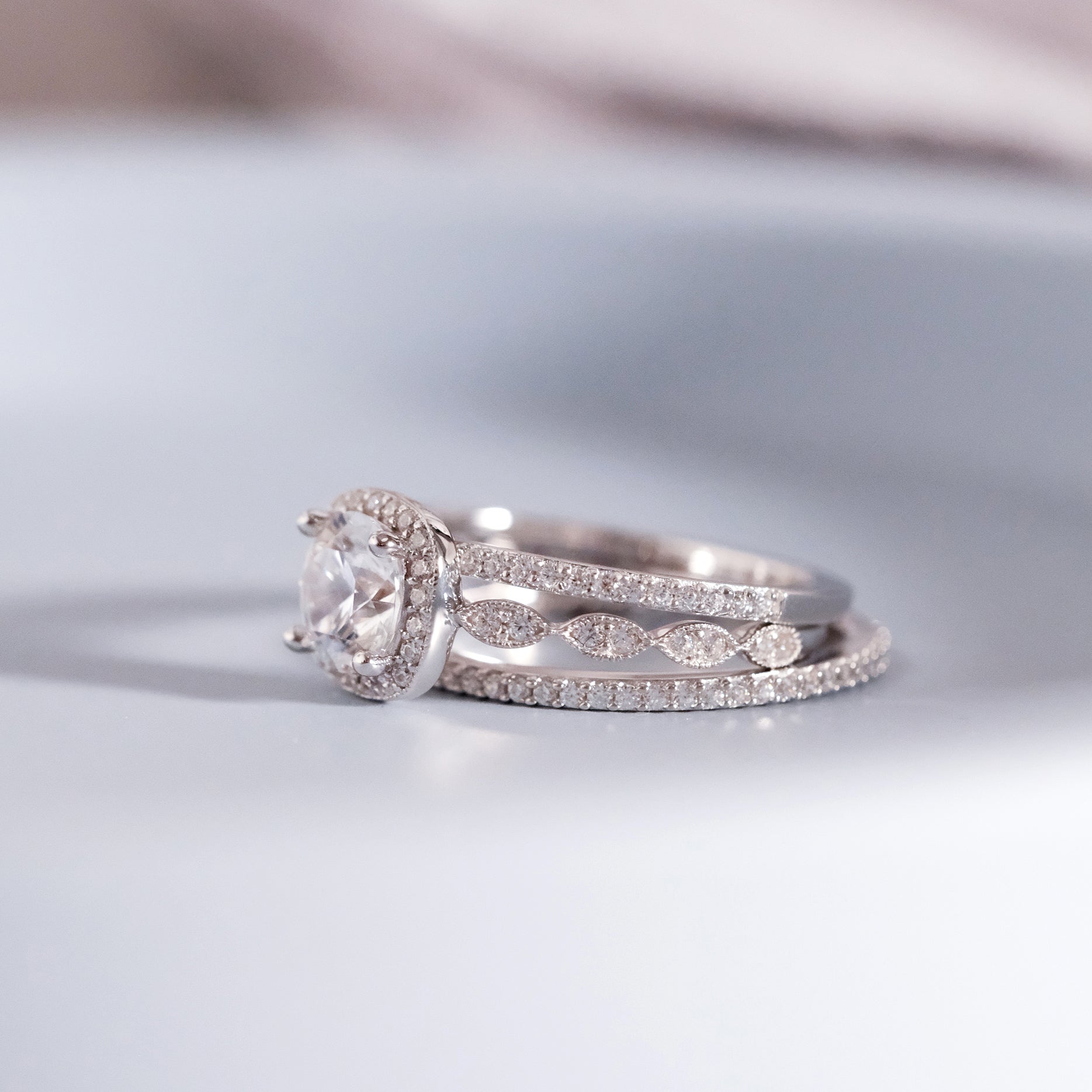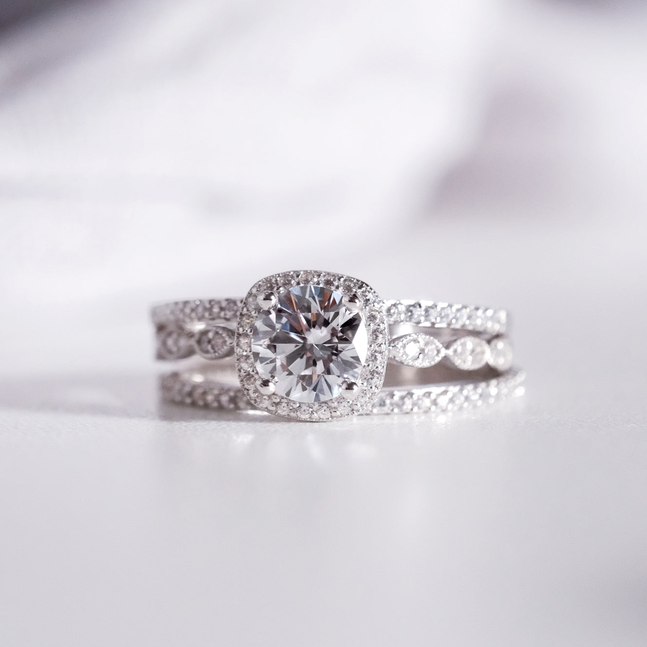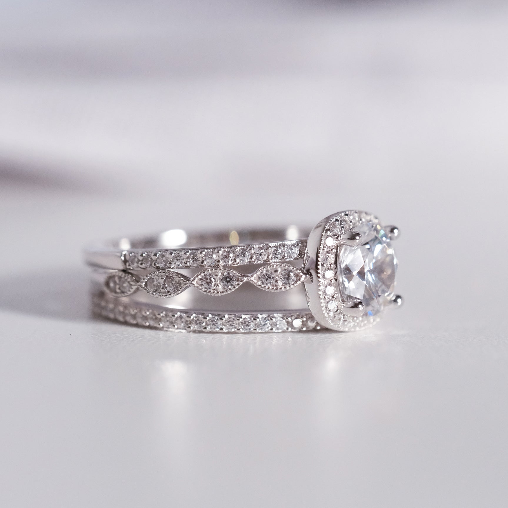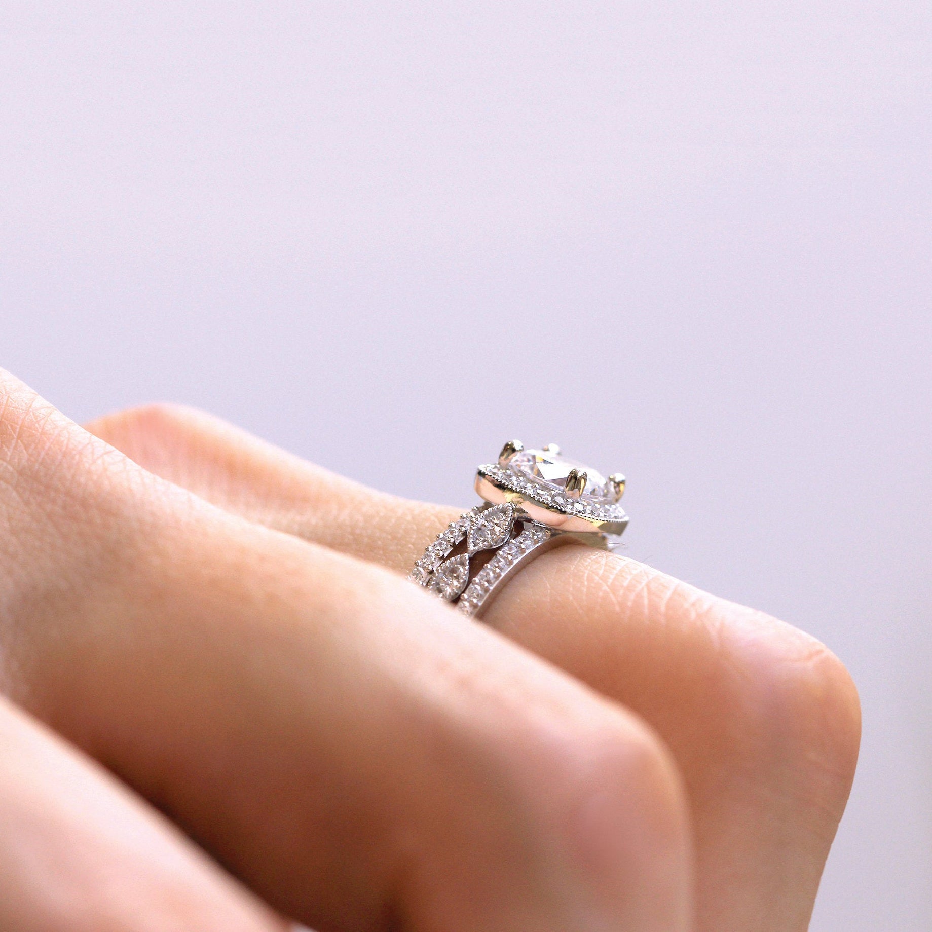 - Main Ring + 2 Half Bands Total Carat Weight: 1.79 ctw