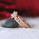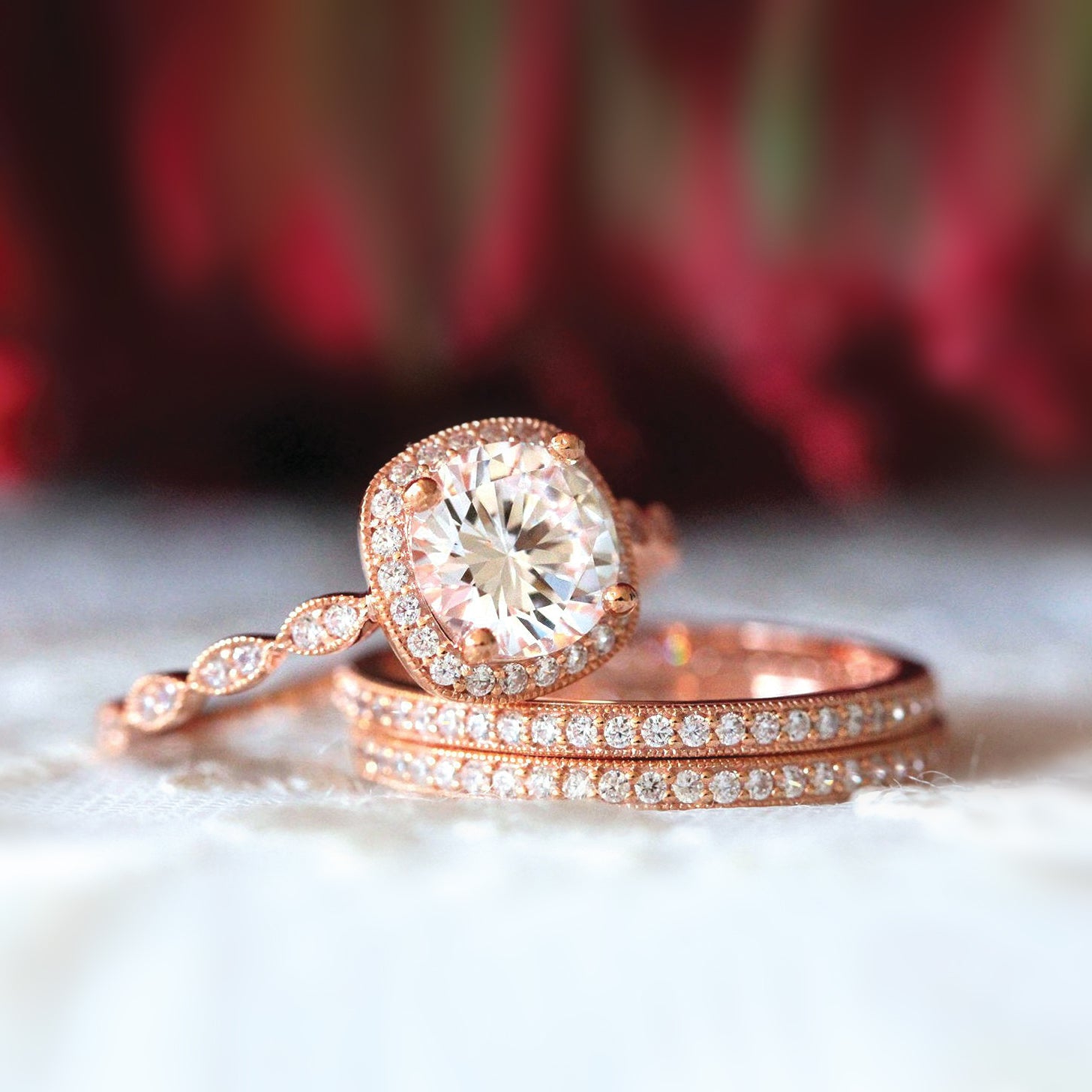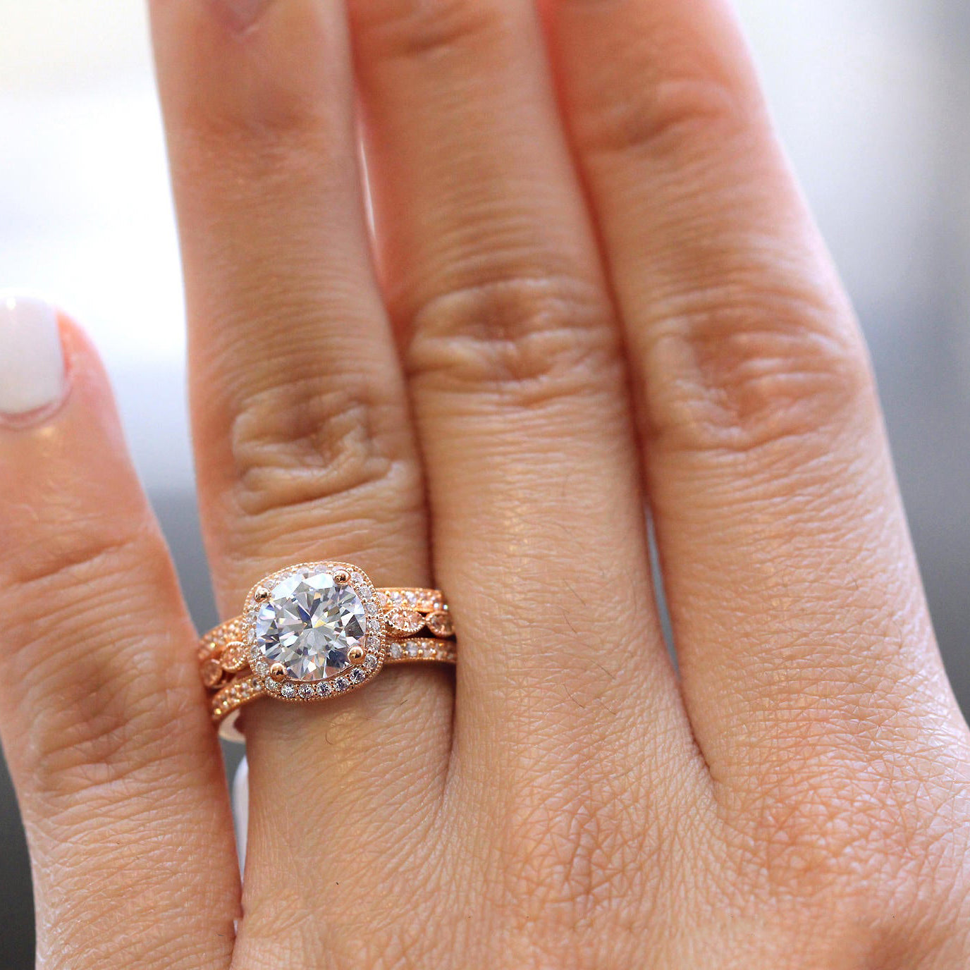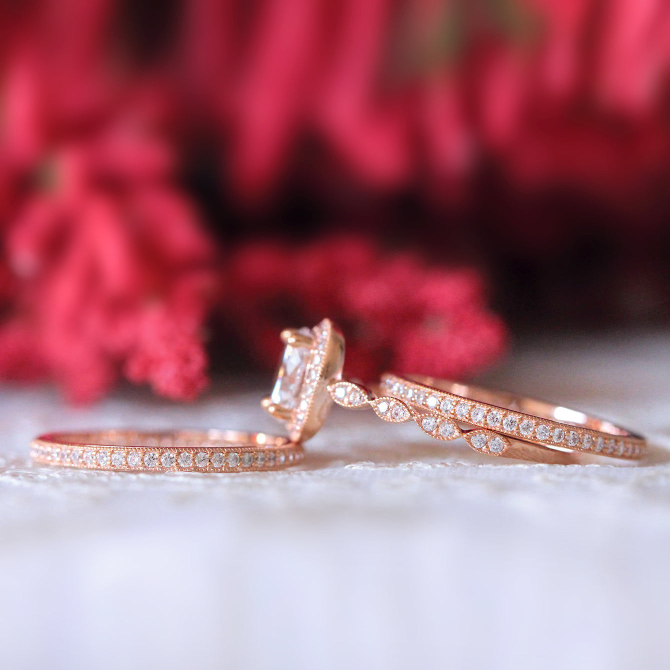 Vintage Art Deco • Grand Round Halo Milgrain Triple Ring Set • Rose Gold • BR6053-3M