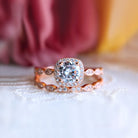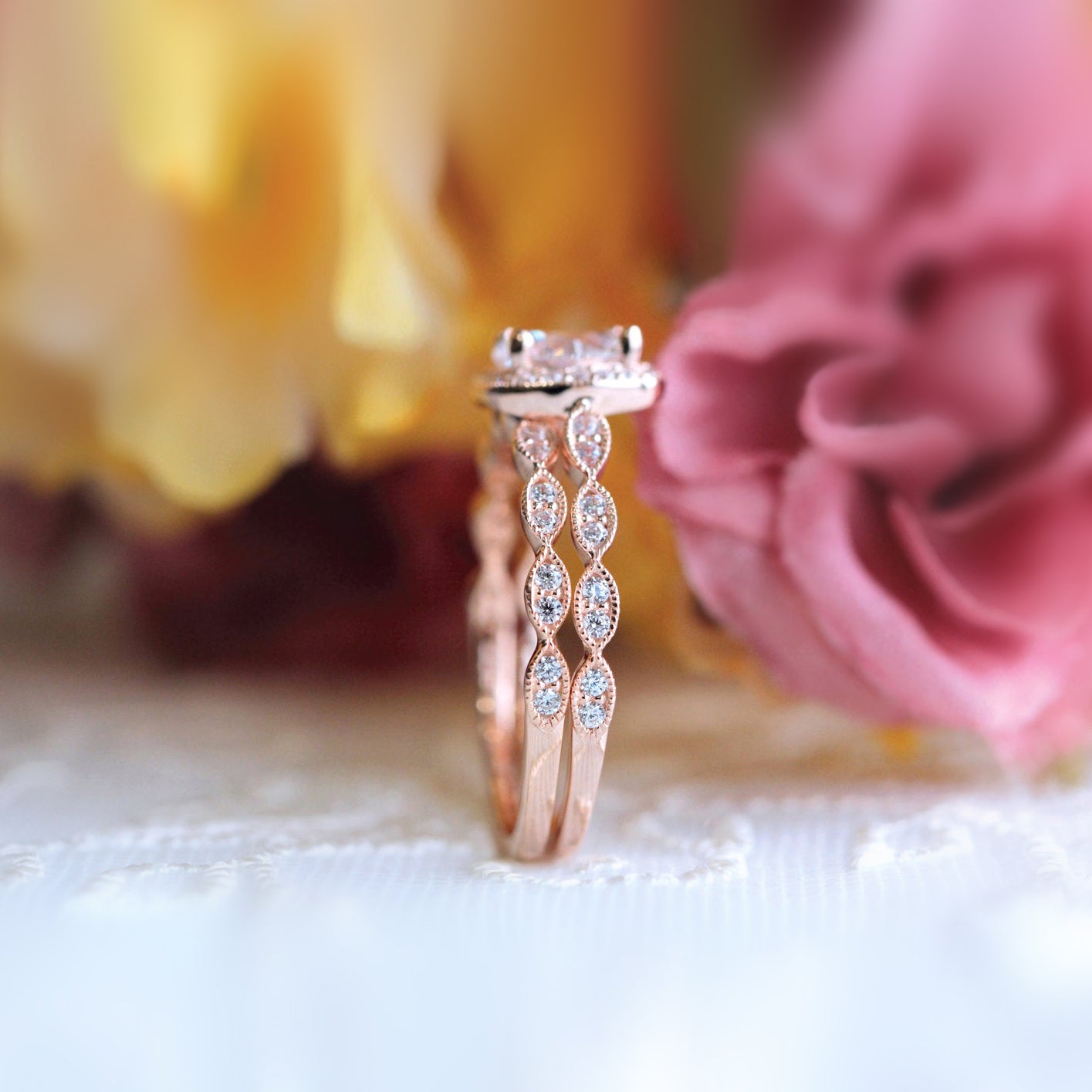 Vintage Art Deco • Round Halo Ring Set • Rose Gold • BR5553-2