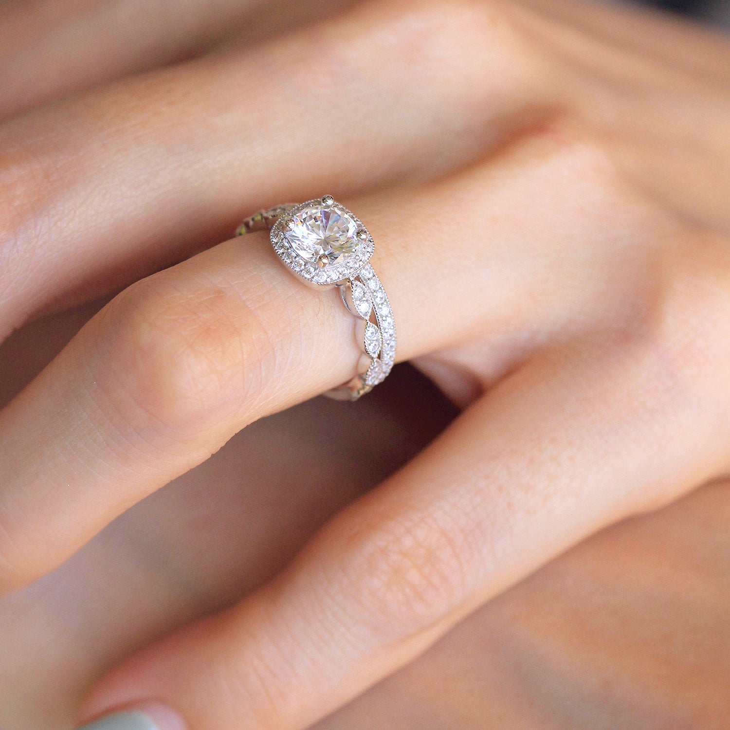 - Center Stone Weight & Dimension: 0.84 ct, 6.0mm