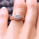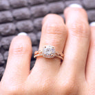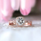 Vintage Art Deco • Round Halo Pavé Ring Set • Rose Gold • BR5553-2P