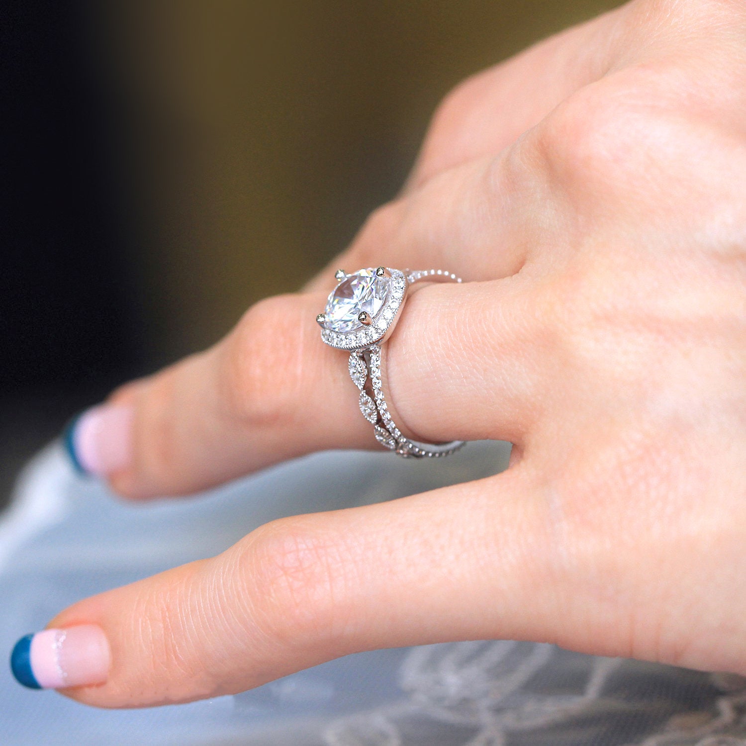 Vintage Art Deco • Grand Round Halo Pavé Ring Set • Sterling Silver • BR6053-2P