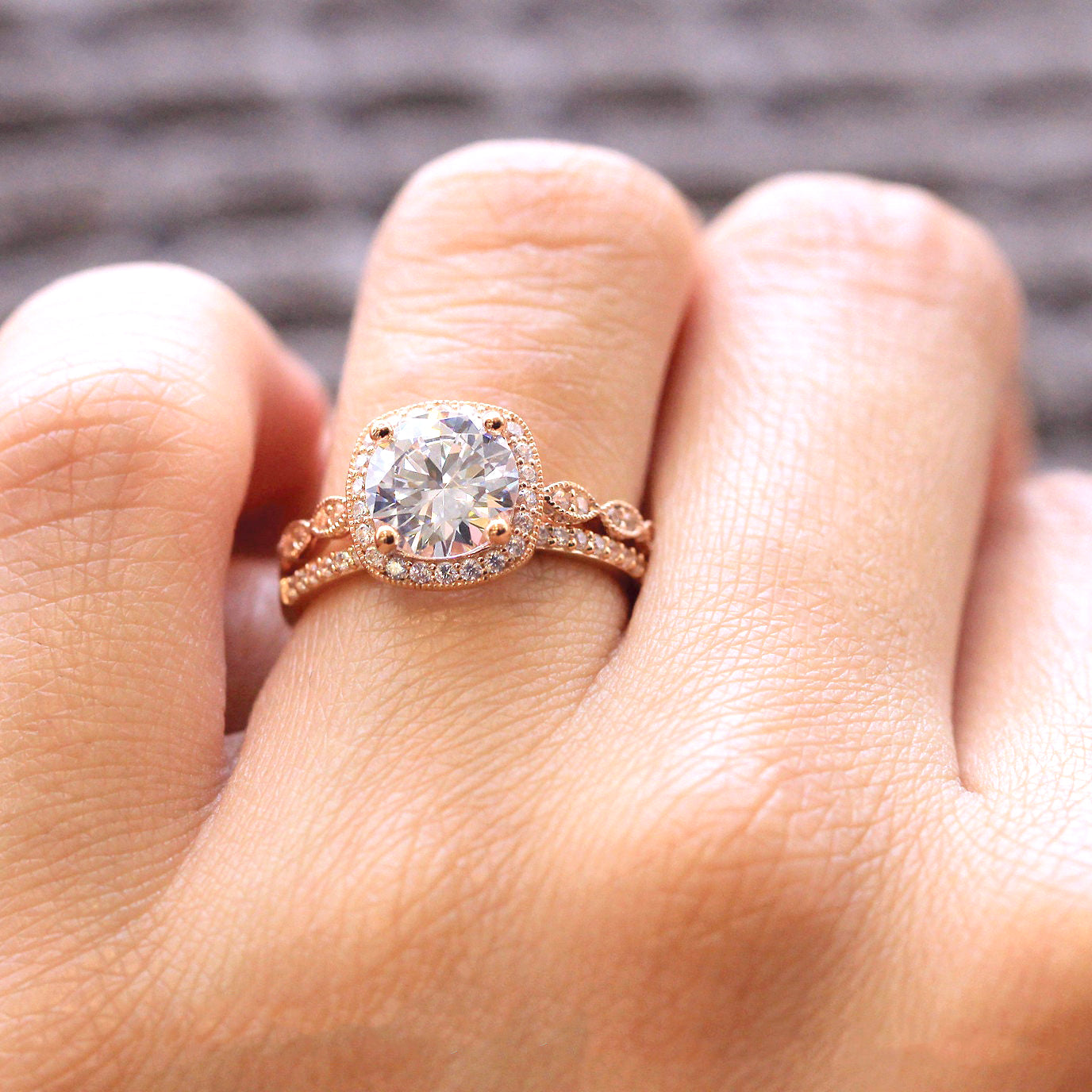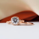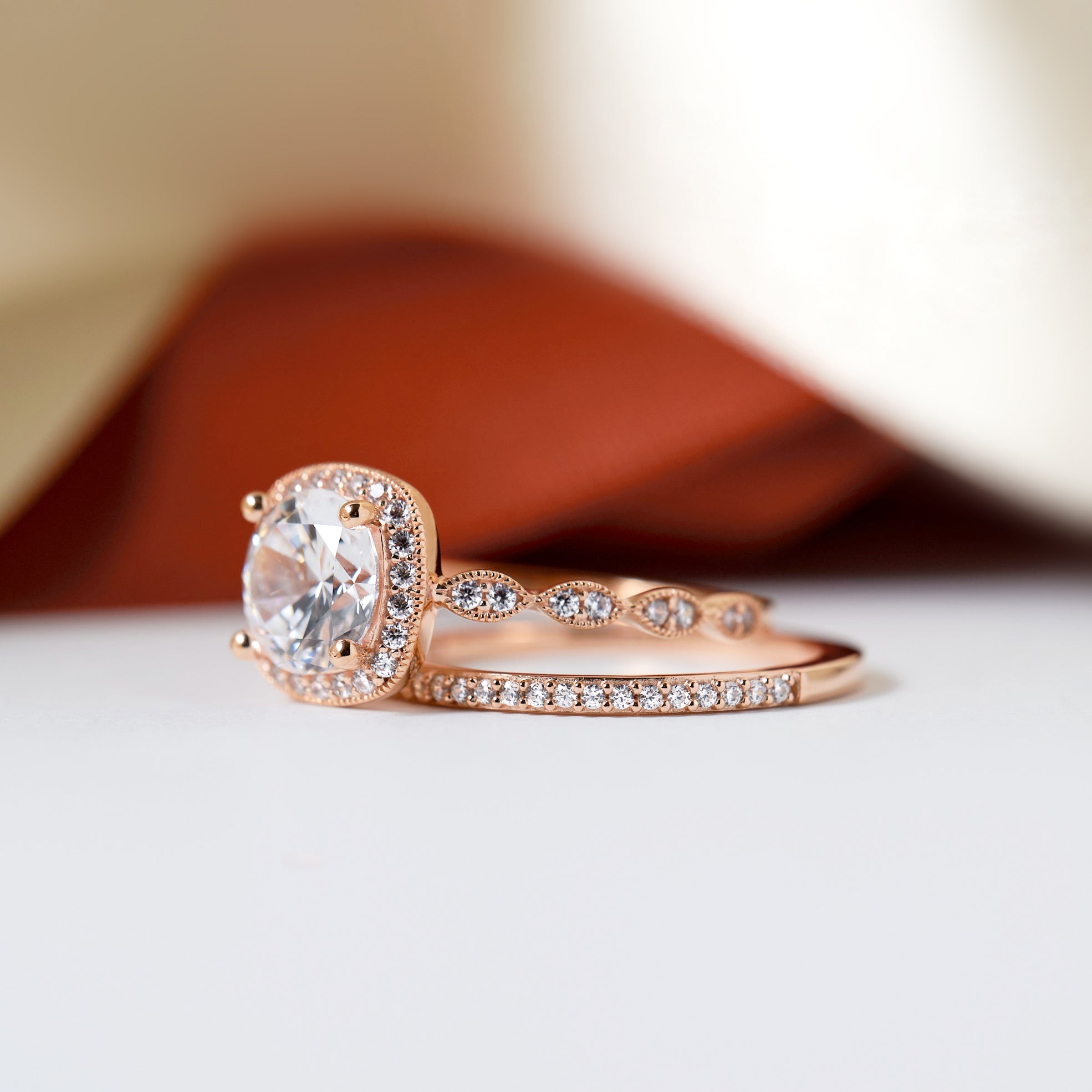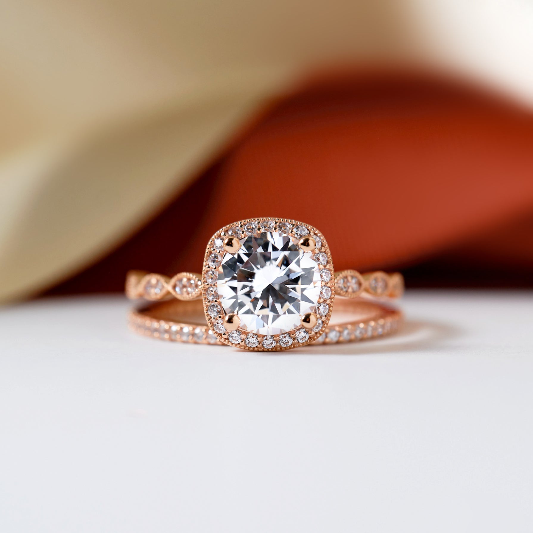 Vintage Art Deco • Grand Round Halo Pavé Ring Set • Rose Gold • BR6053-2P