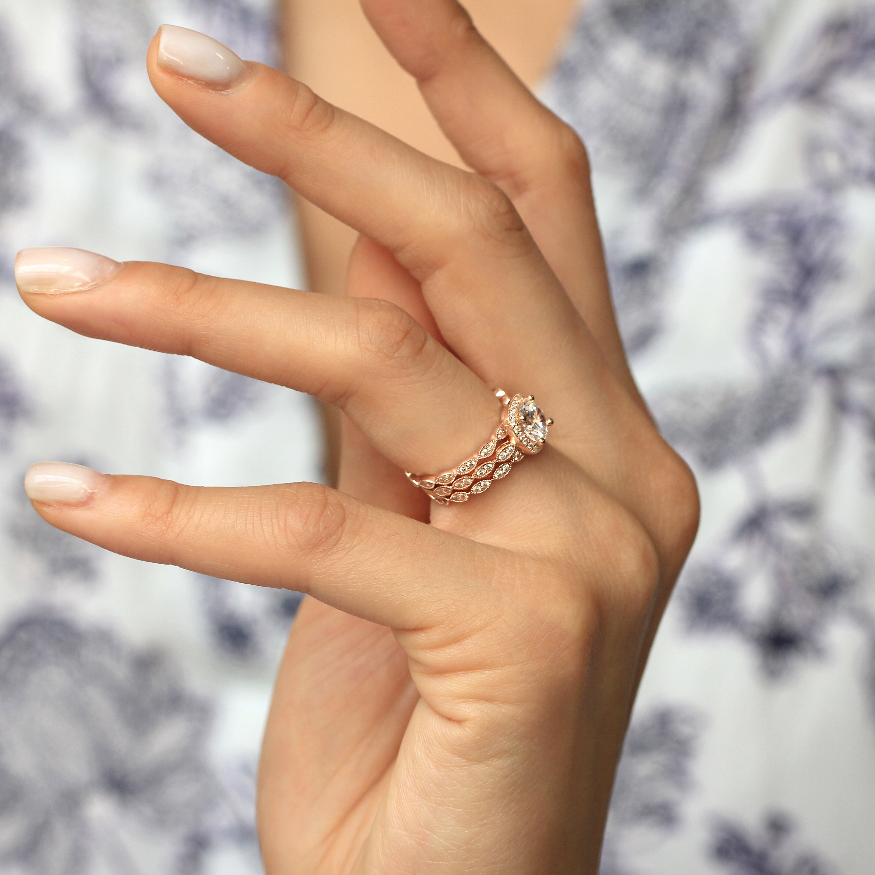 Vintage Art Deco • Round Halo Triple Ring Set • Rose Gold • BR5553-3