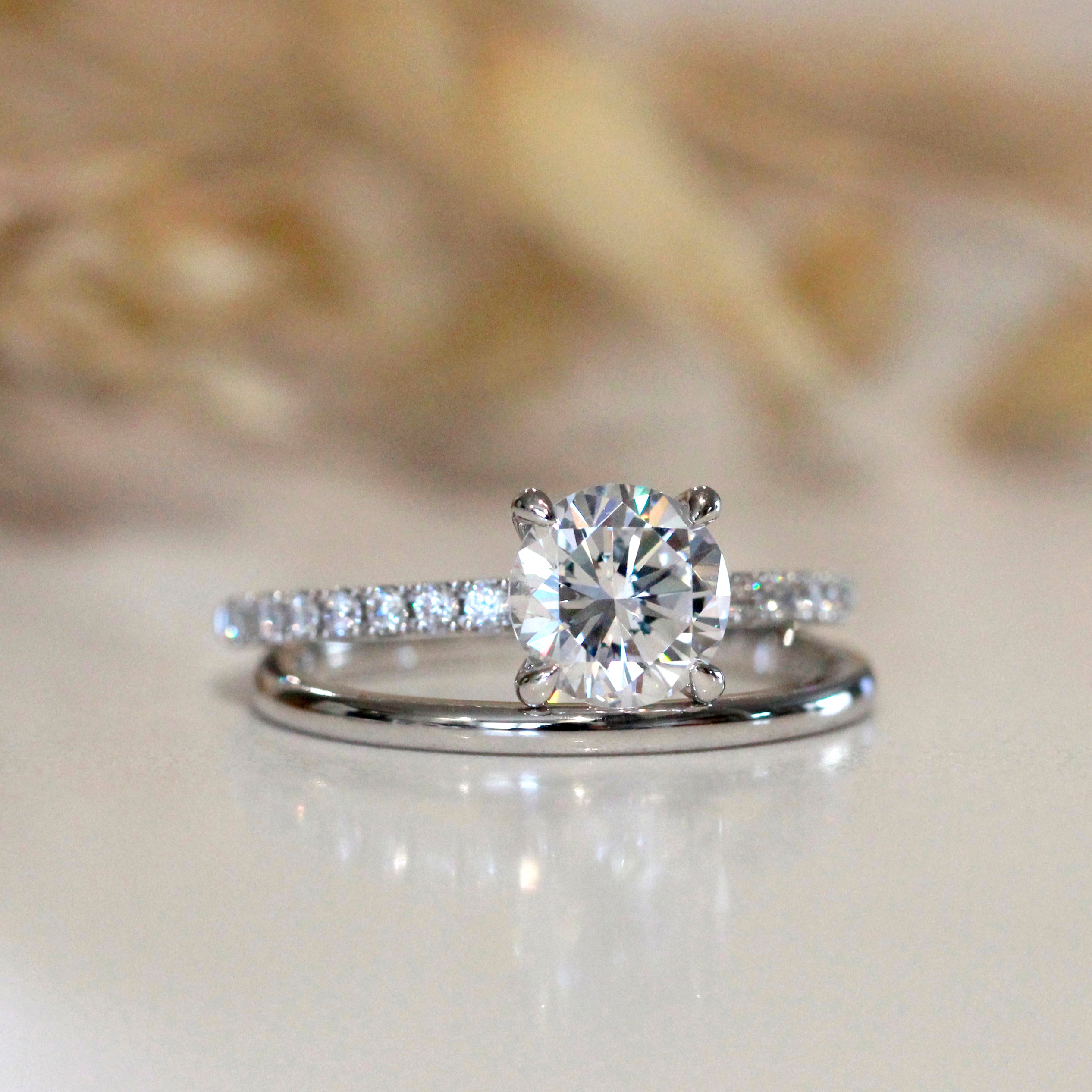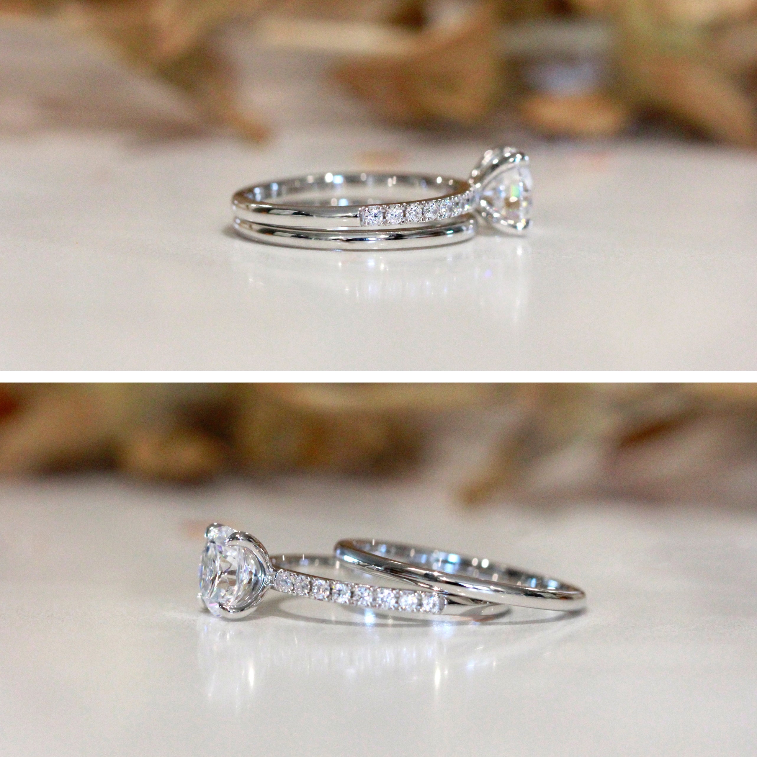 Round Solitaire Pavé Ring Set