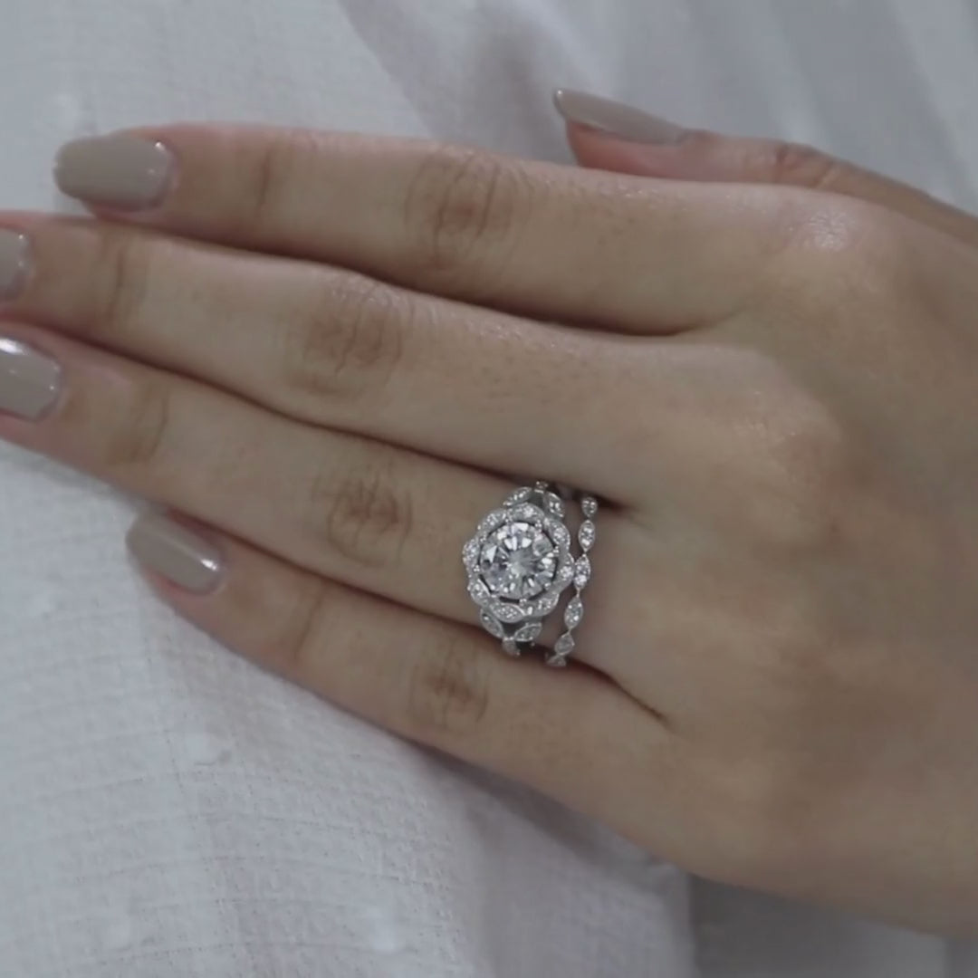 - Carat Weight w/ Half Eternity Band: 1.98 ctw