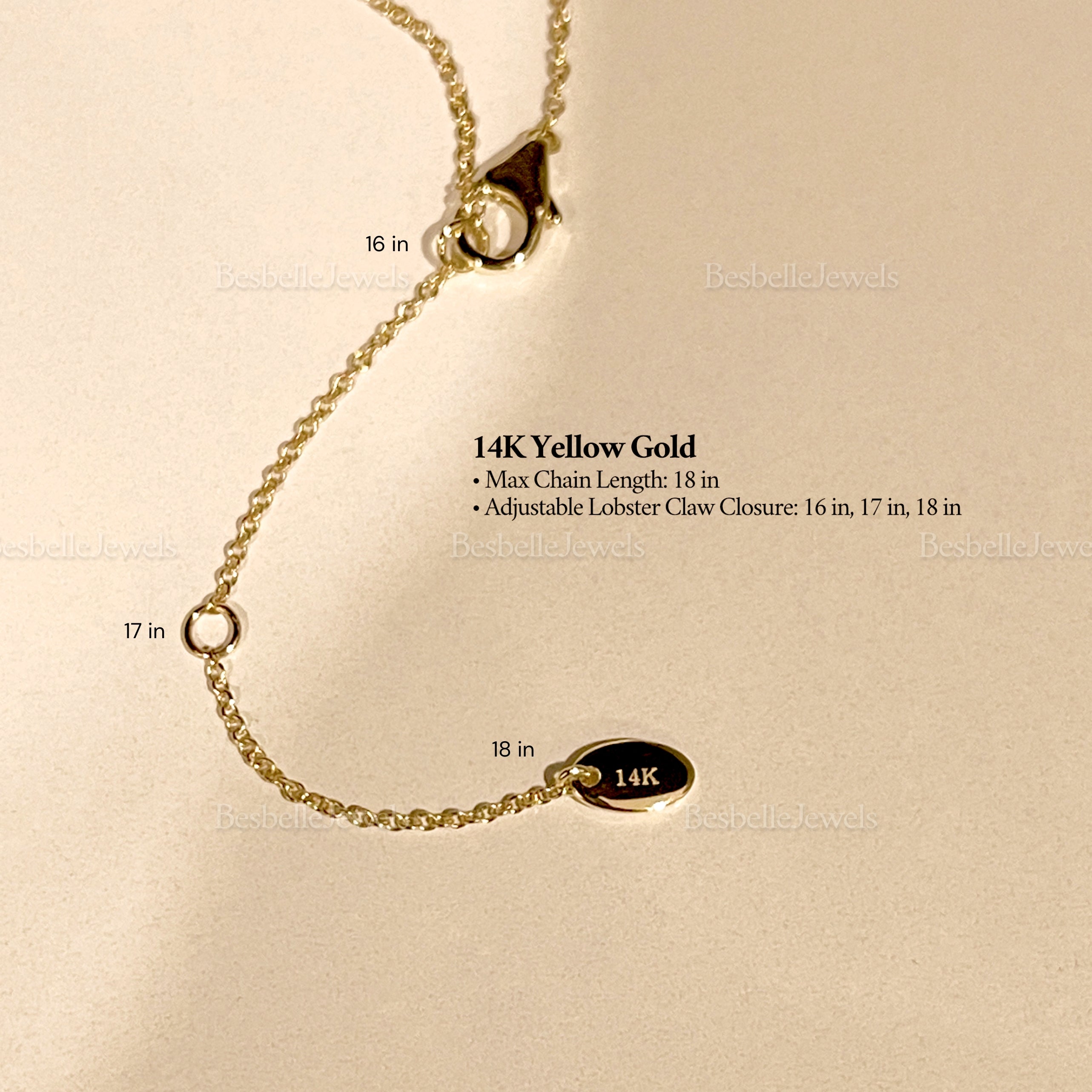 - Adjustable Lobster Claw Closure: 16 in, 17 in, 18 in