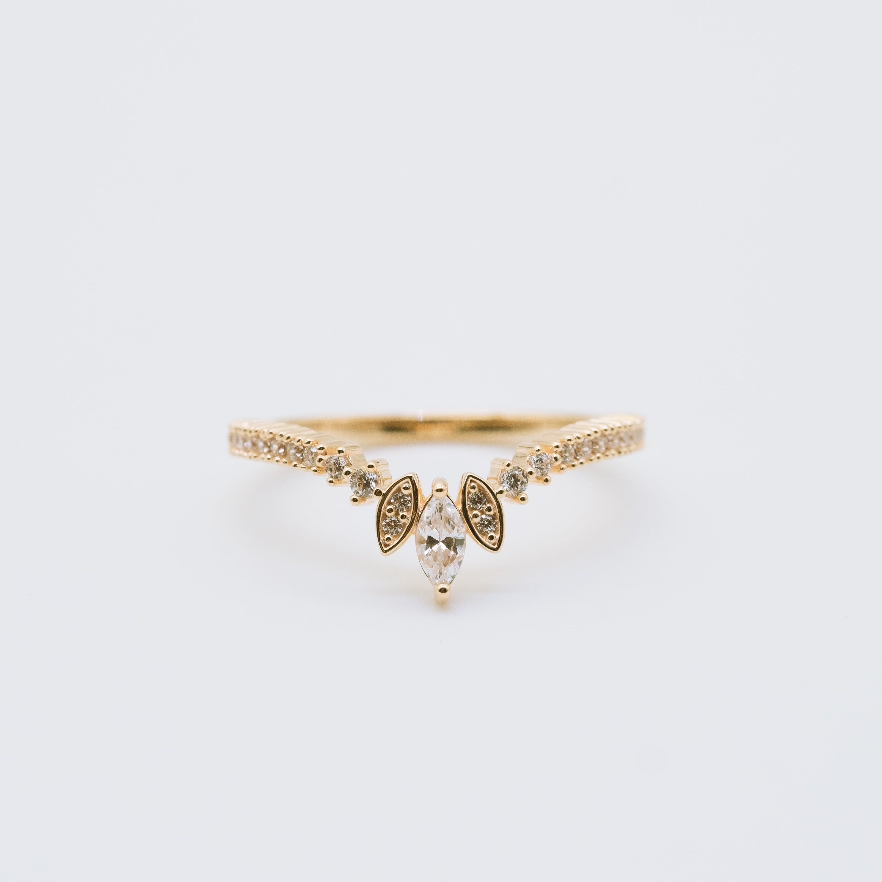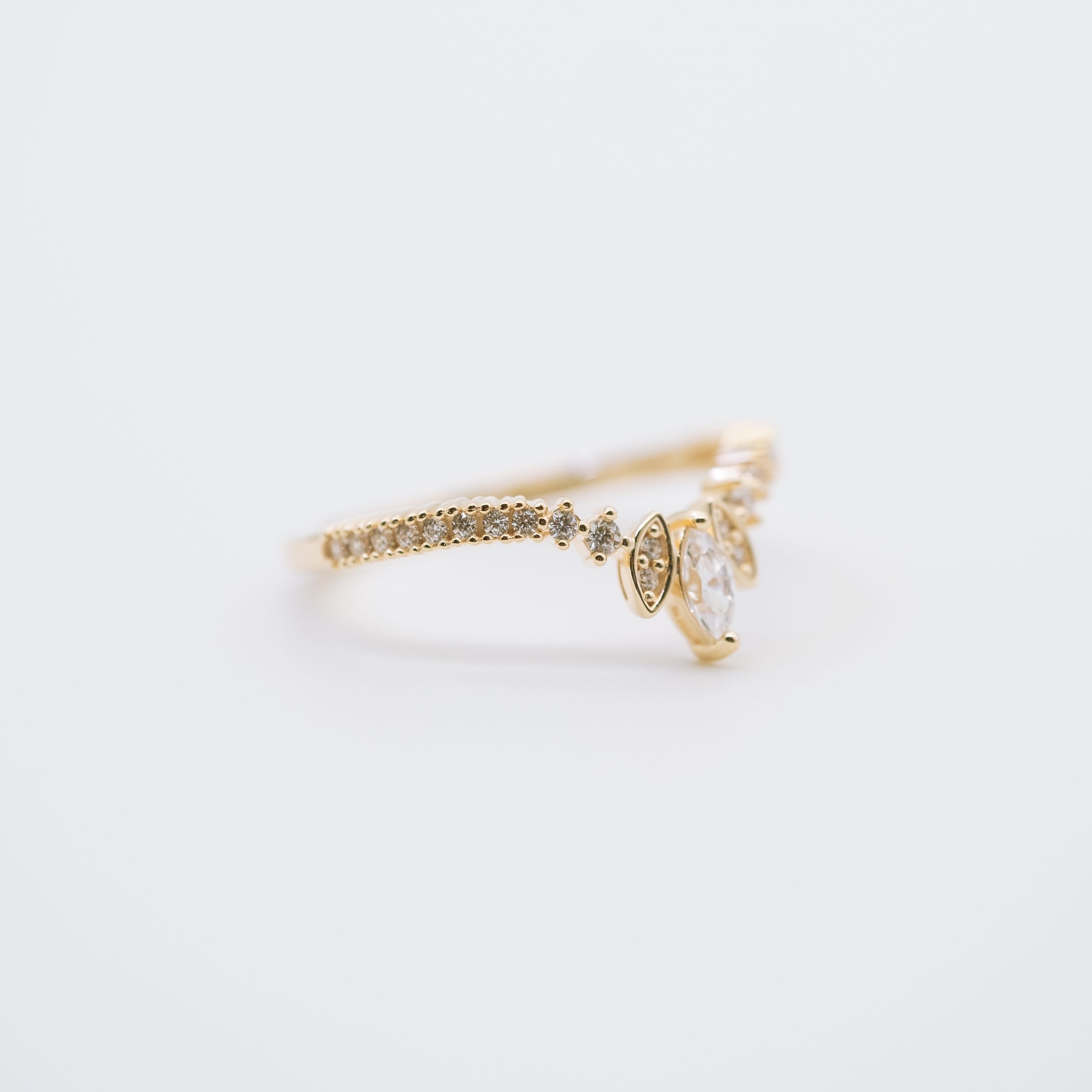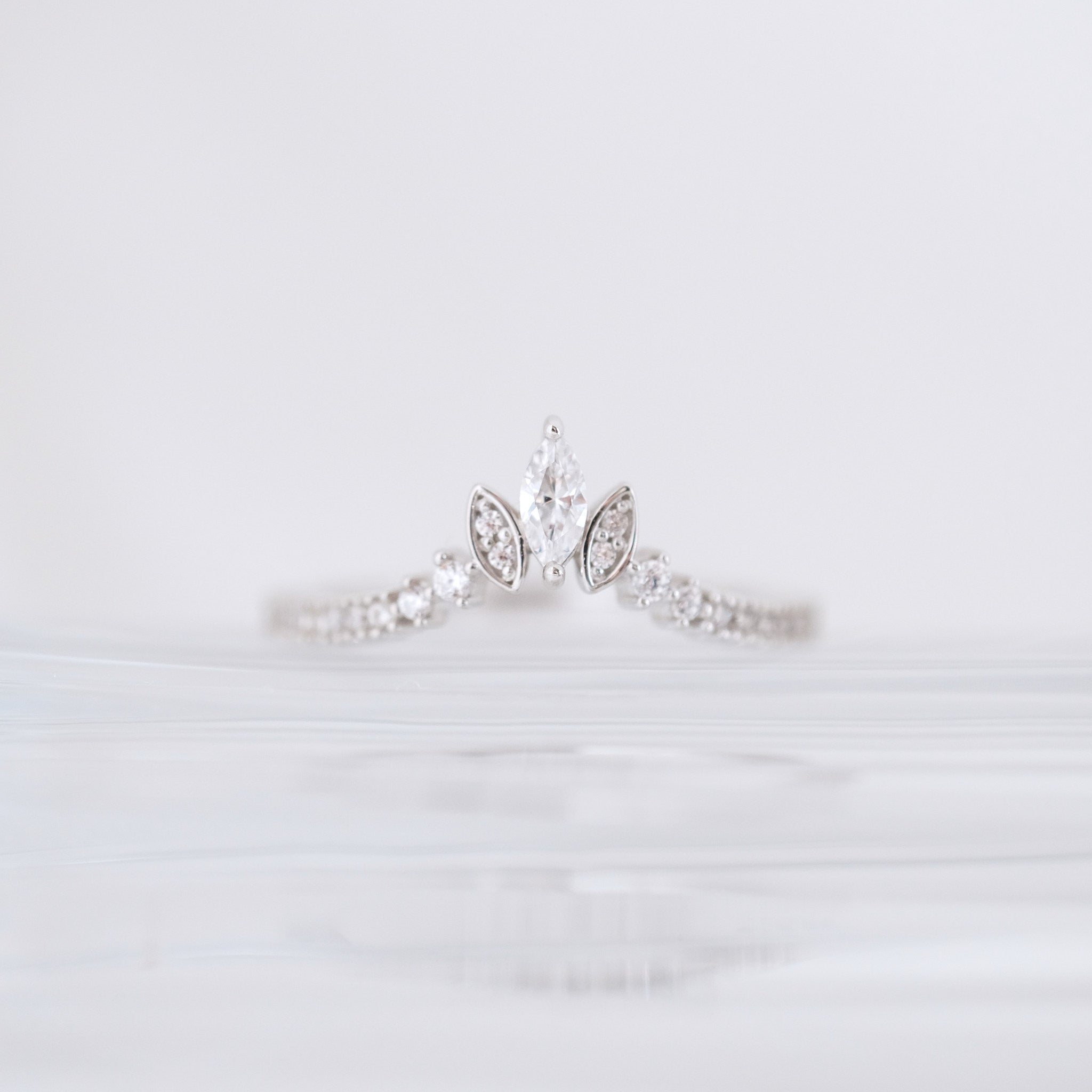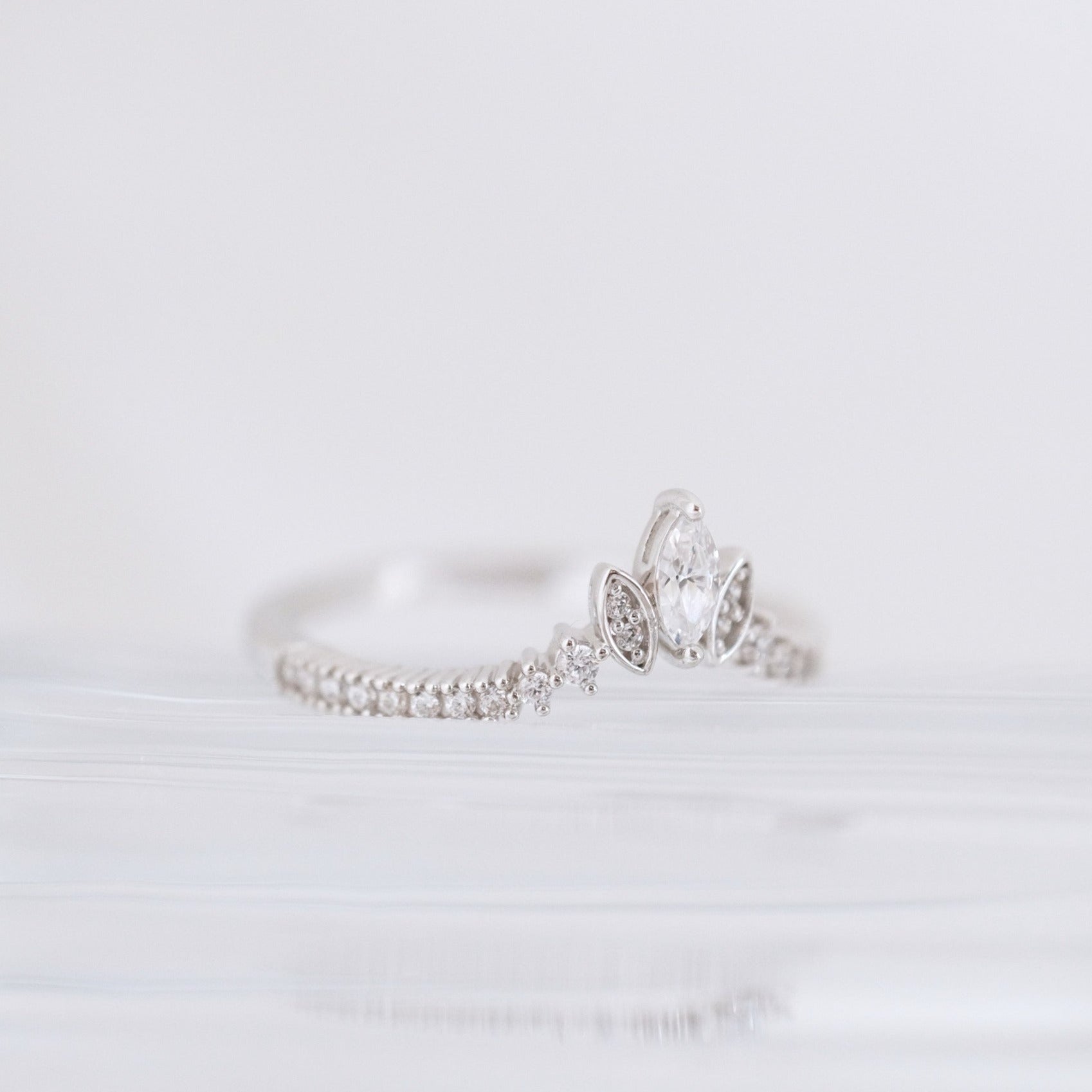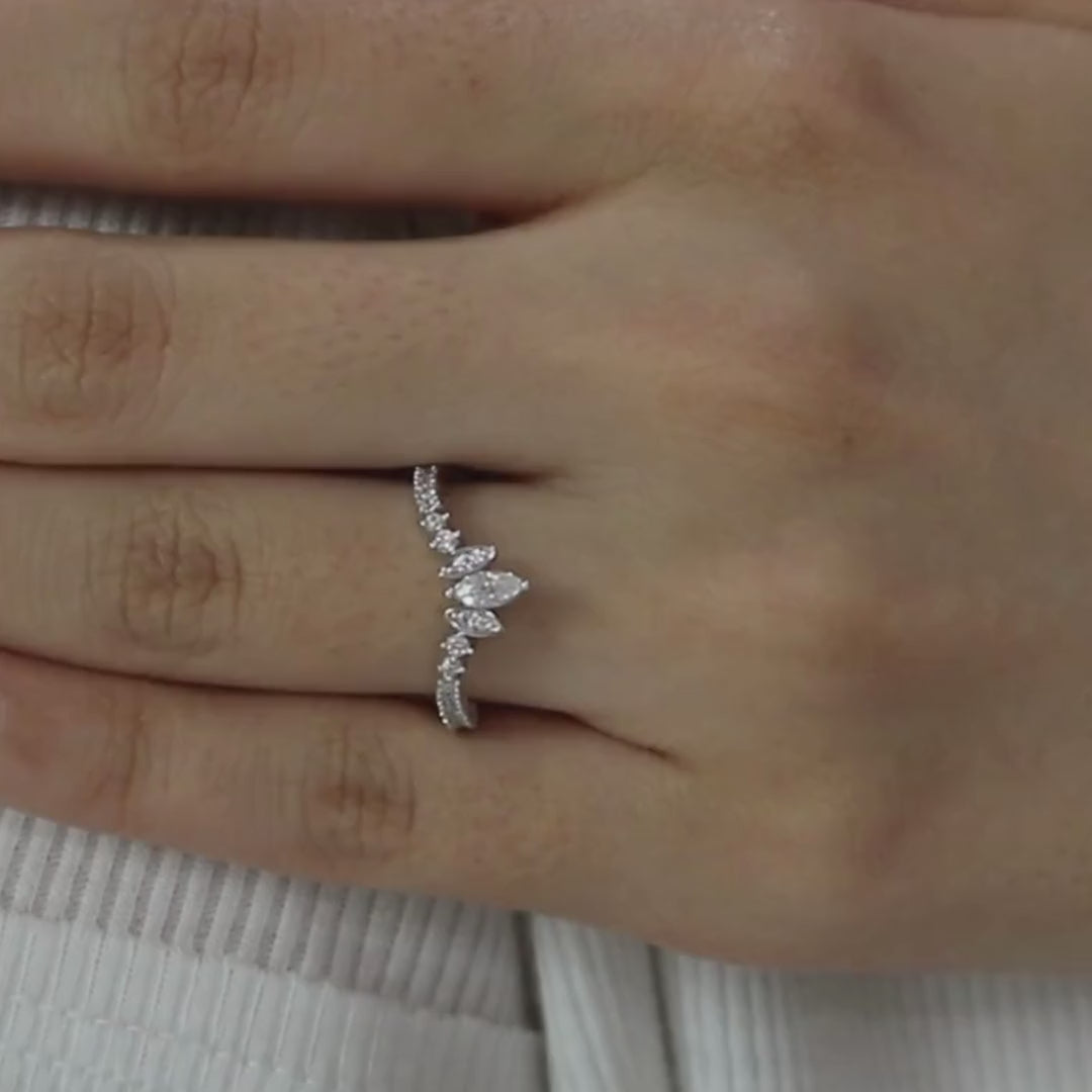 - Stone: Marquise Cut (5x2.5mm), Round Pave Set (1.5mm to 1mm)