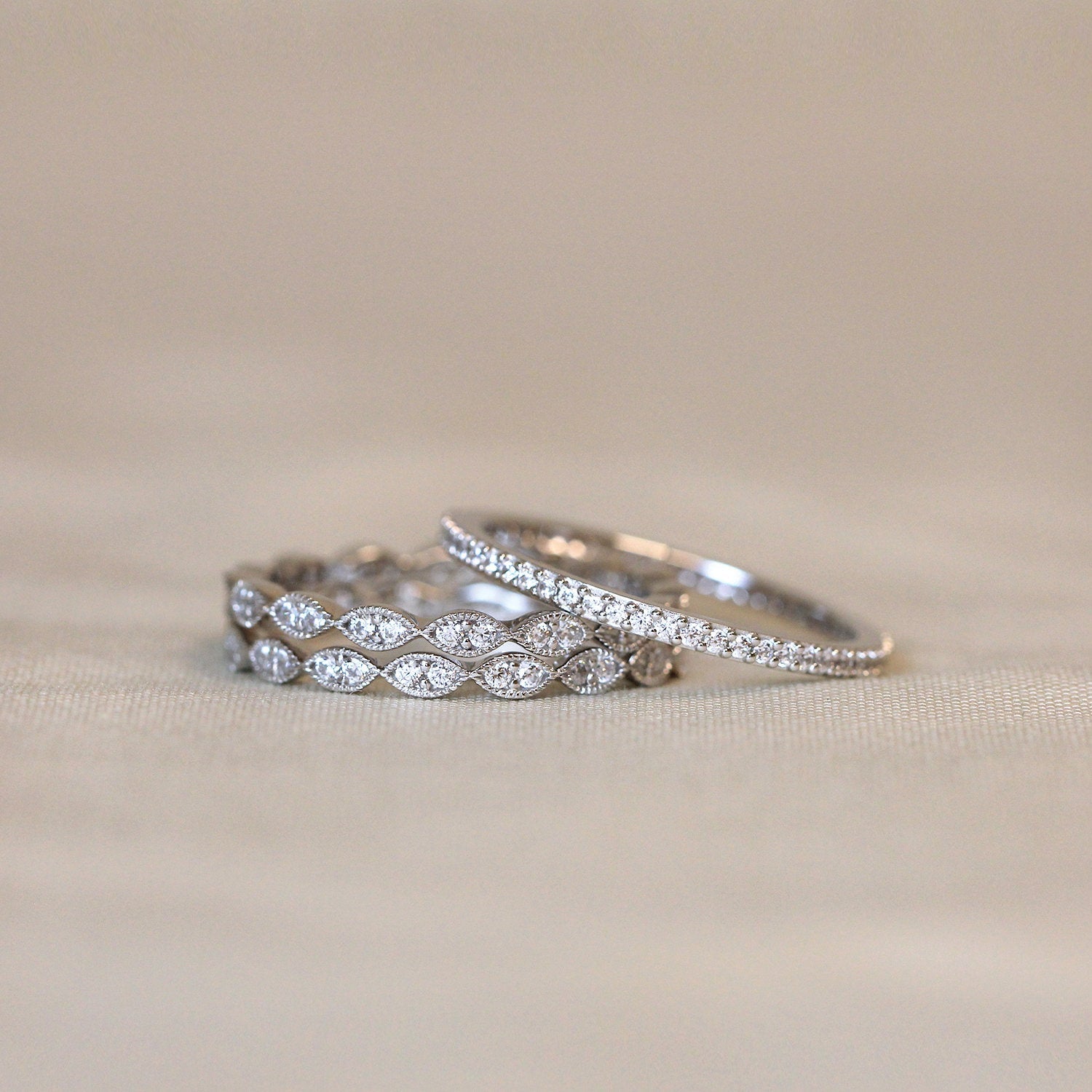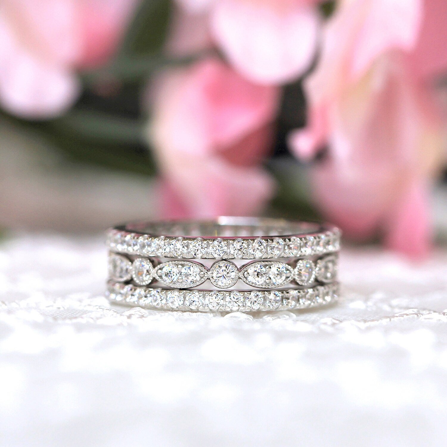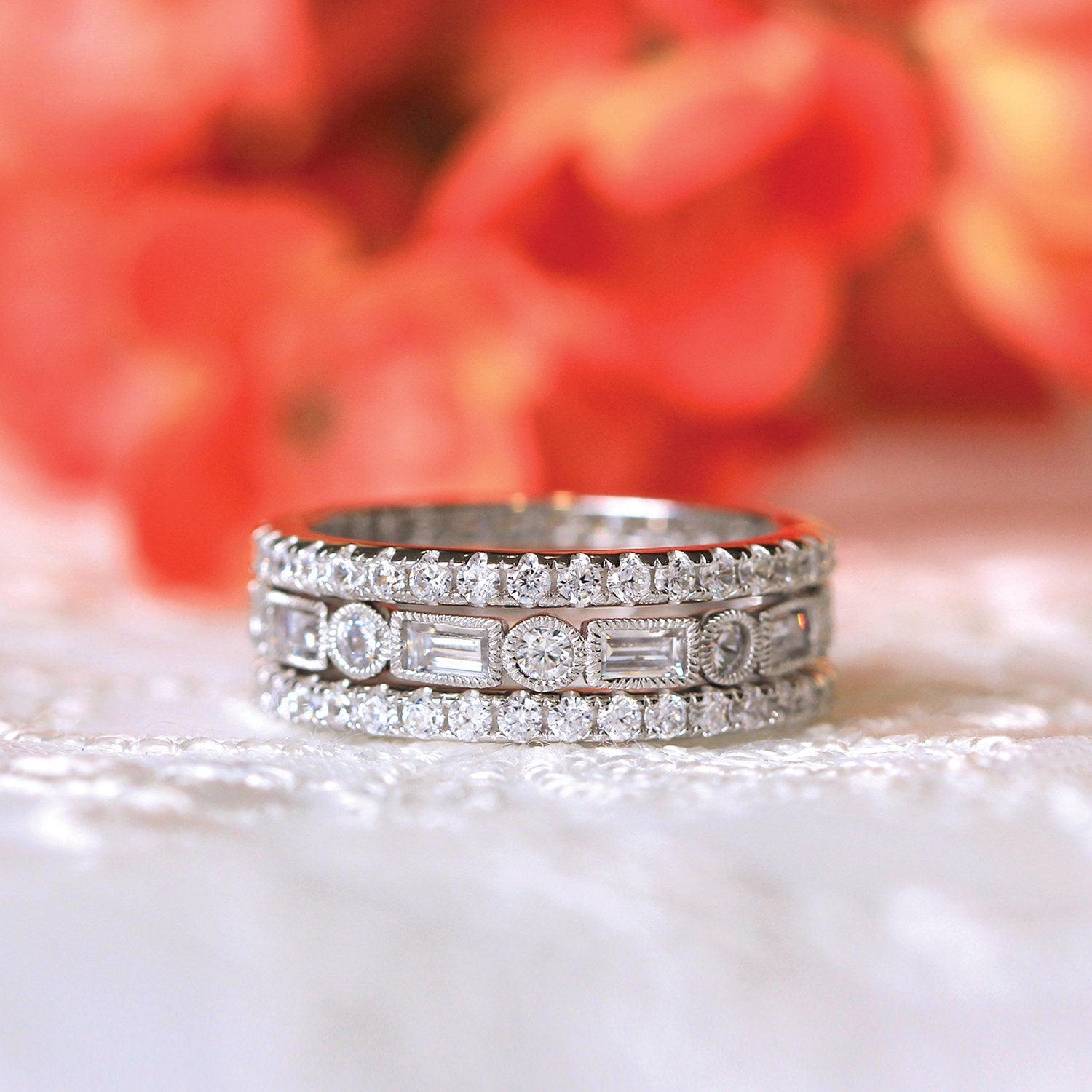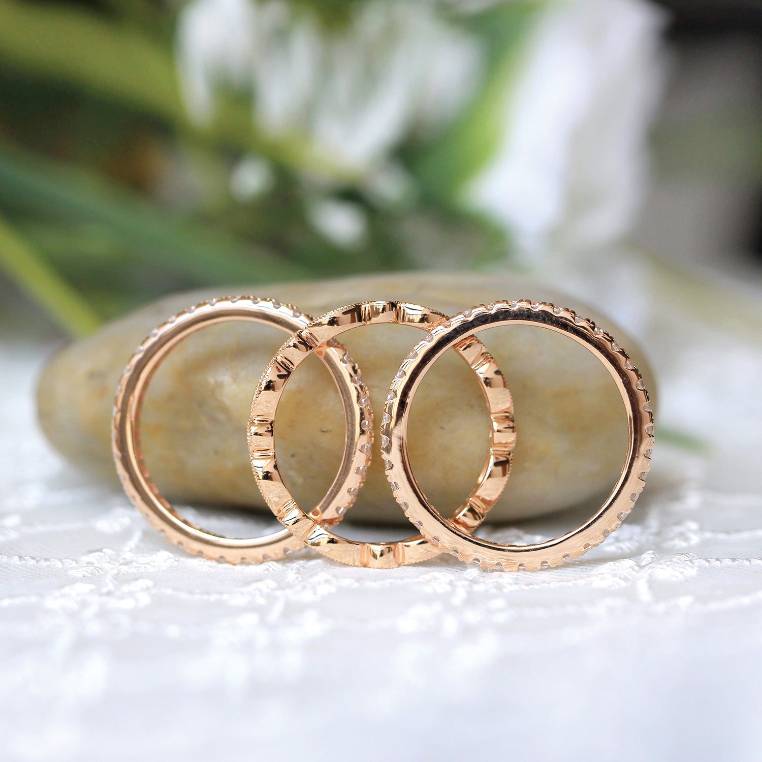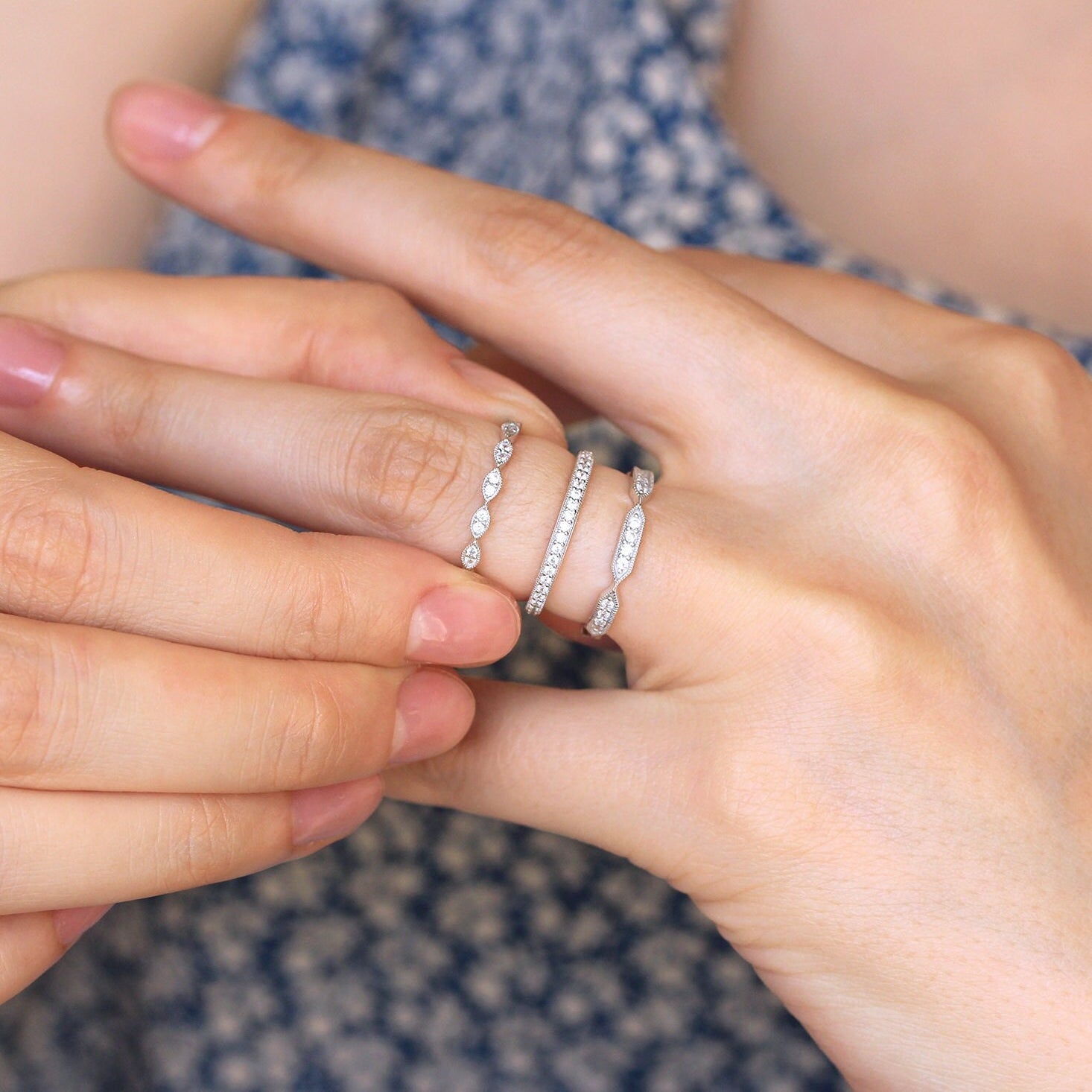 The Triple Band Stacks collection offers a combination of three bands stacked together to create a bold and elegant layered look. This collection is perfect for those who enjoy stacking and layering their rings, offering a striking and customizable style. With its sleek design, the Triple Band Stacks is a favorite for anyone looking to add more dimension to their jewelry collection.