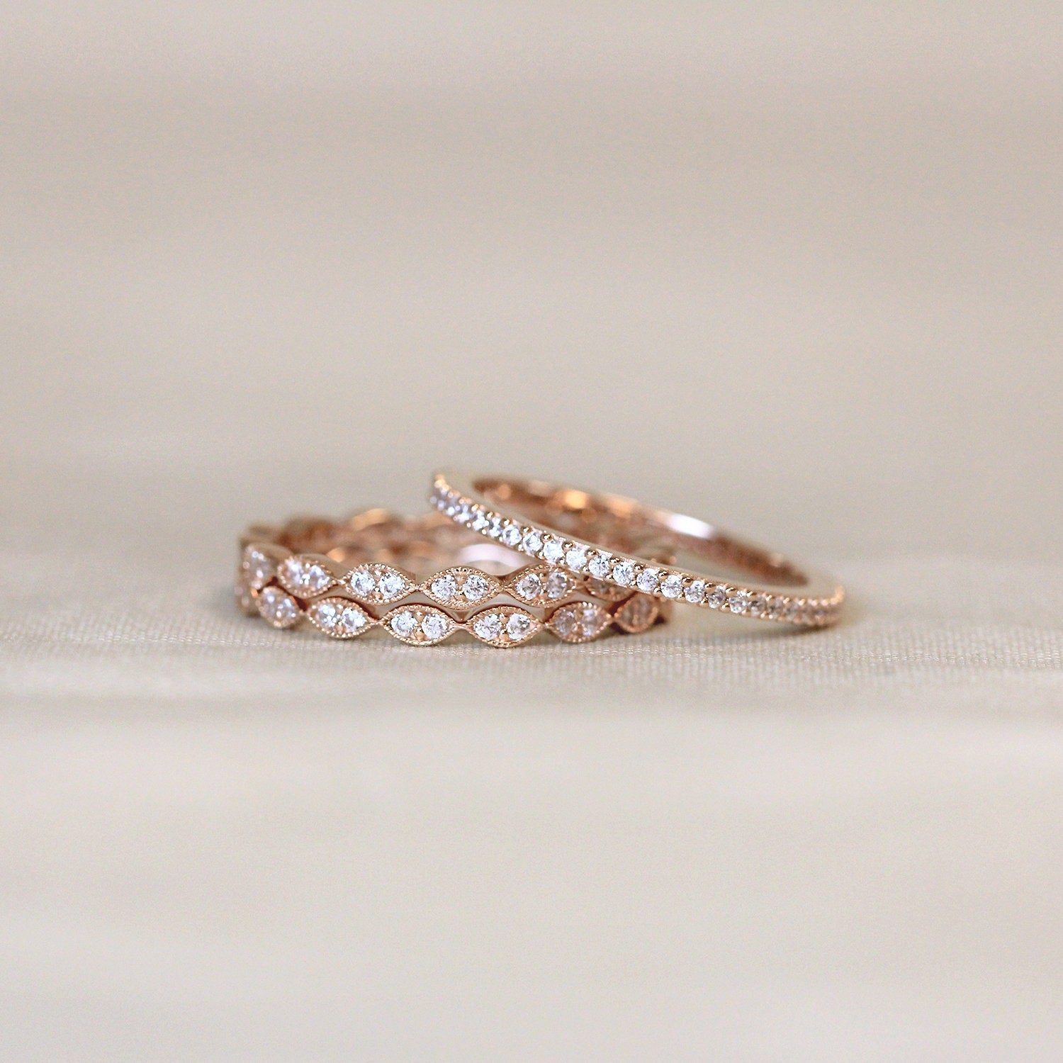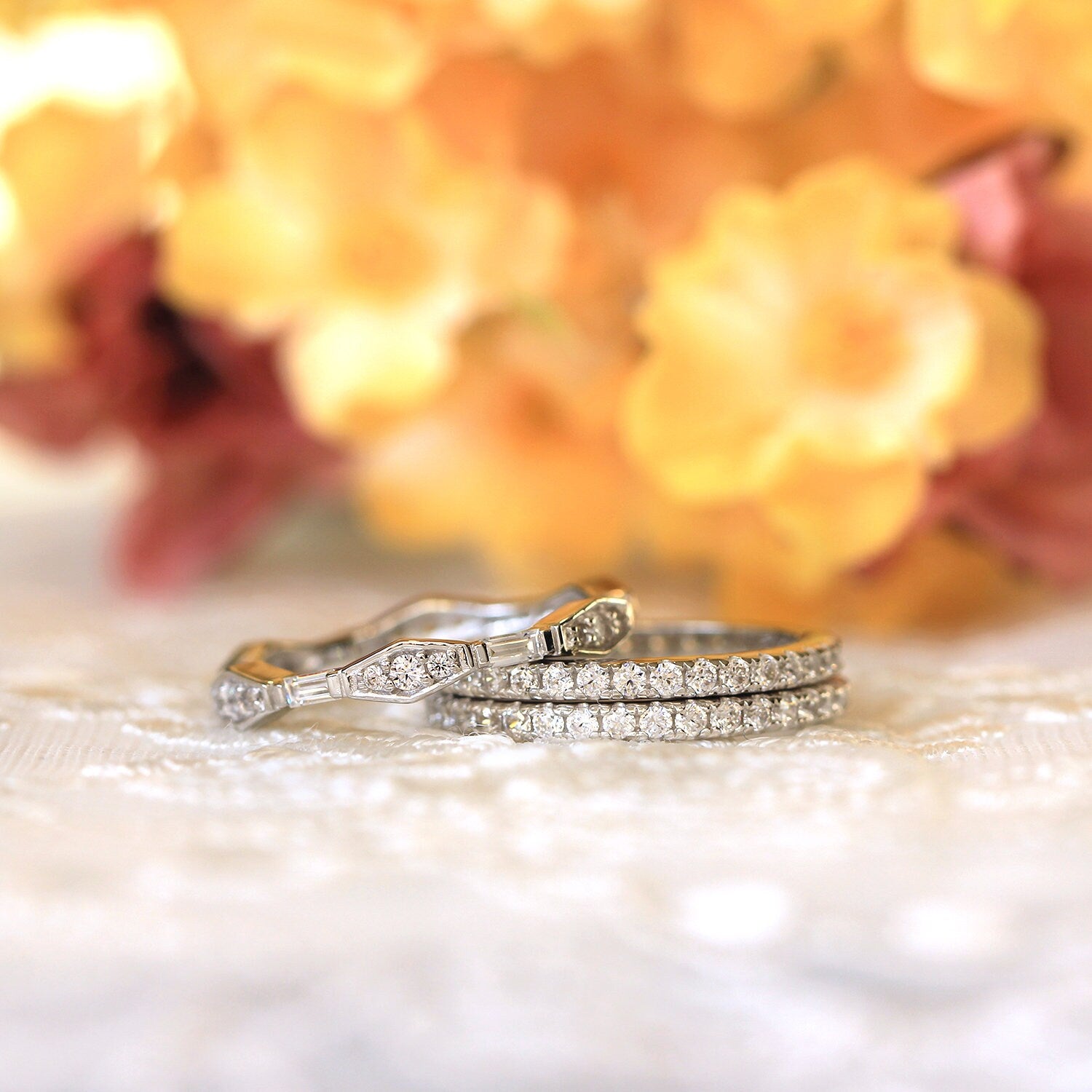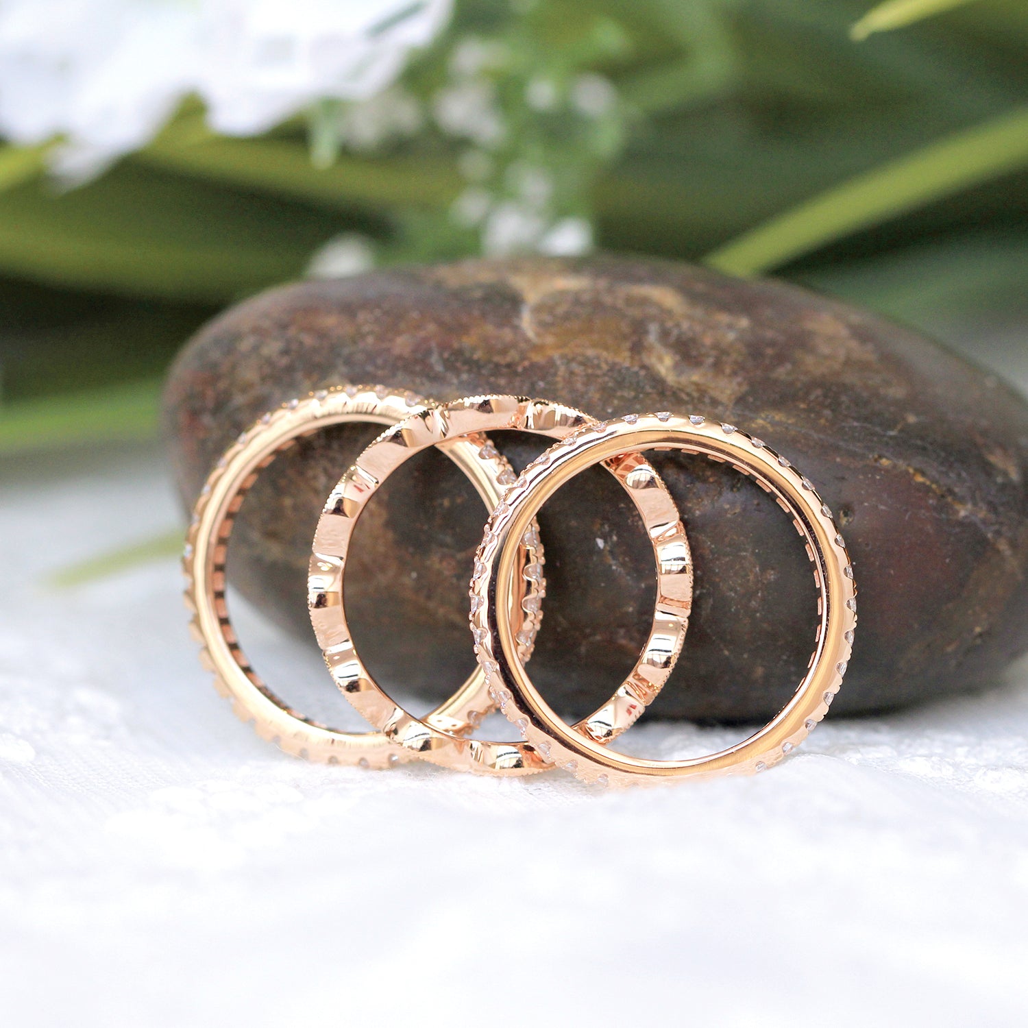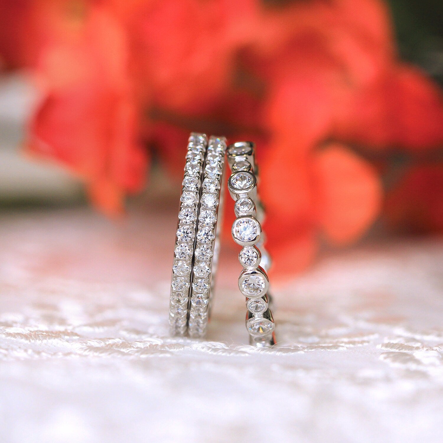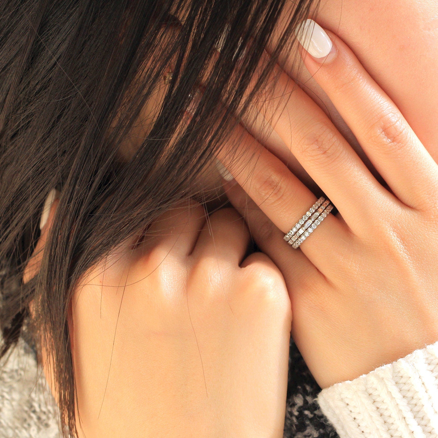 The Triple Band Stacks collection offers a combination of three bands stacked together to create a bold and elegant layered look. This collection is perfect for those who enjoy stacking and layering their rings, offering a striking and customizable style. With its sleek design, the Triple Band Stacks is a favorite for anyone looking to add more dimension to their jewelry collection.