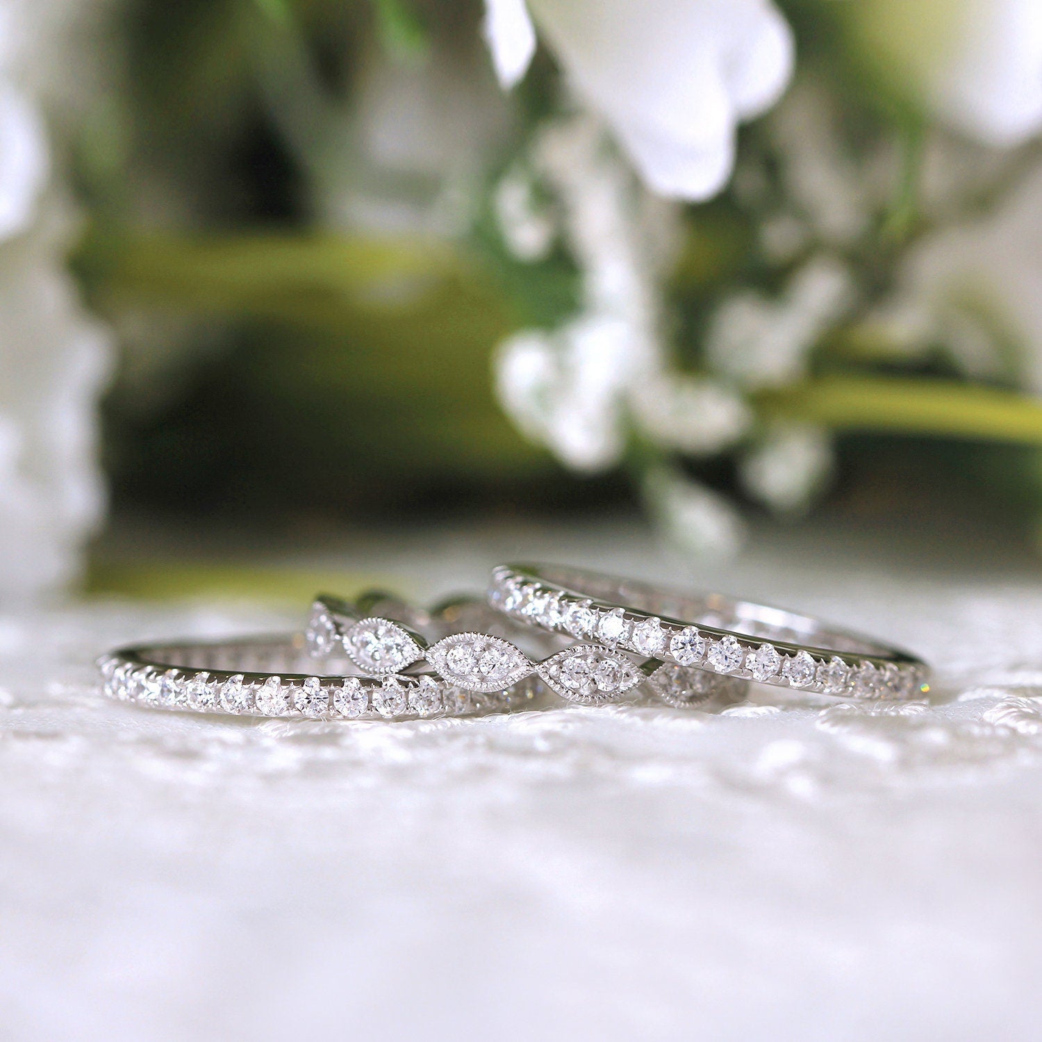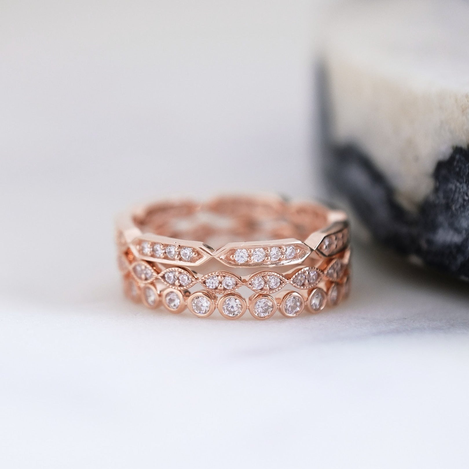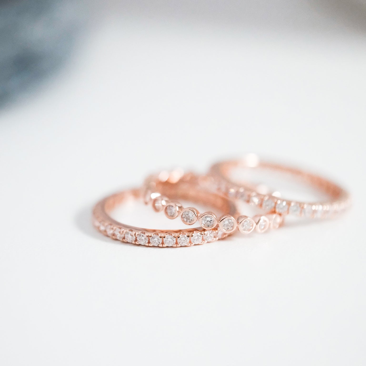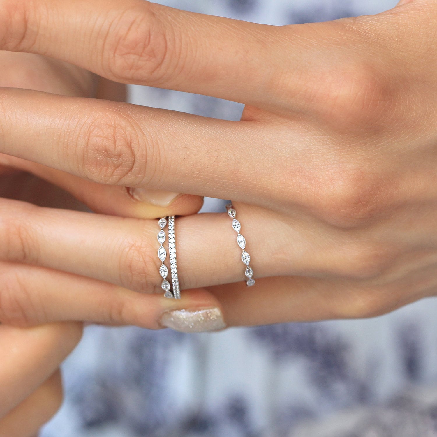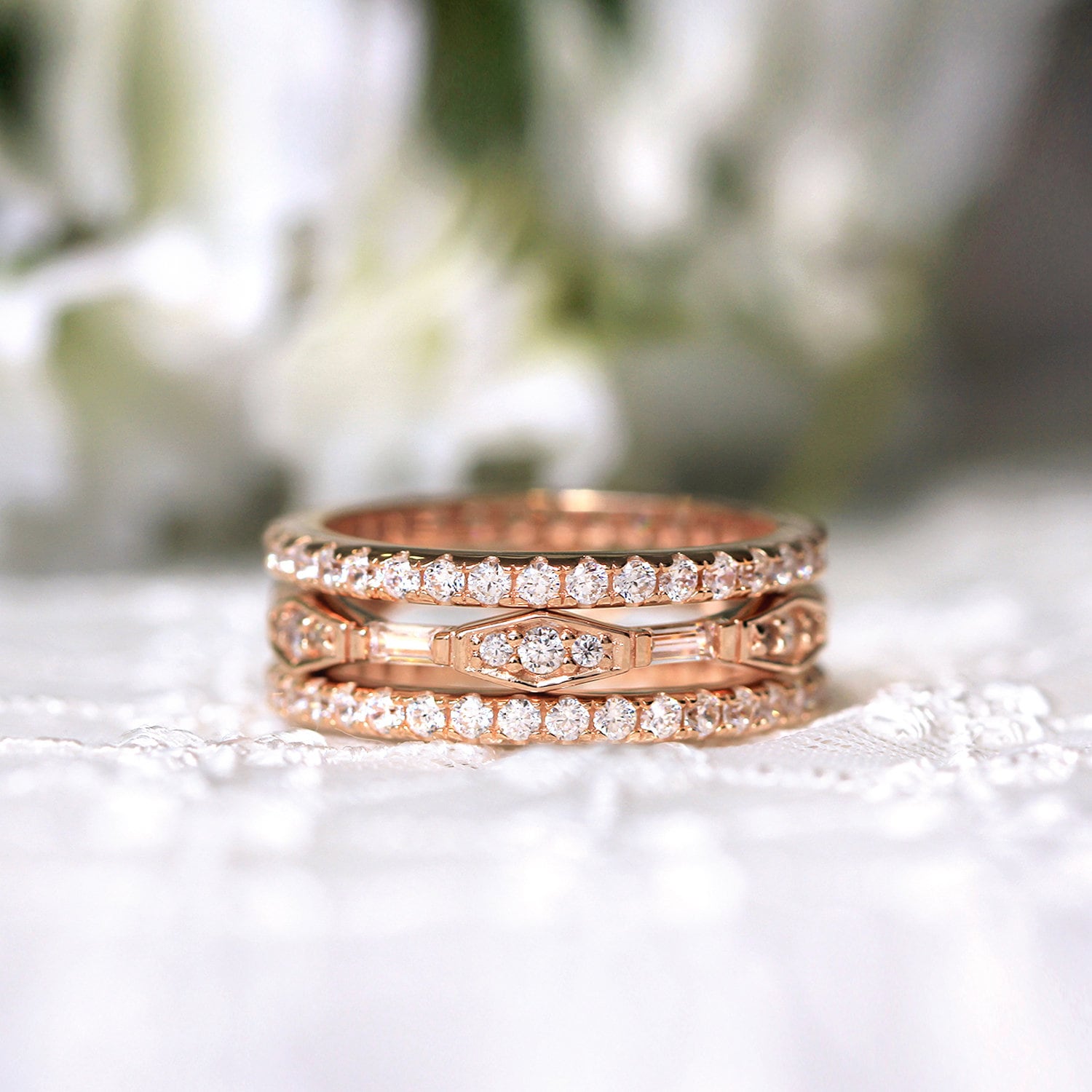 The Triple Band Stacks collection offers a combination of three bands stacked together to create a bold and elegant layered look. This collection is perfect for those who enjoy stacking and layering their rings, offering a striking and customizable style. With its sleek design, the Triple Band Stacks is a favorite for anyone looking to add more dimension to their jewelry collection.