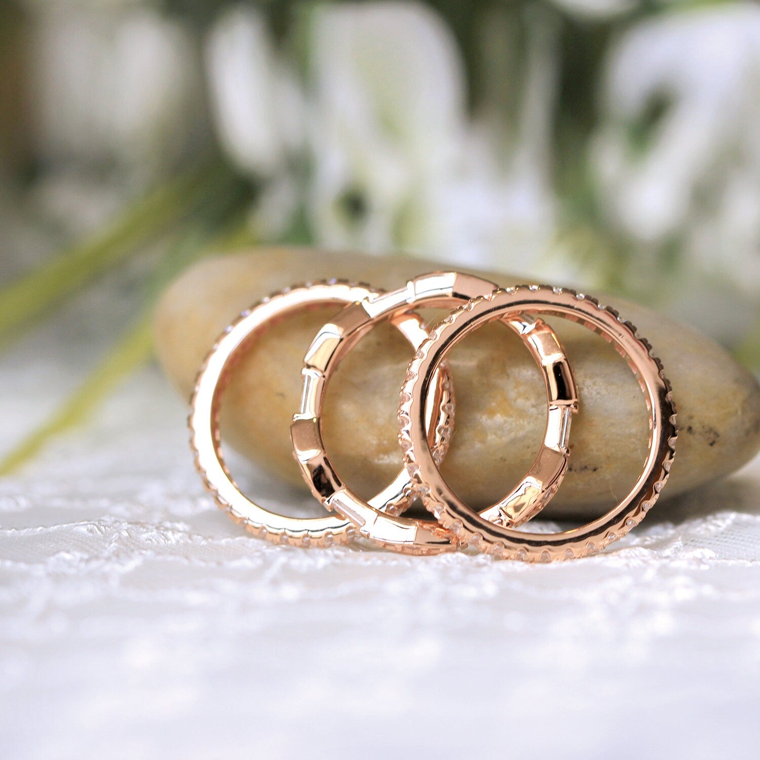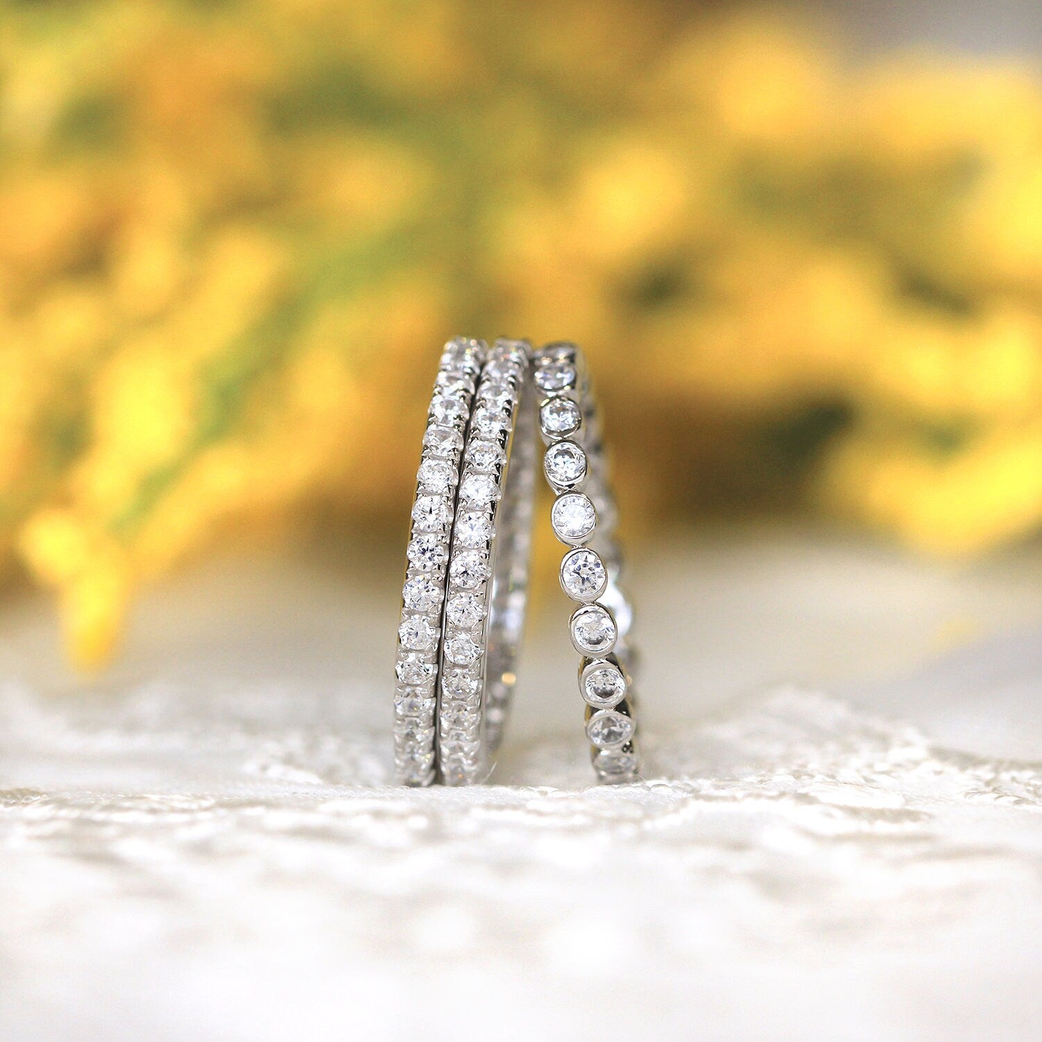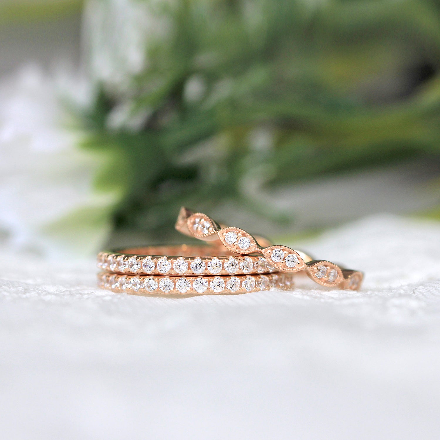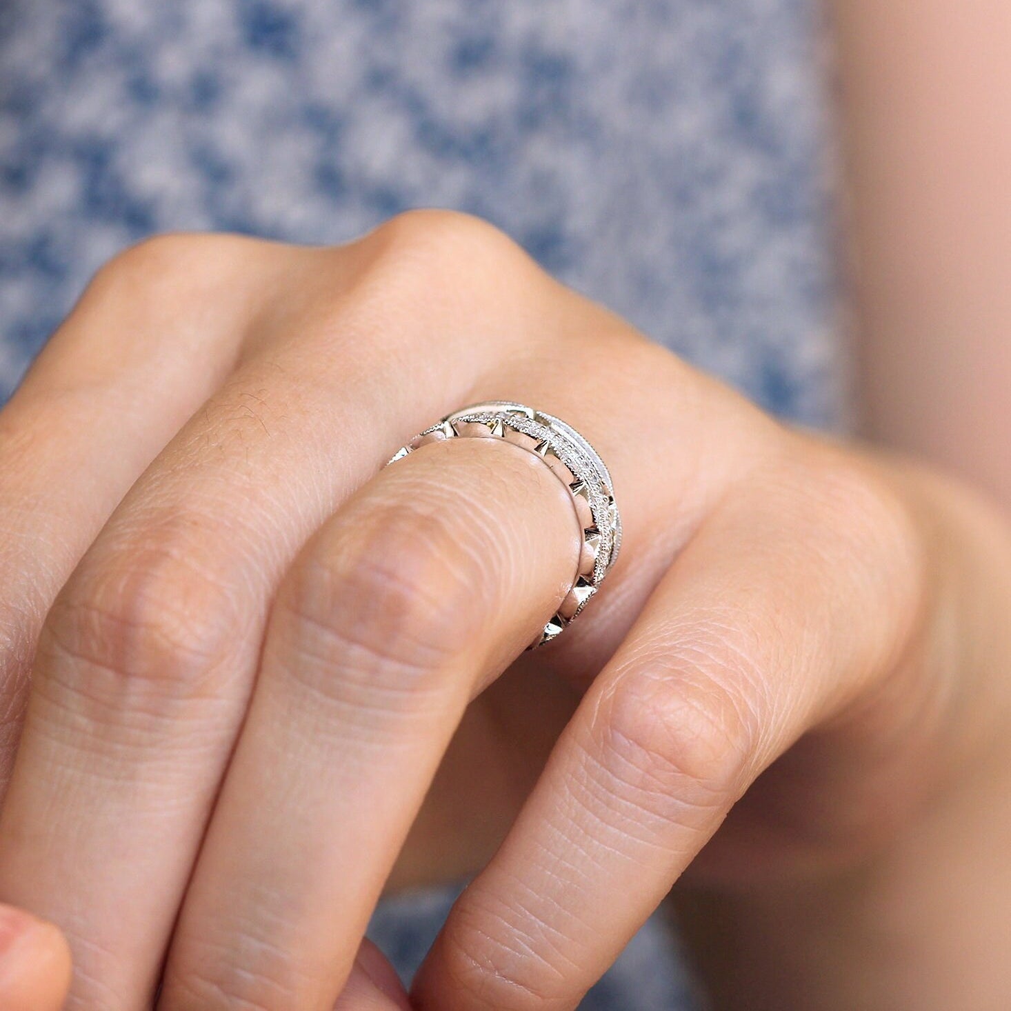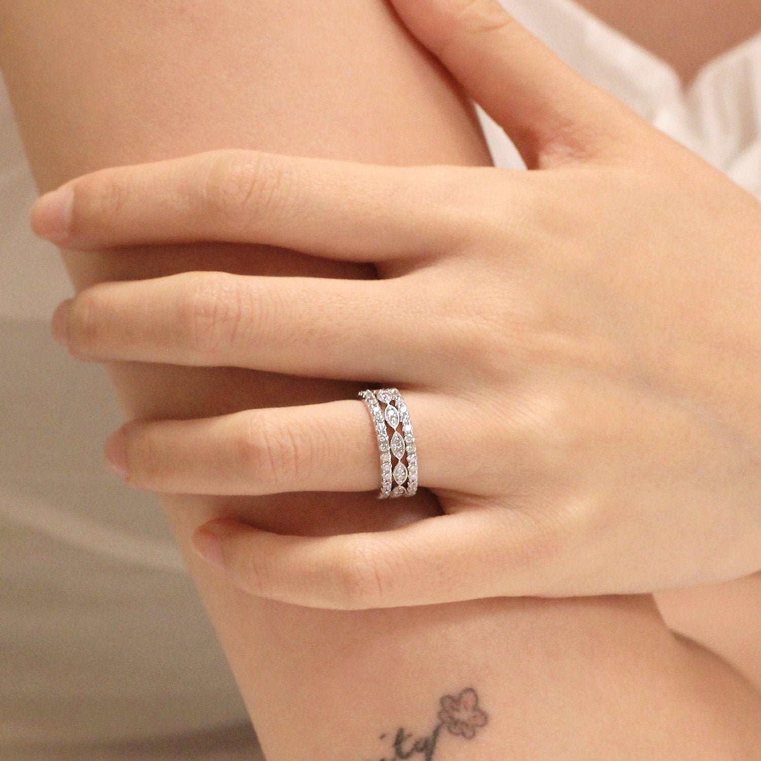 The Triple Band Stacks collection offers a combination of three bands stacked together to create a bold and elegant layered look. This collection is perfect for those who enjoy stacking and layering their rings, offering a striking and customizable style. With its sleek design, the Triple Band Stacks is a favorite for anyone looking to add more dimension to their jewelry collection.