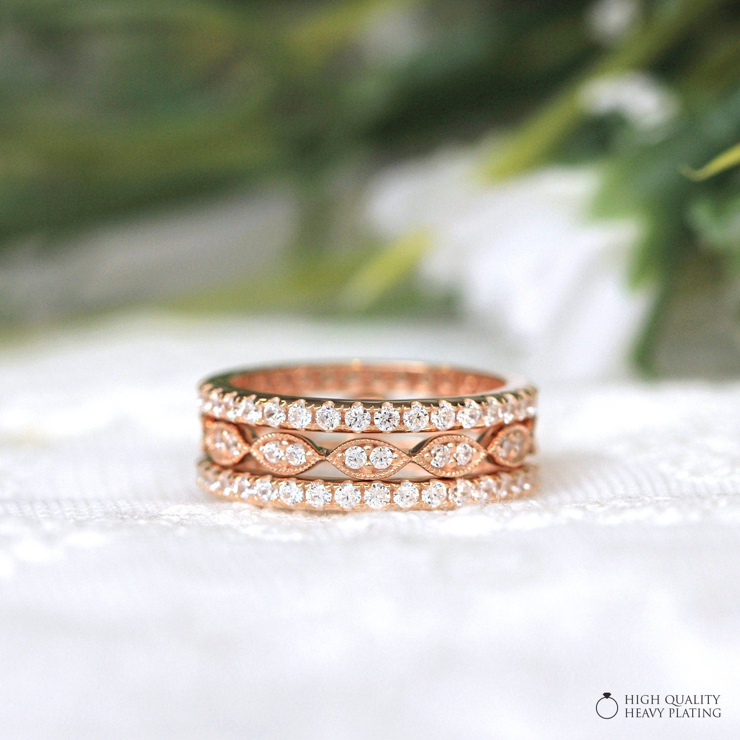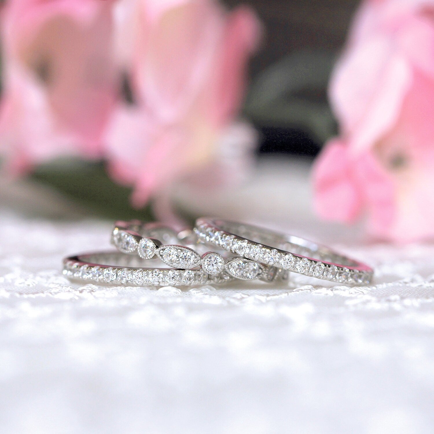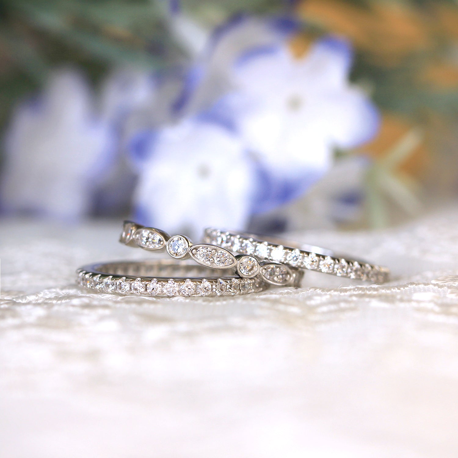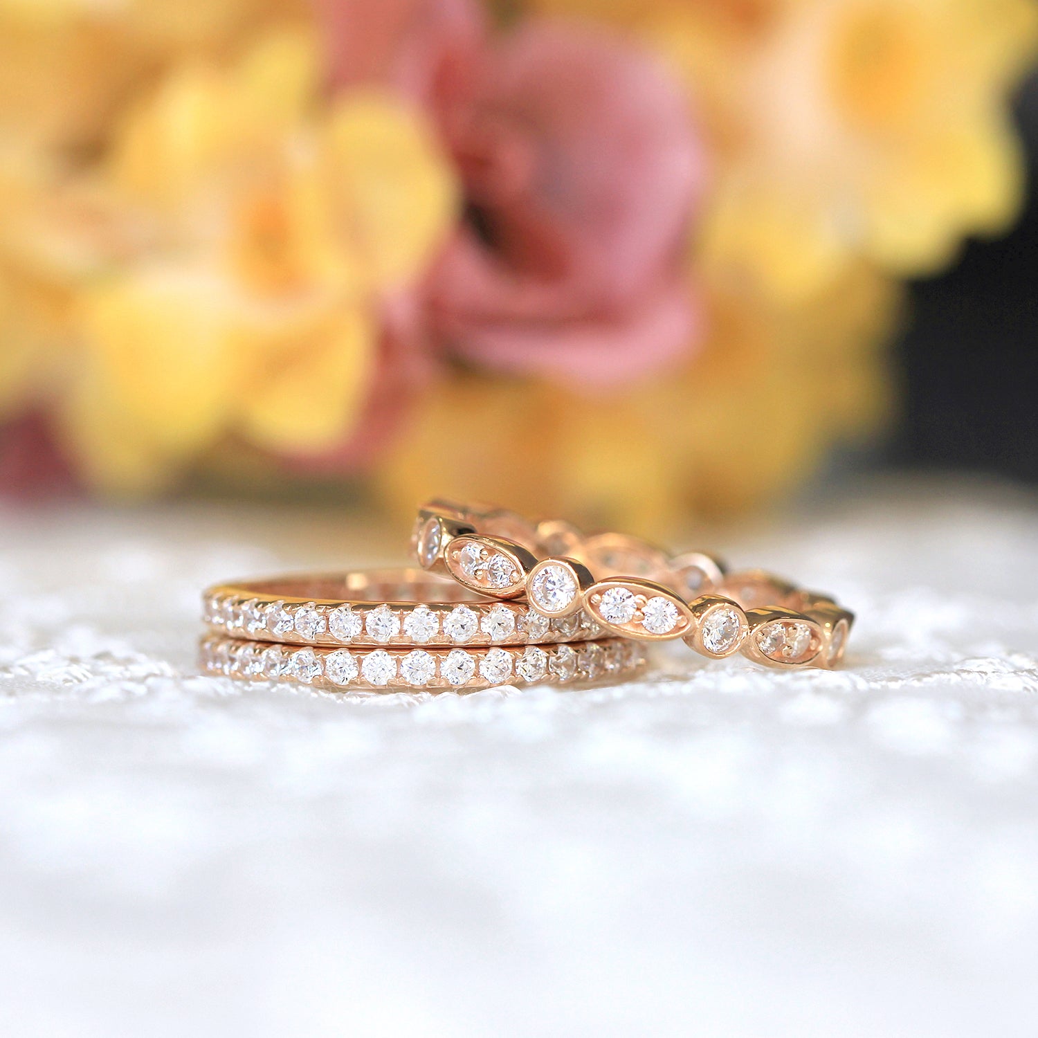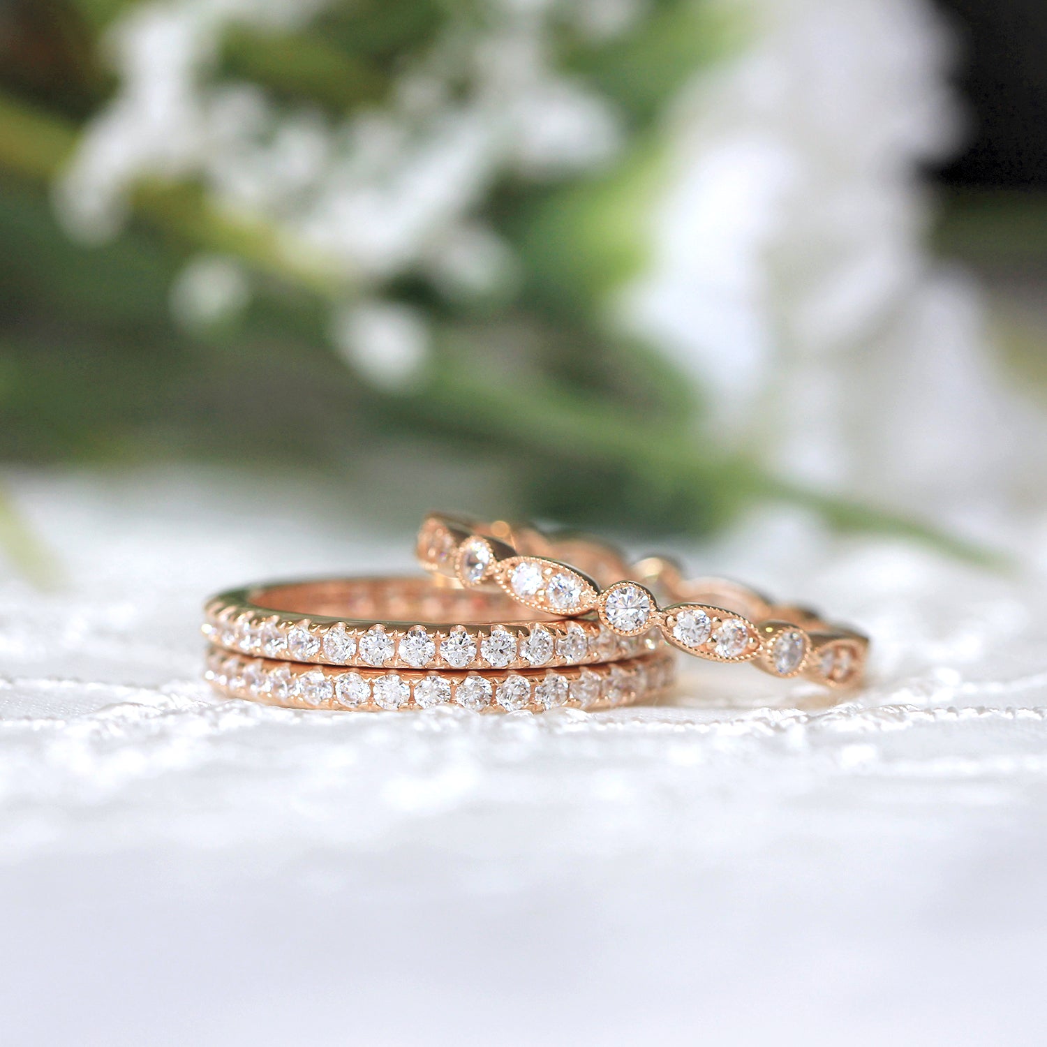 The Triple Band Stacks collection offers a combination of three bands stacked together to create a bold and elegant layered look. This collection is perfect for those who enjoy stacking and layering their rings, offering a striking and customizable style. With its sleek design, the Triple Band Stacks is a favorite for anyone looking to add more dimension to their jewelry collection.