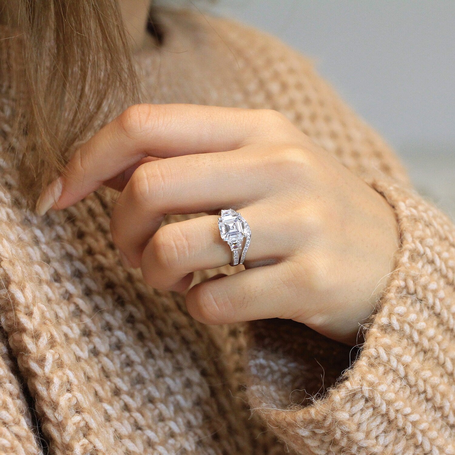 • Main Ring Stones: Asscher Cut, Baguette Cut (4.5x3x3mm)